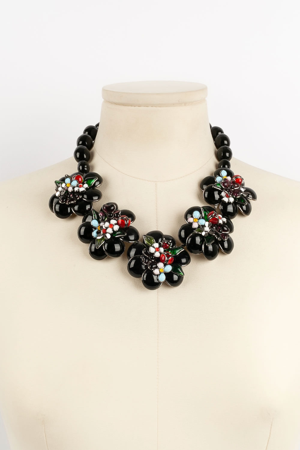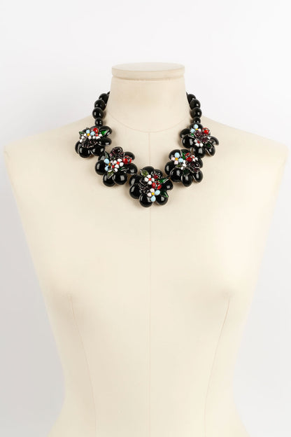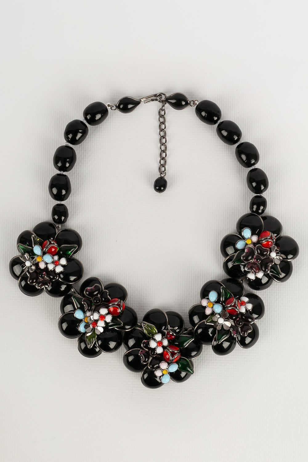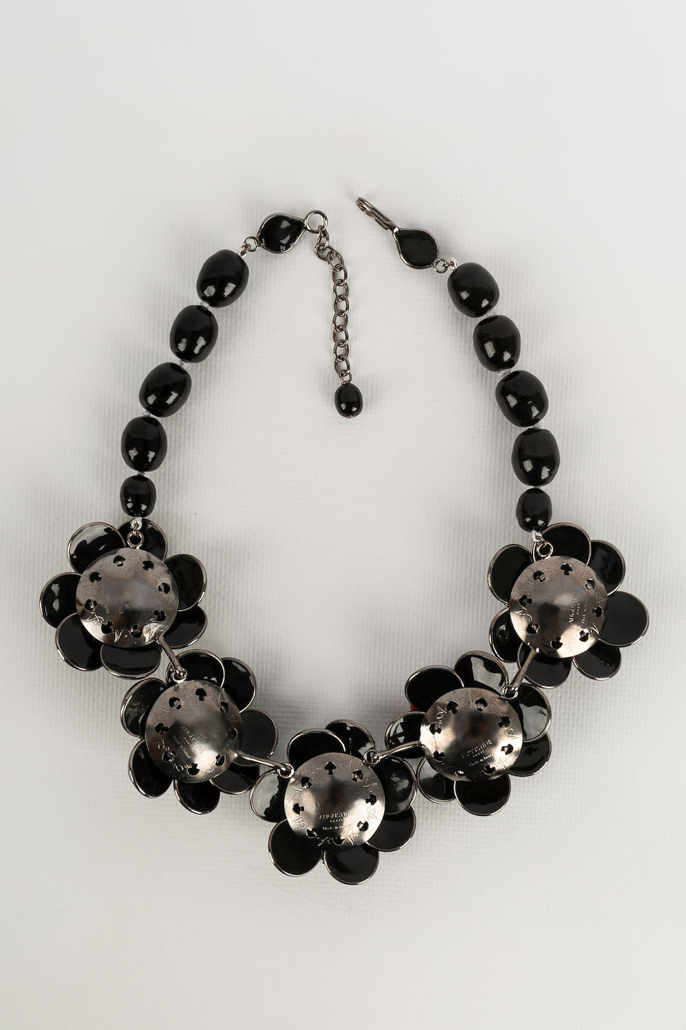 AUGUSTINE -(Made in France) Collier en métal argenté et pâte de verre noir.
