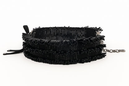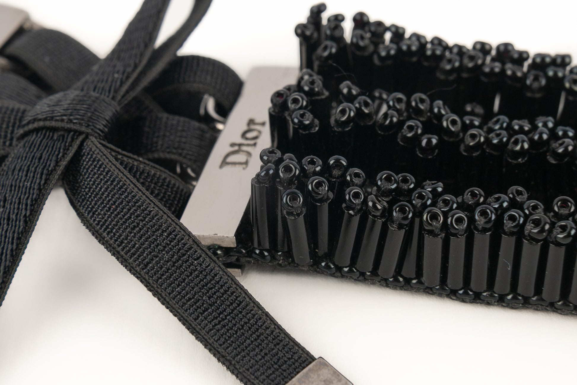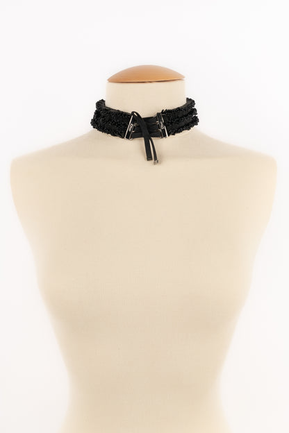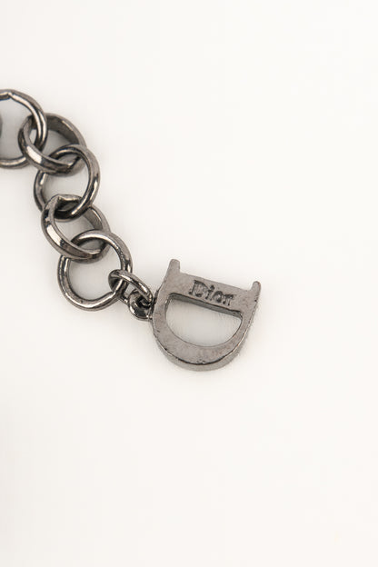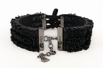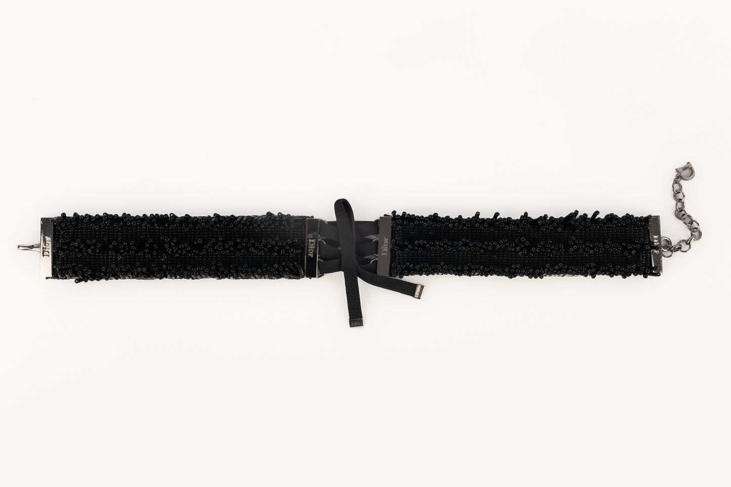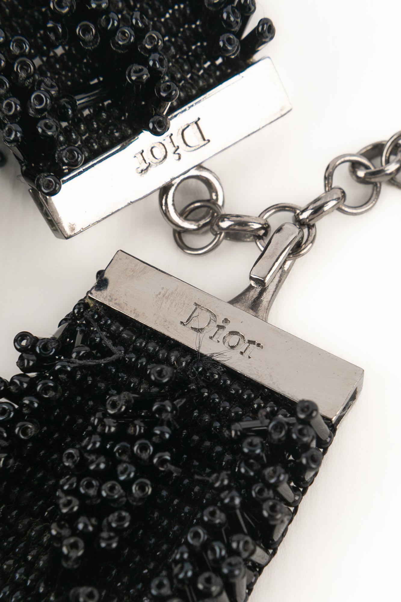 DIOR -(Made in France) Collier ras de cou en perles noires et métal argenté.