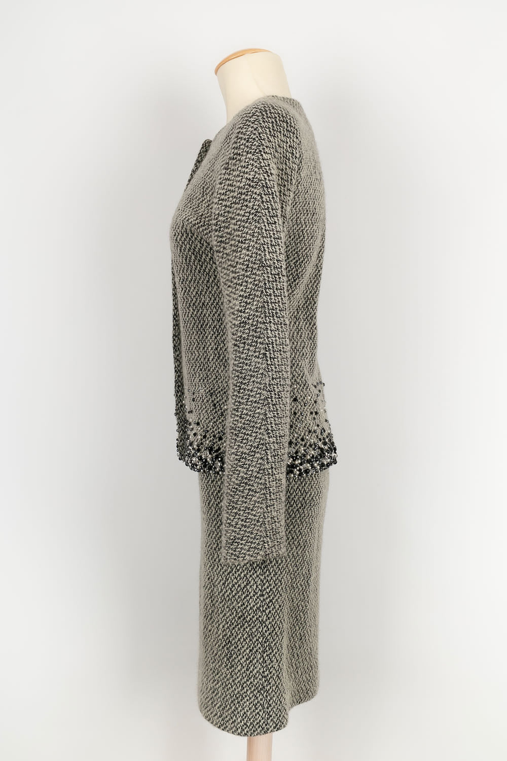 DIOR -(Made in France) Ensemble veste et jupe en laine et soie. Taille indiquée 36FR, il correspond à un 34FR/36FR.