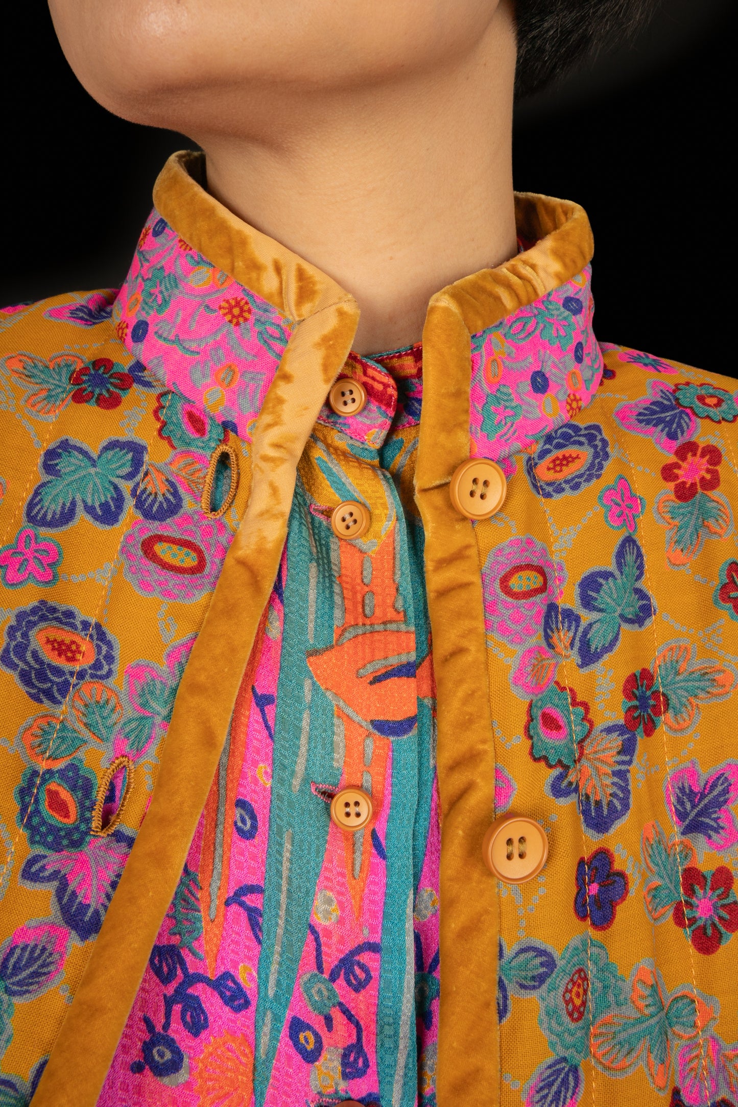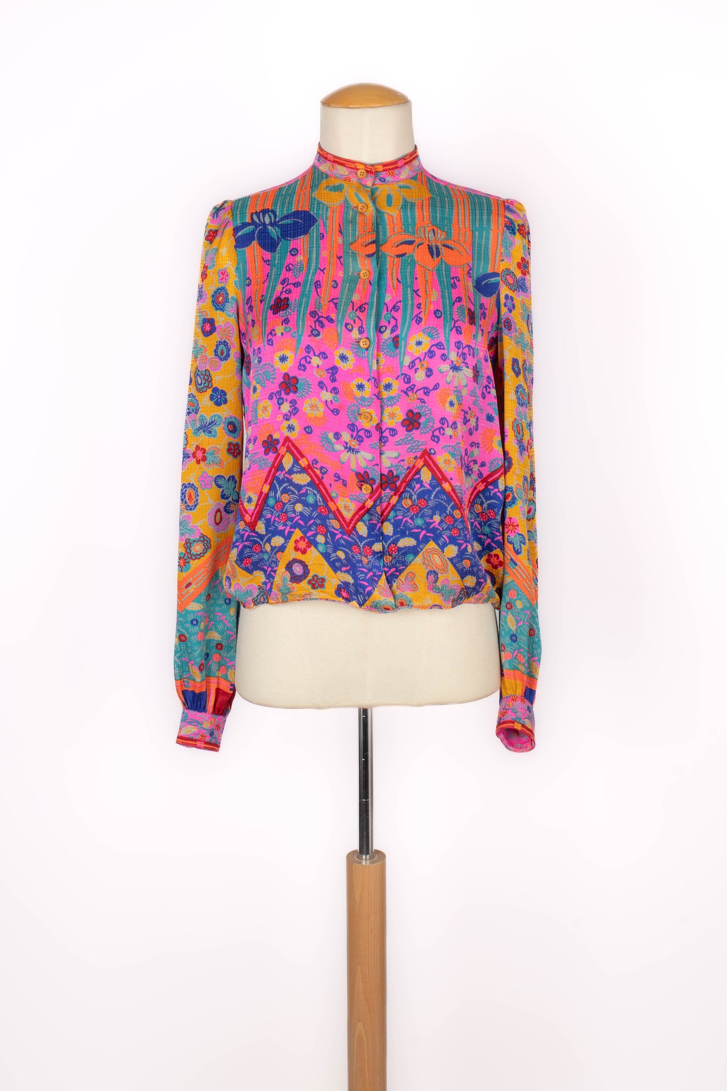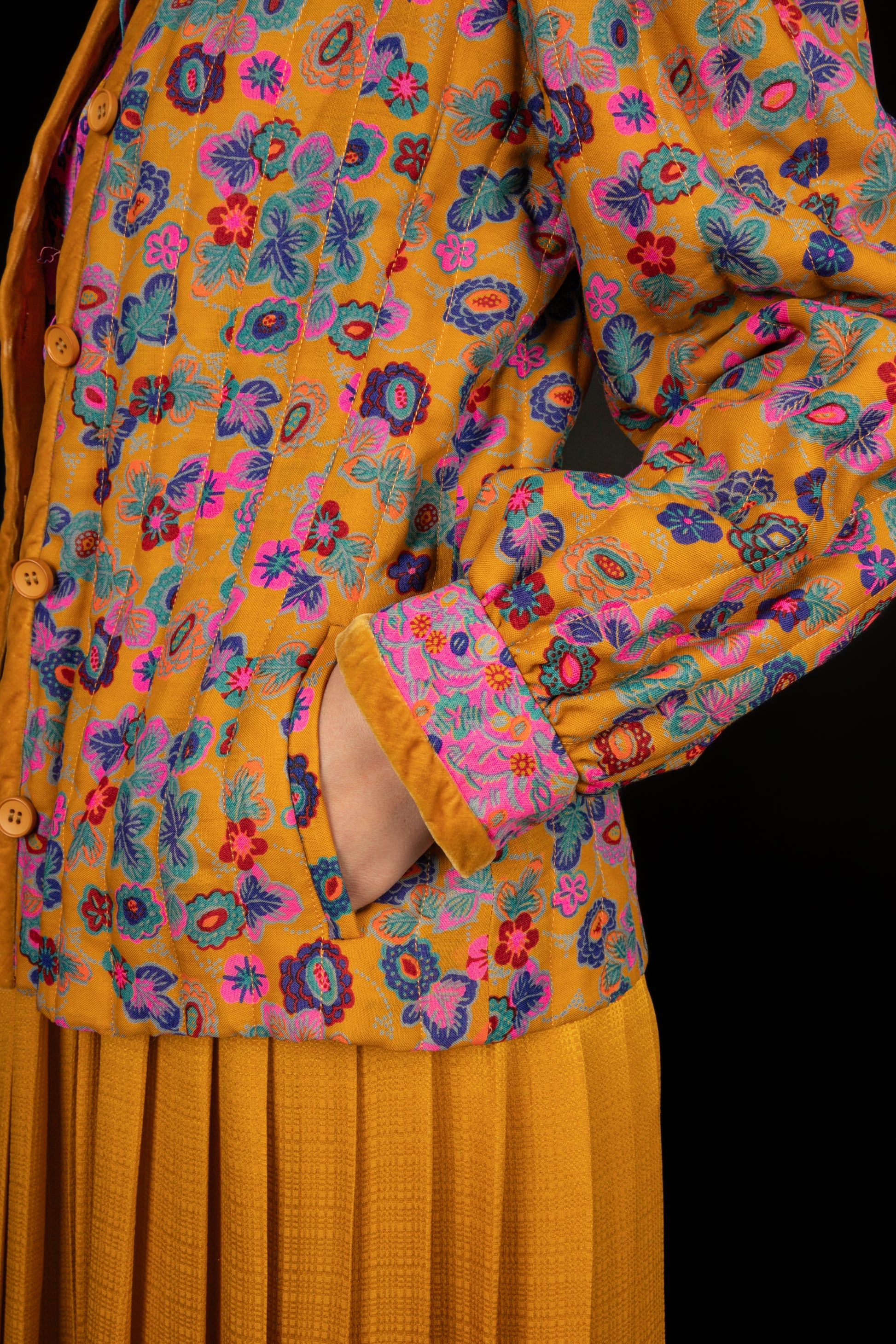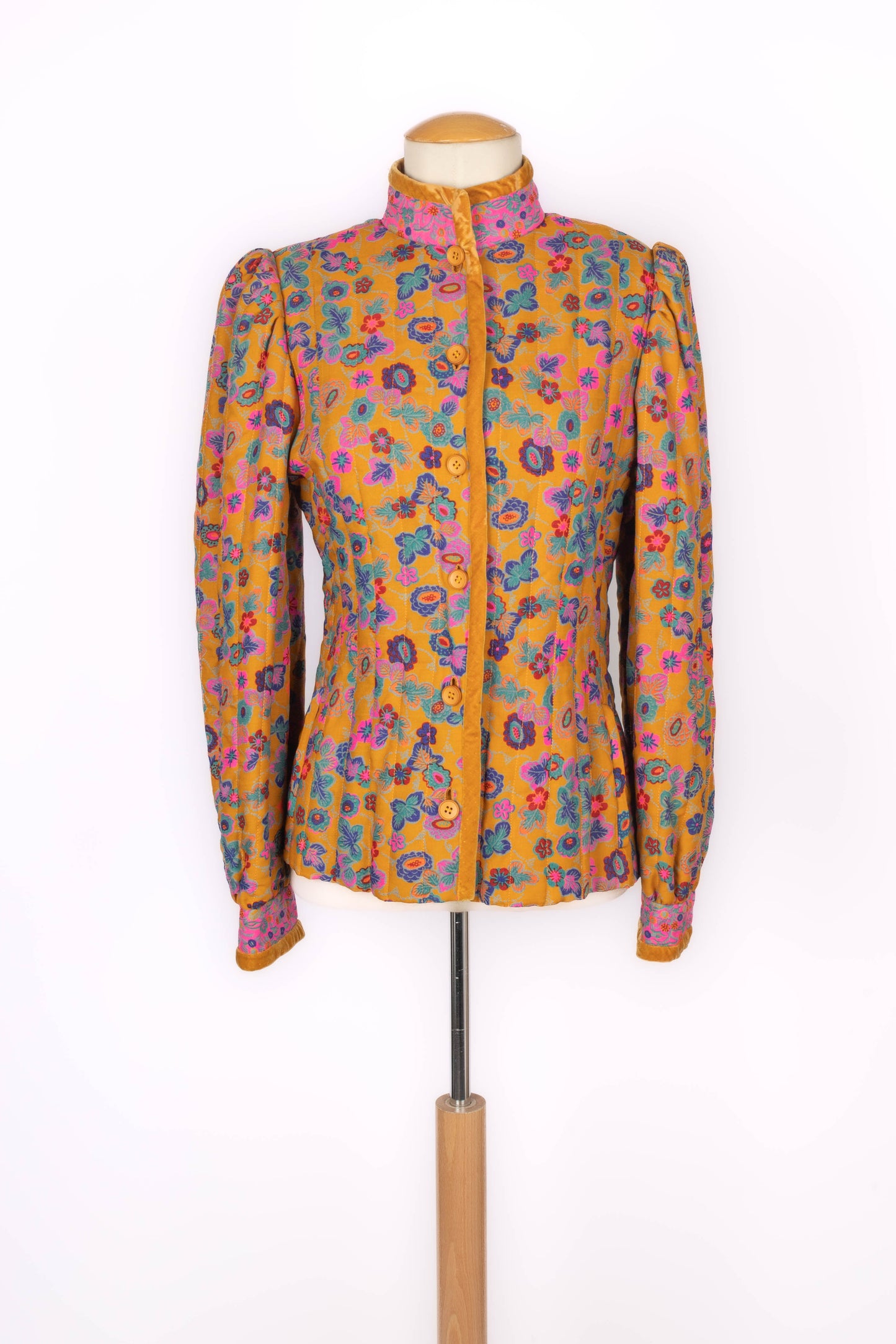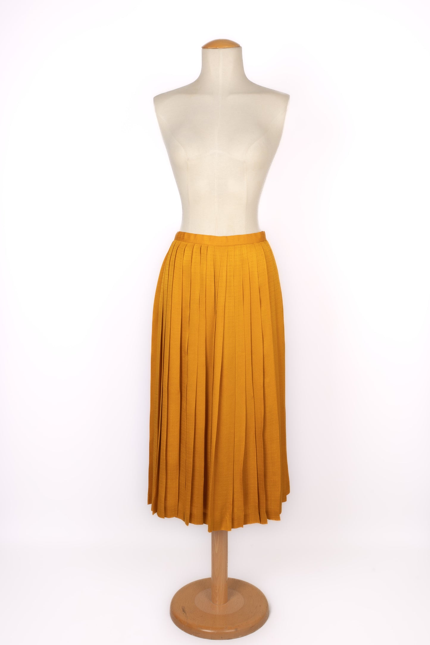 LOUIS FERAUD -Ensemble composé d'une veste matelassée, d'un chemisier en soie et d'une jupe plissée mi-longue. Pas de taille indiquée, il convient à un 36FR. Collection Haute Couture circa 1980.