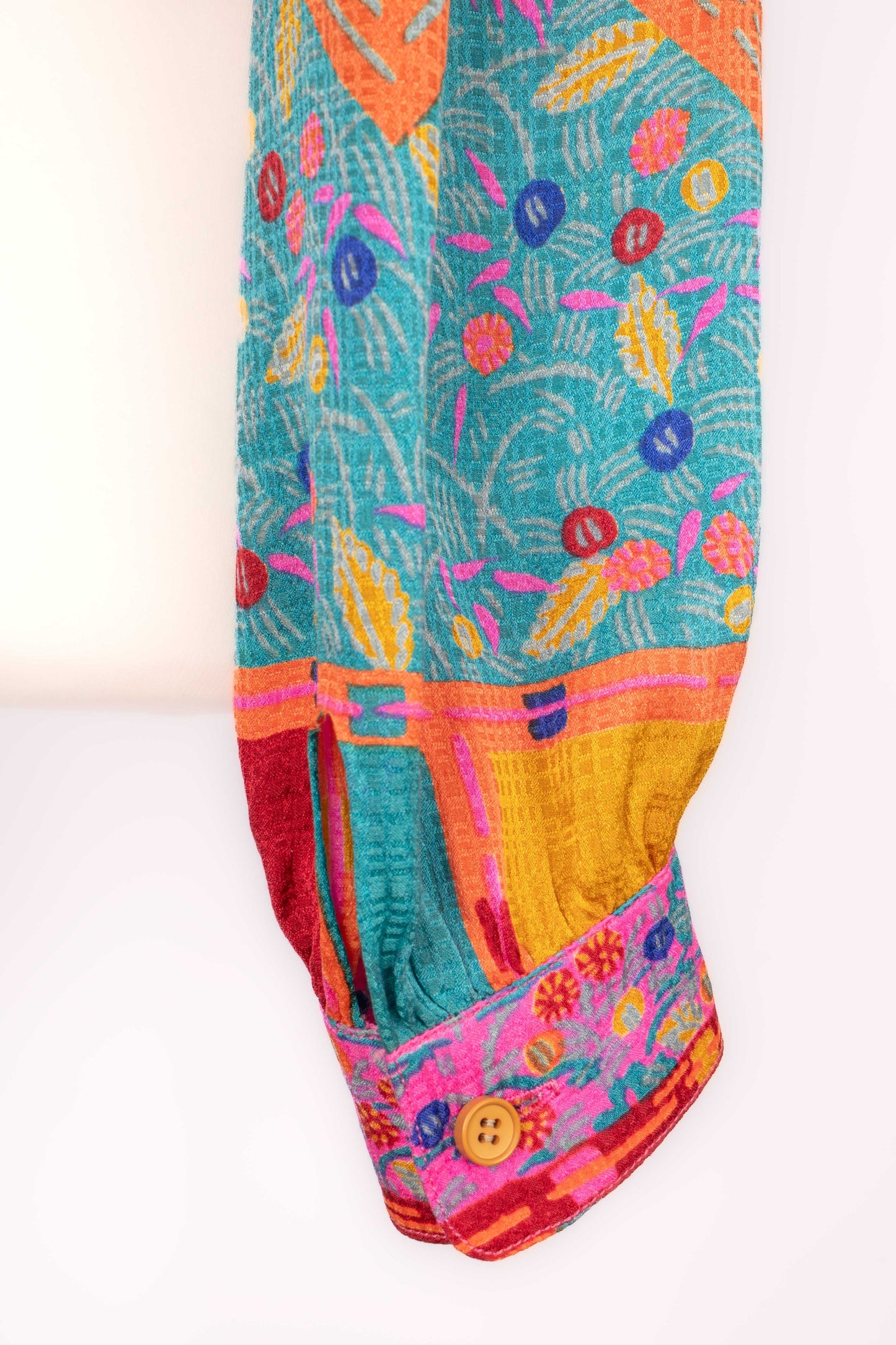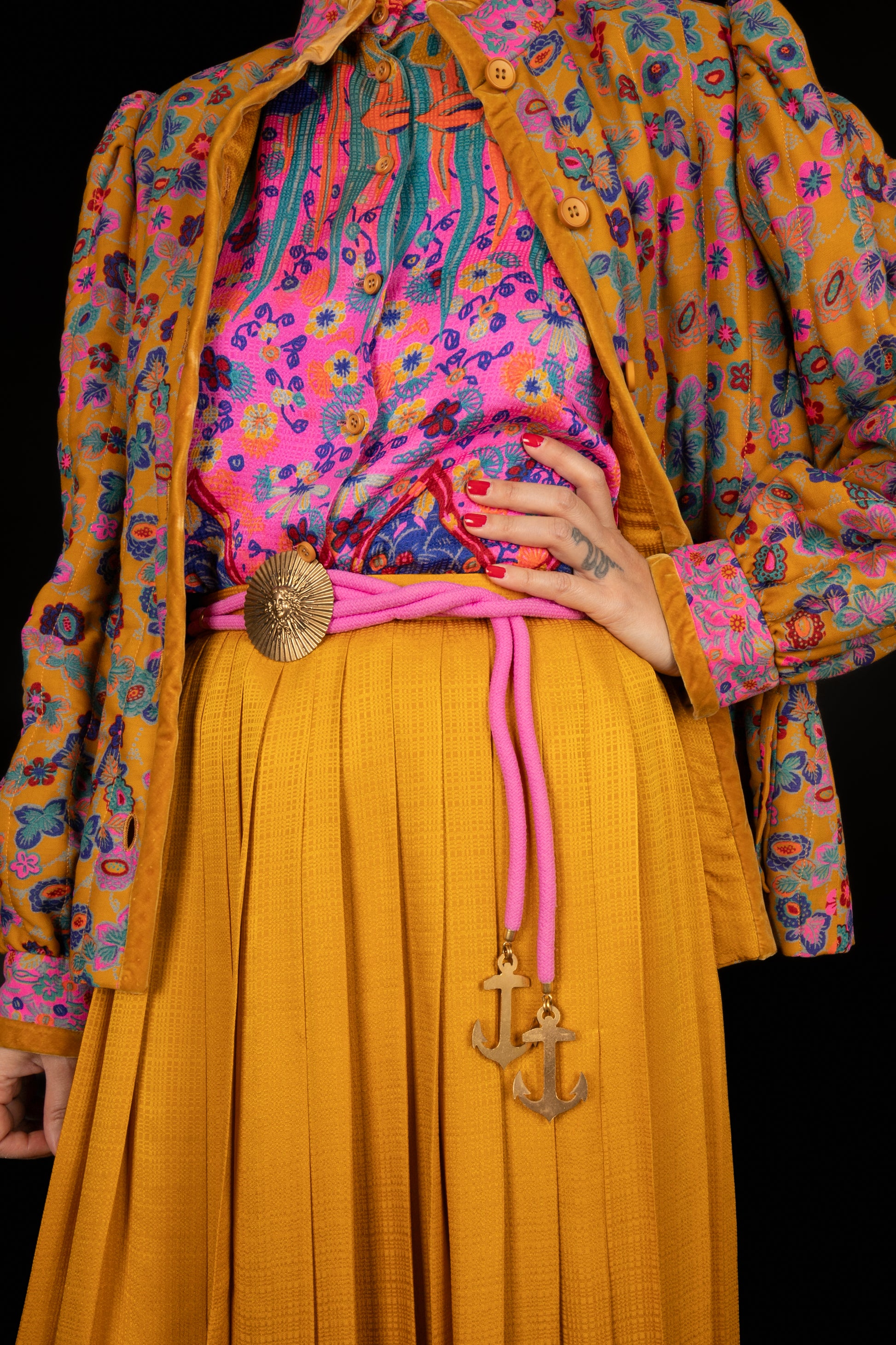 Veste : Largeur d'épaules : 36 cm - Poitrine : 47 cm - Longueur manches : 68 cm - Longueur : 62 cm // Chemisier : Longueur épaules : 33 cm - Poitrine : 48 cm - Longueur des manches : 65 cm - Longueur : 50 cm // Jupe : Taille : 33 cm - Longueur : 78 cm