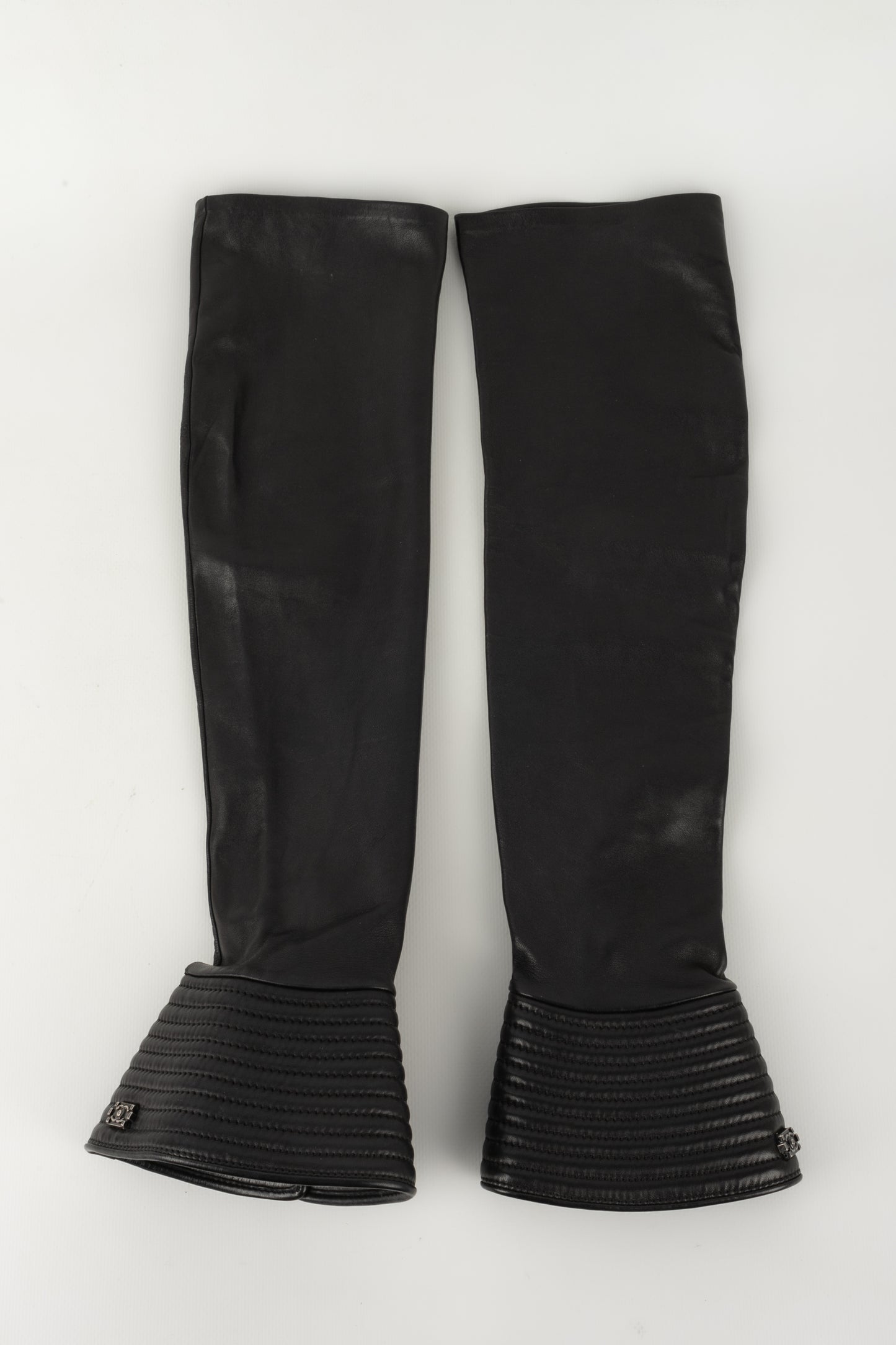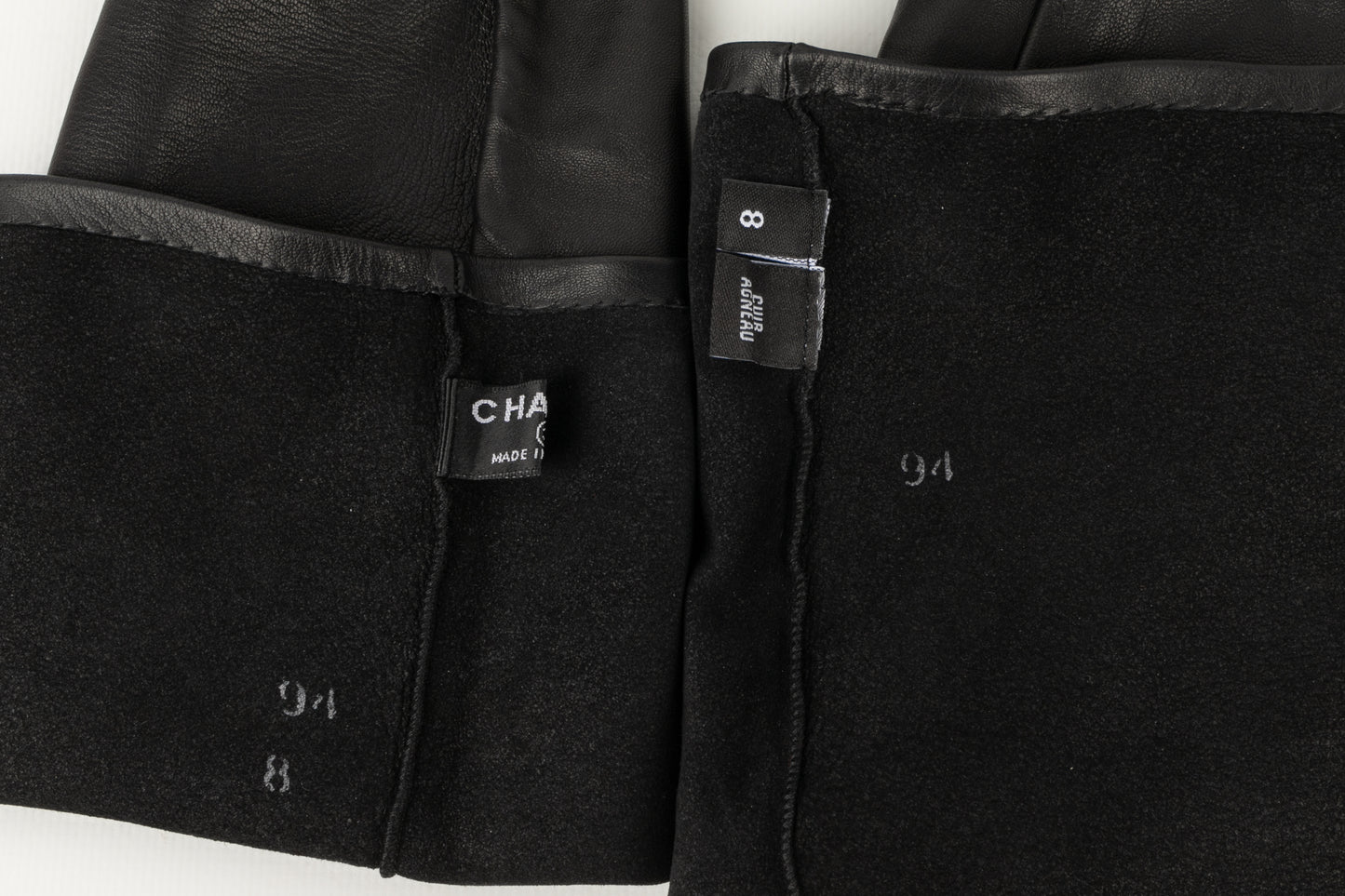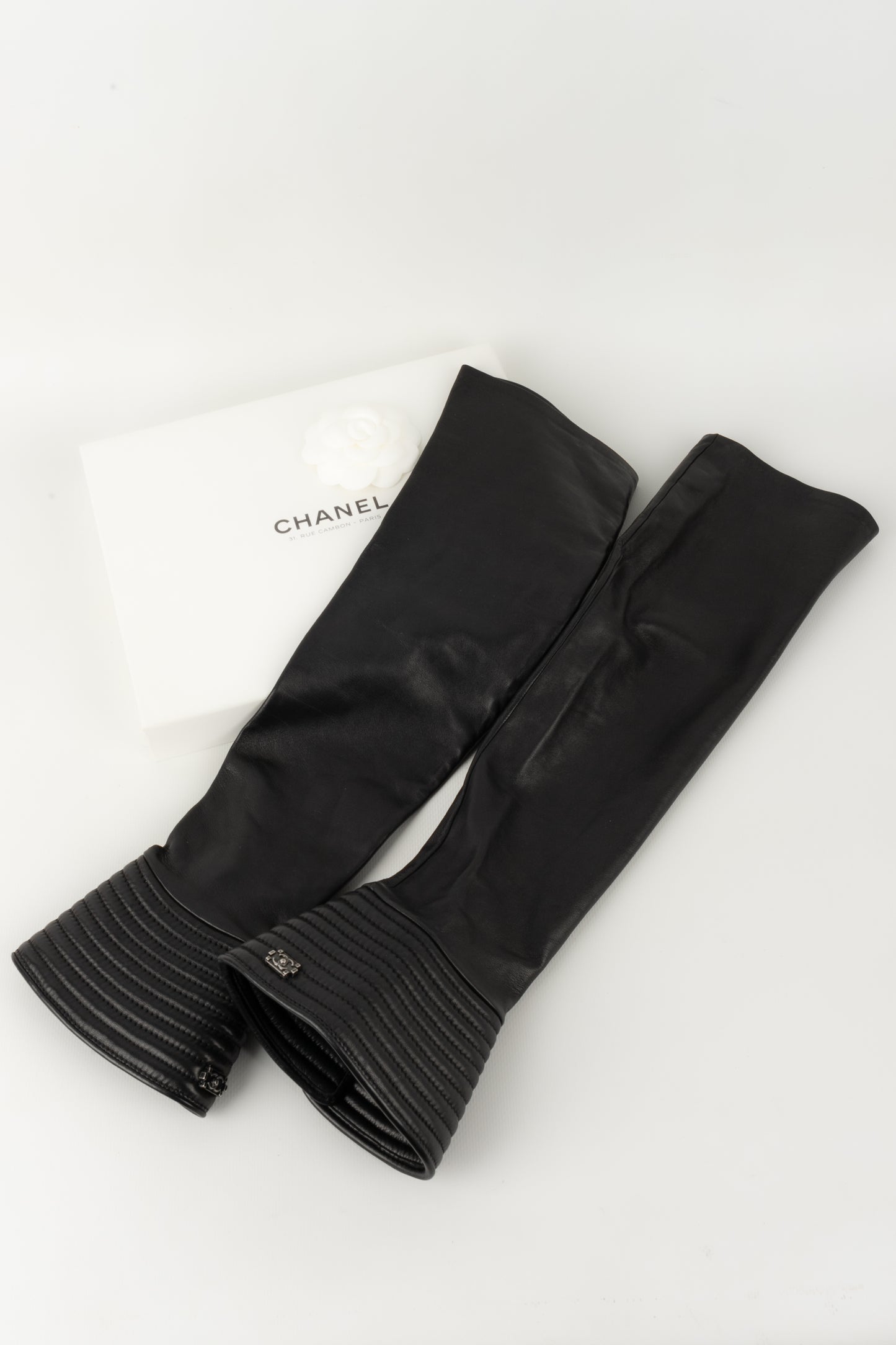 CHANEL -(Made in France) Manchettes en cuir d'agneau noir. Taille indiquée 8.