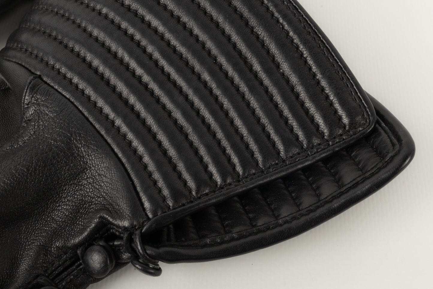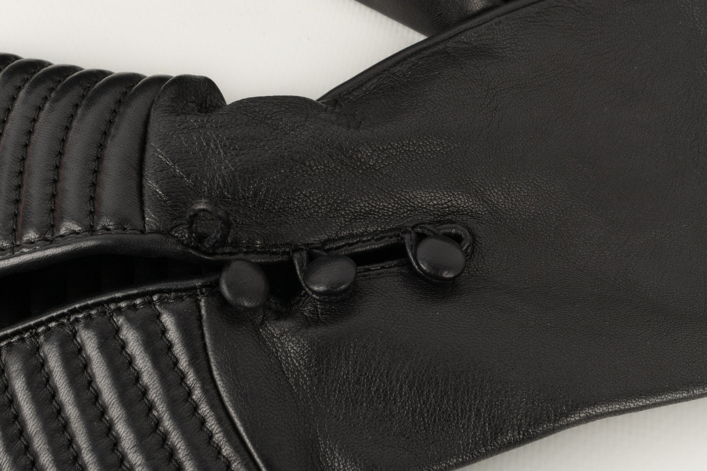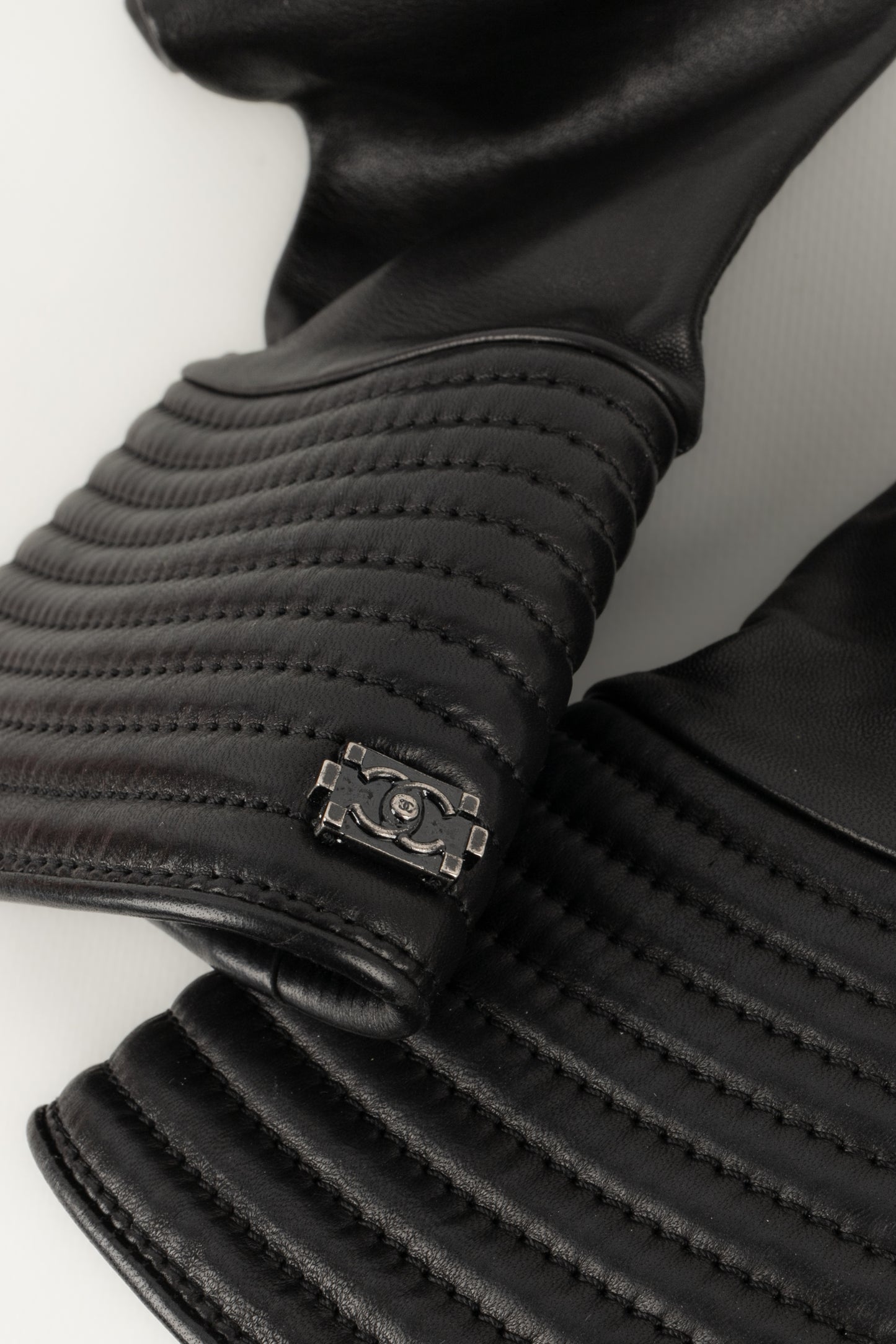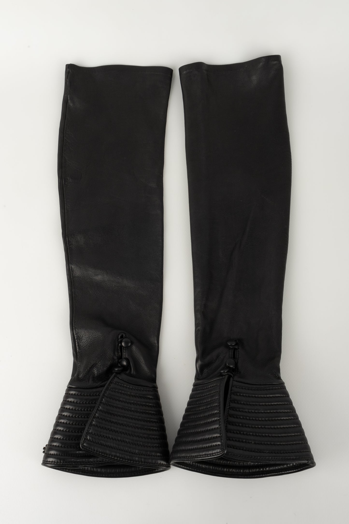 CHANEL -(Made in France) Manchettes en cuir d'agneau noir. Taille indiquée 8.