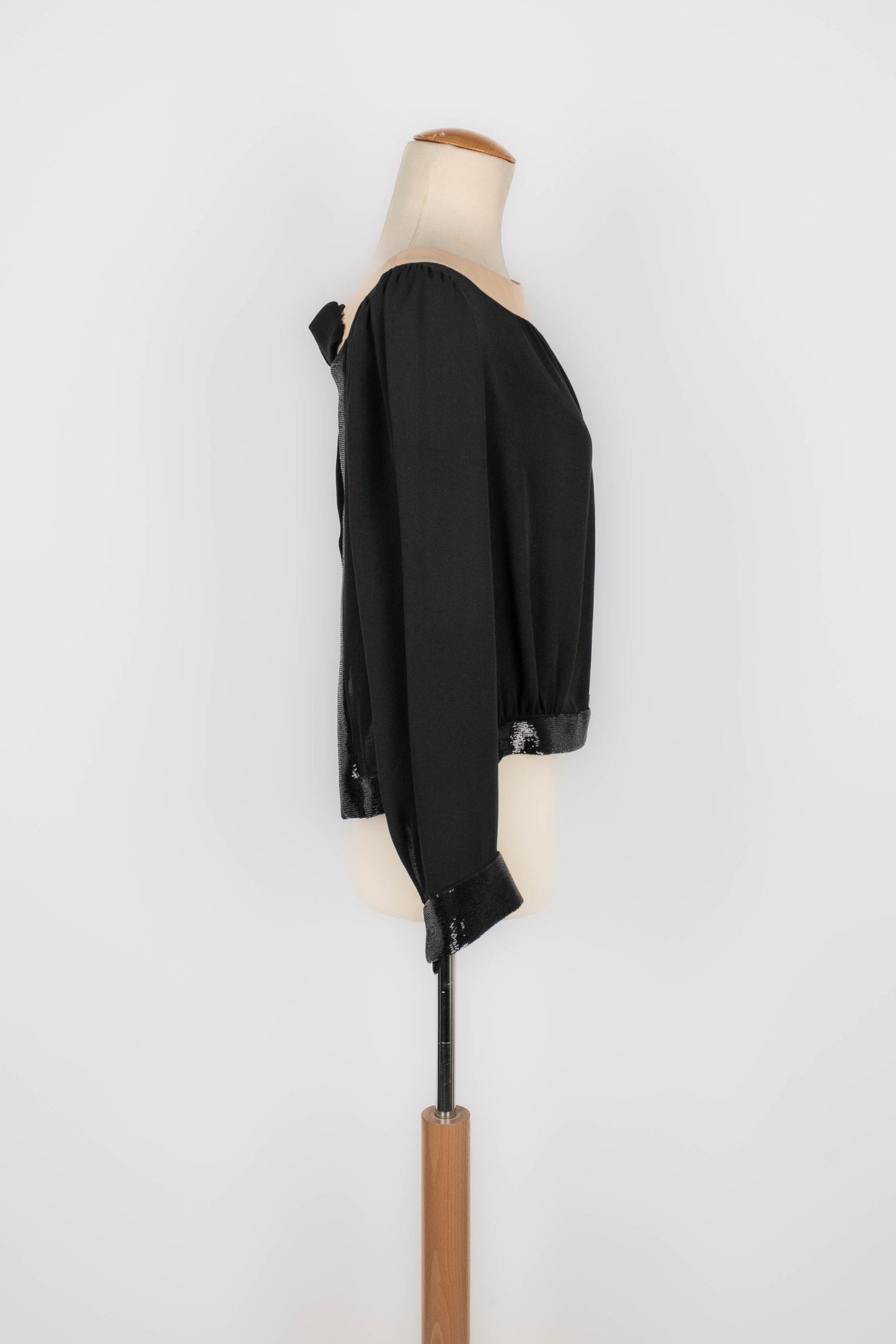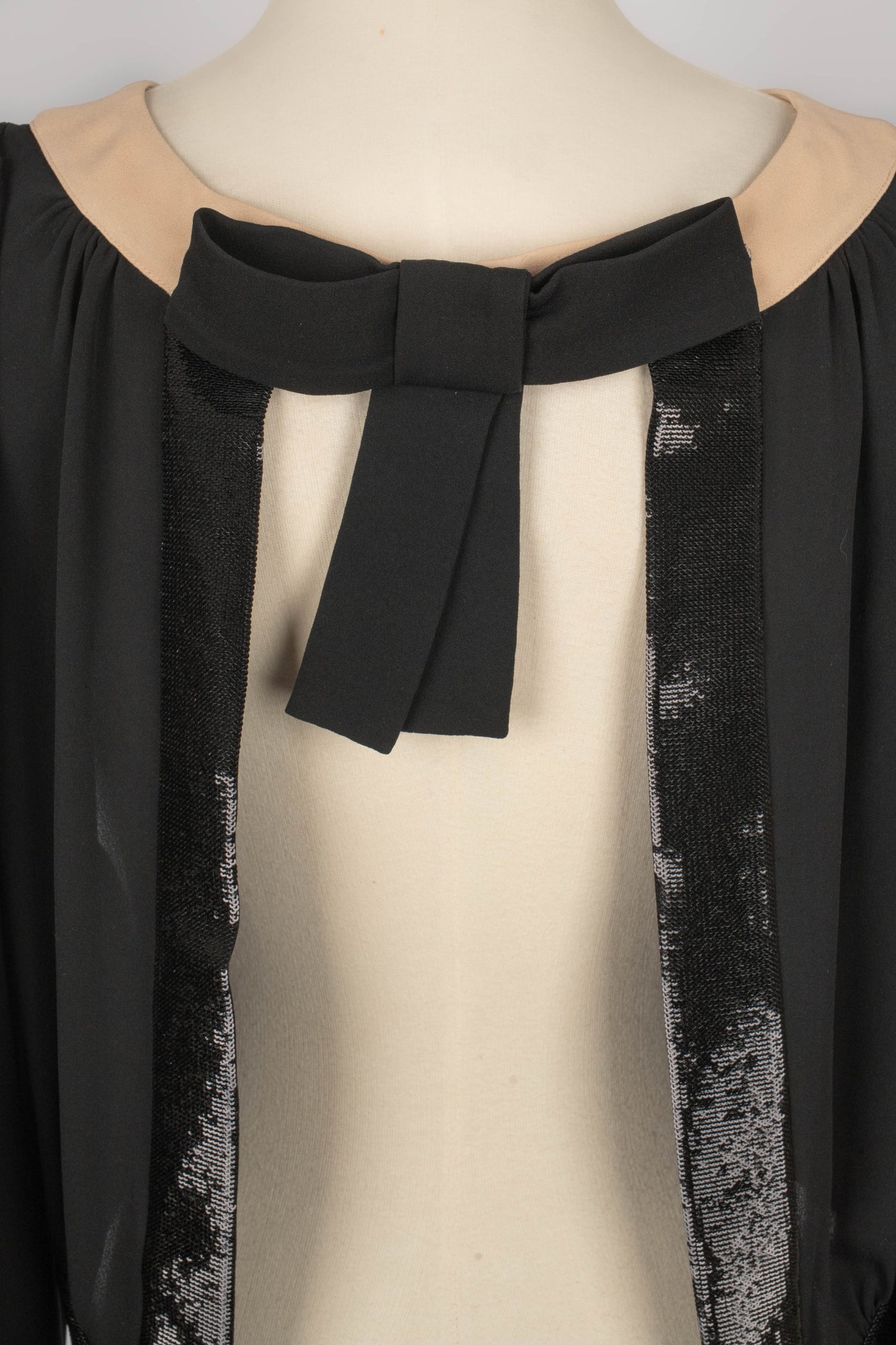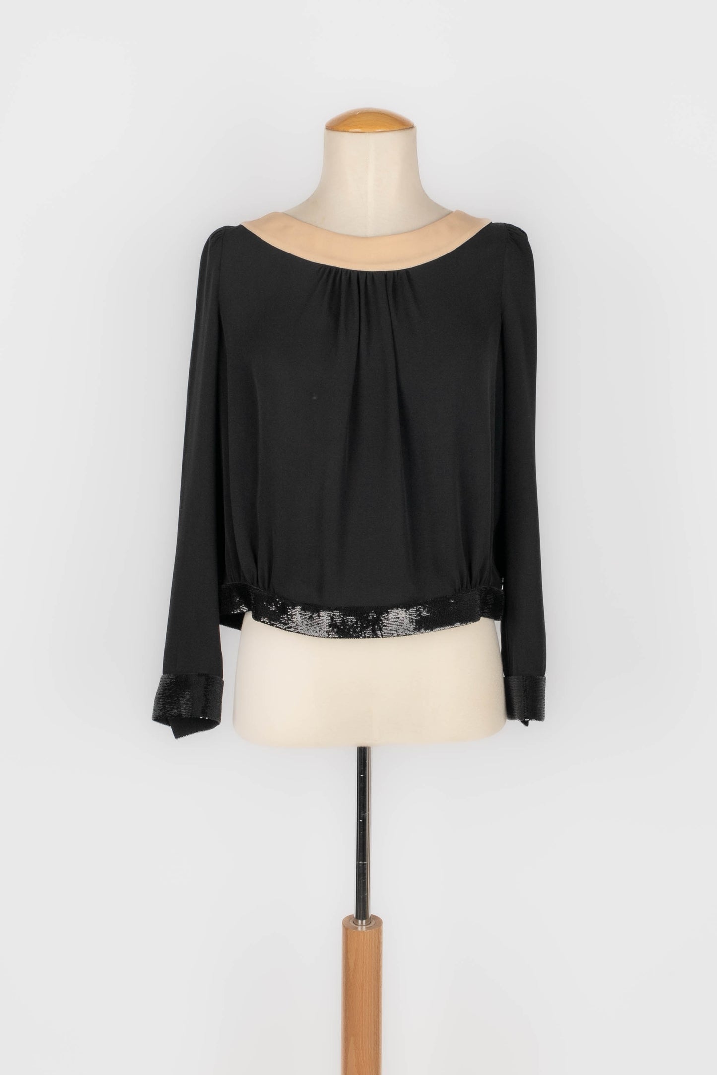 DIOR -(Made in Italy) Haut dos nu en soie noir et nude cousu de paillettes noires. Taille 38FR.