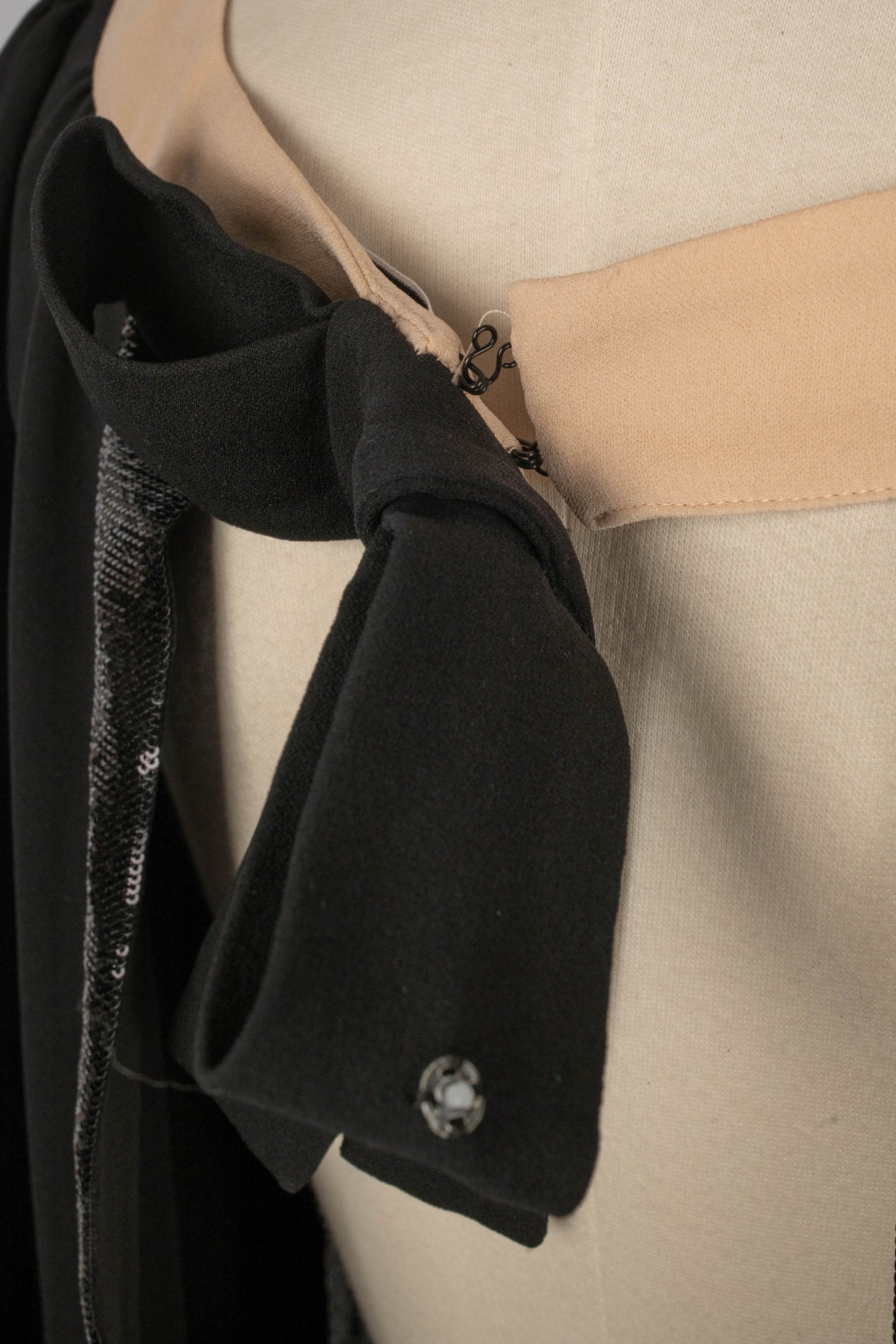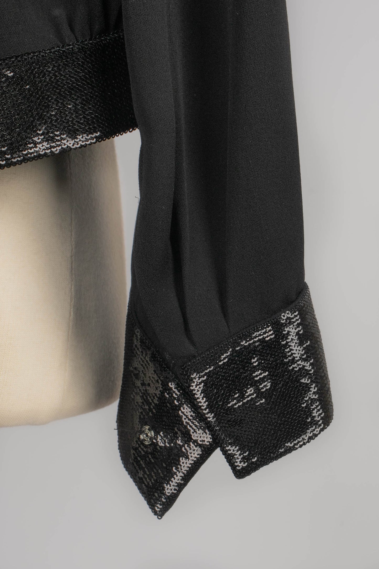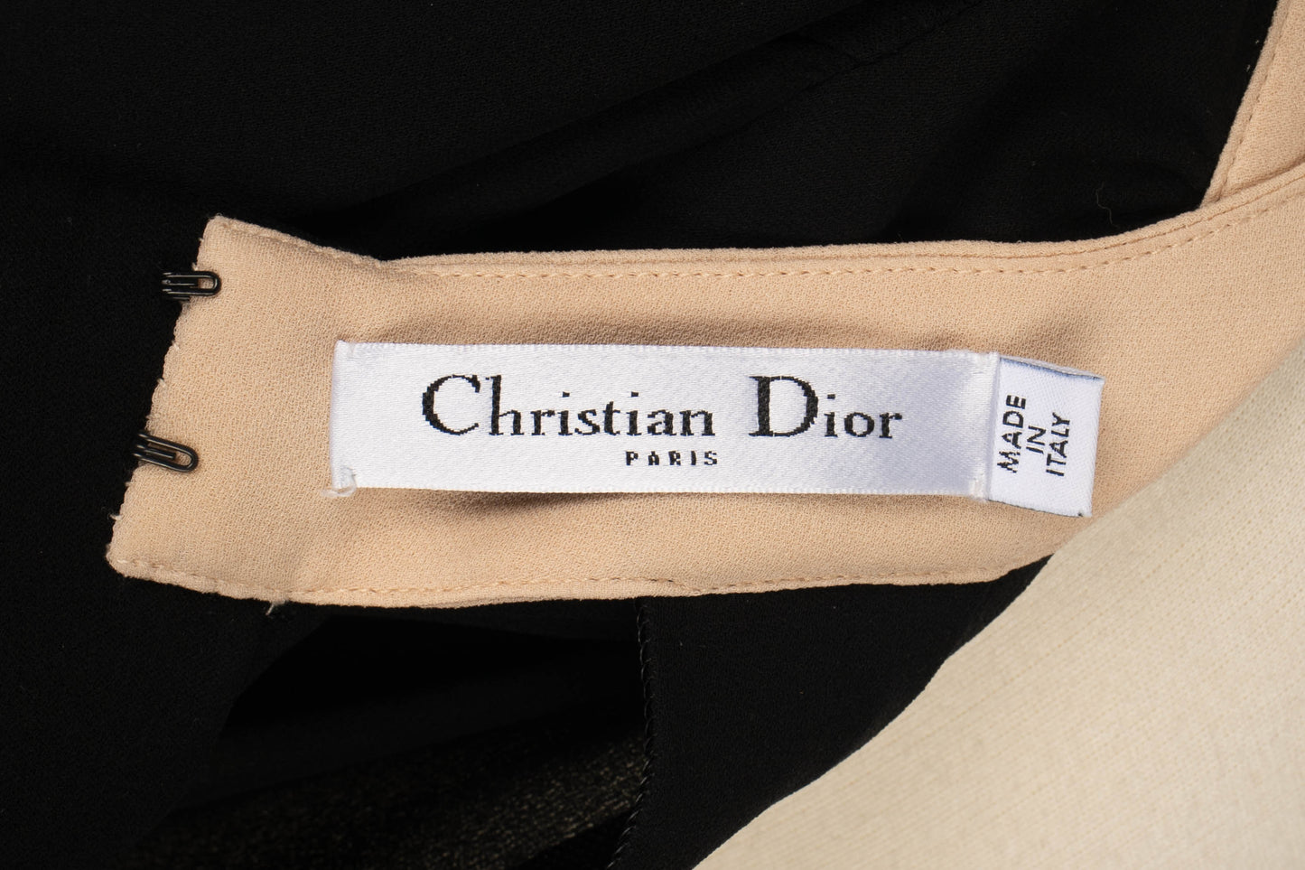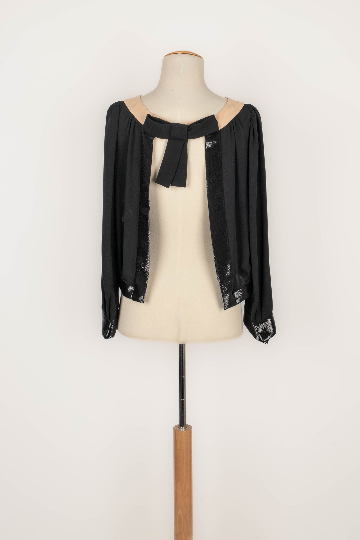 DIOR -(Made in Italy) Haut dos nu en soie noir et nude cousu de paillettes noires. Taille 38FR.