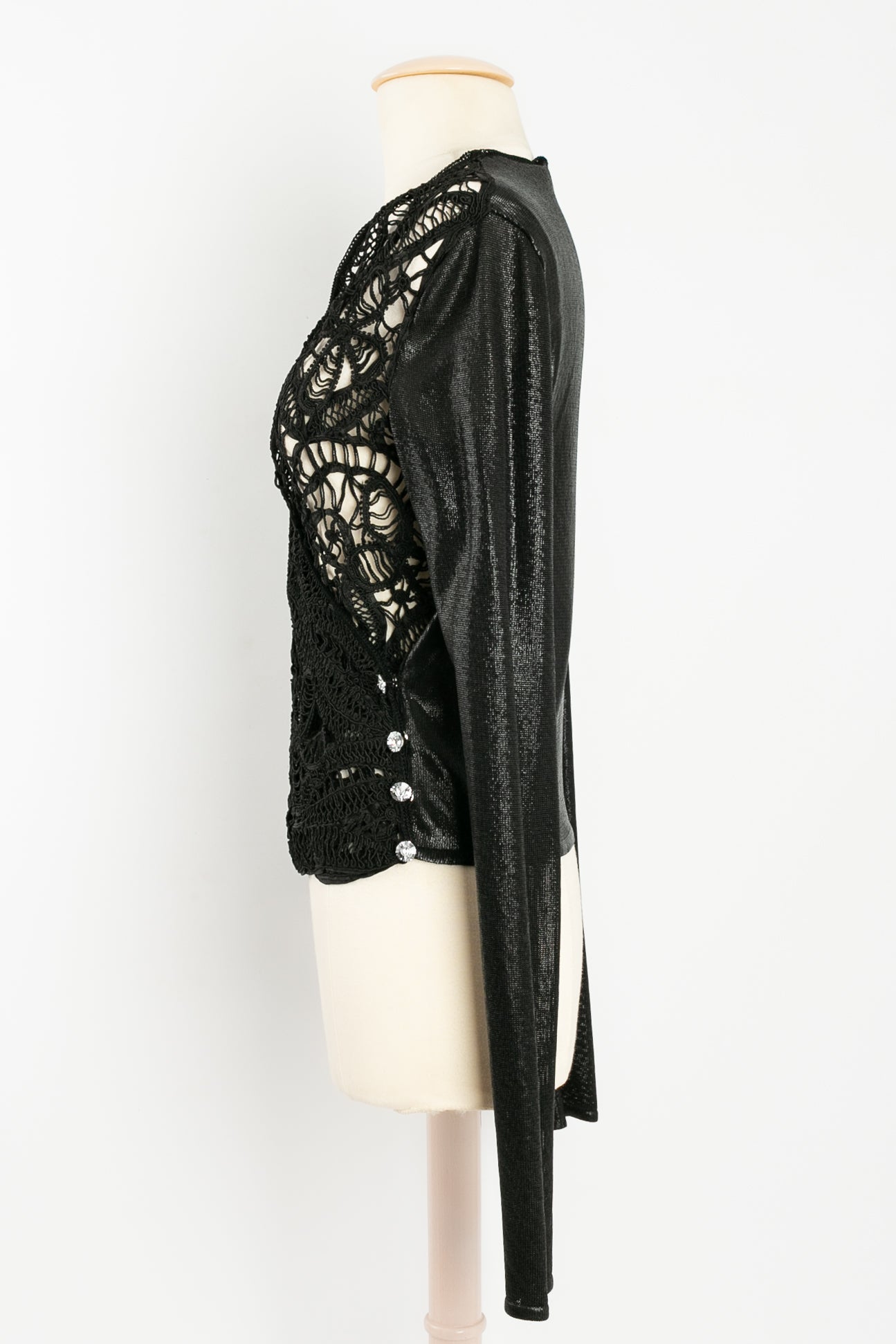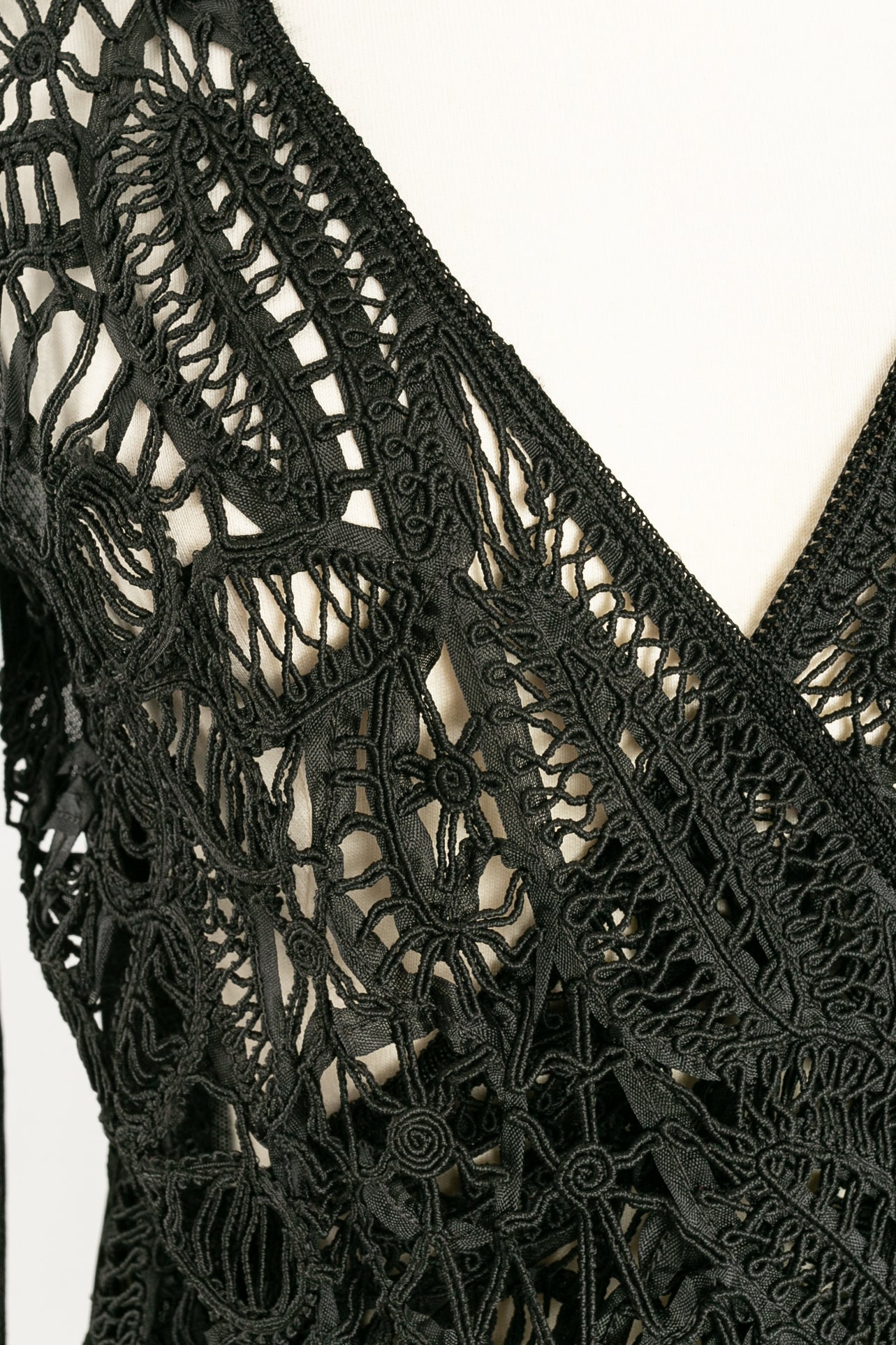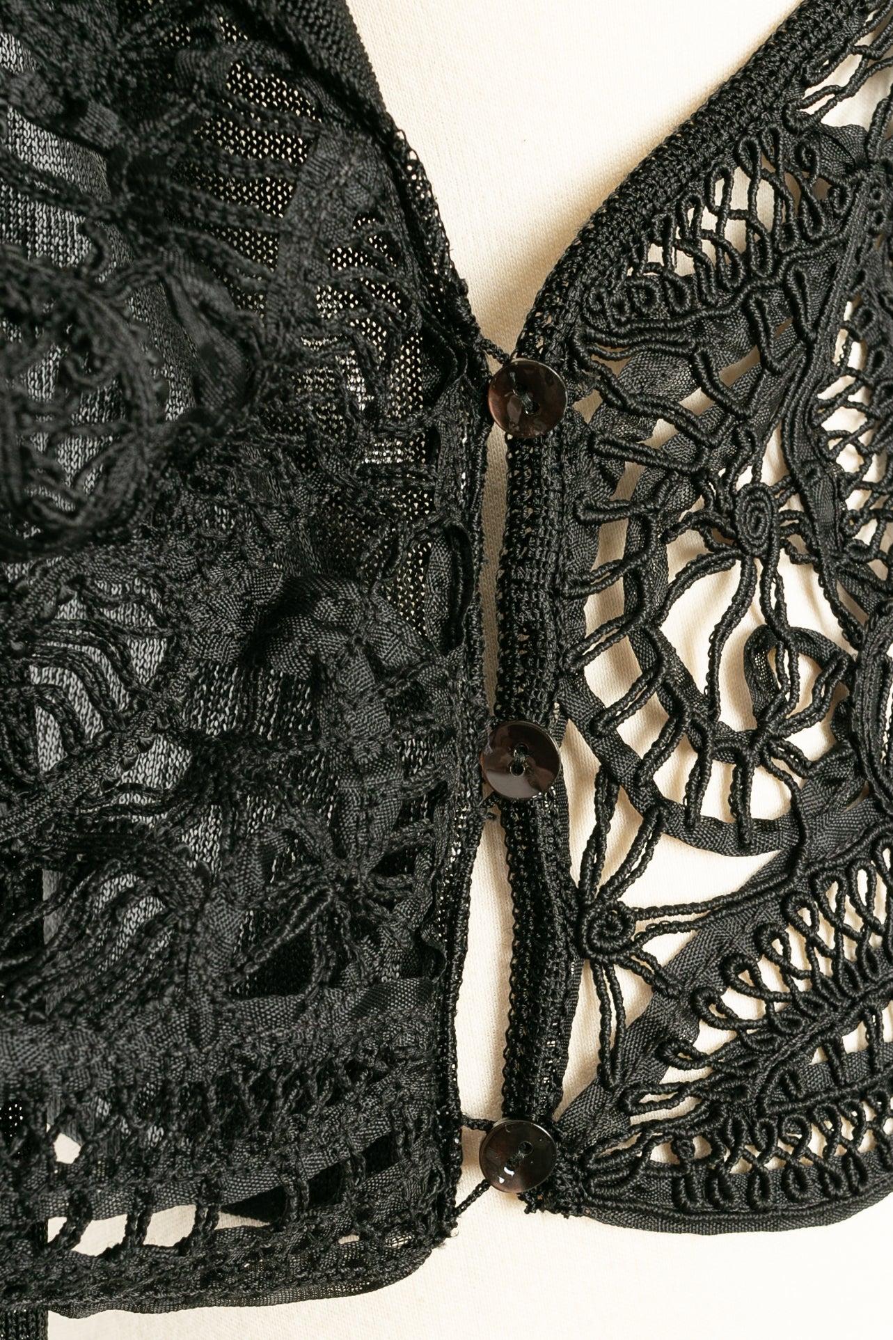 GALLIANO -Top cache cœur noir en crochet style dentelle ancienne et maille effet toile enduite. Aucune étiquette de taille ou de composition, il convient à un 38FR.