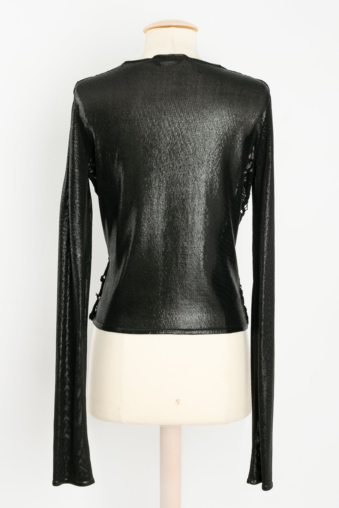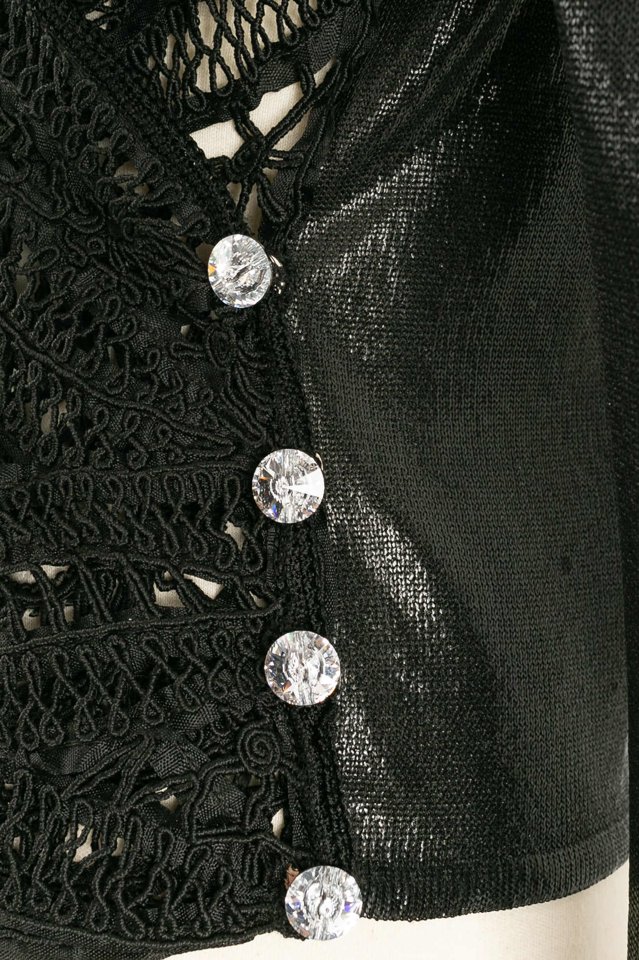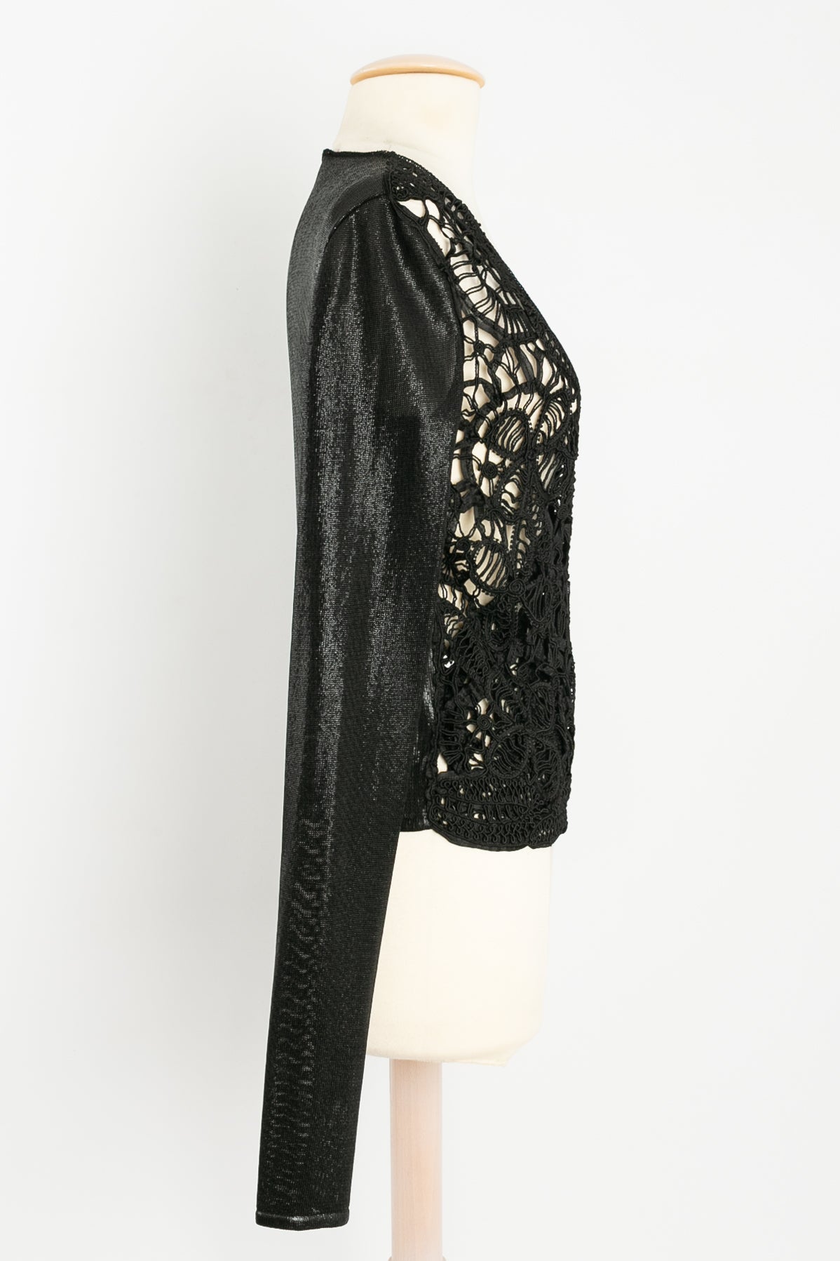 GALLIANO -Top cache cœur noir en crochet style dentelle ancienne et maille effet toile enduite. Aucune étiquette de taille ou de composition, il convient à un 38FR.