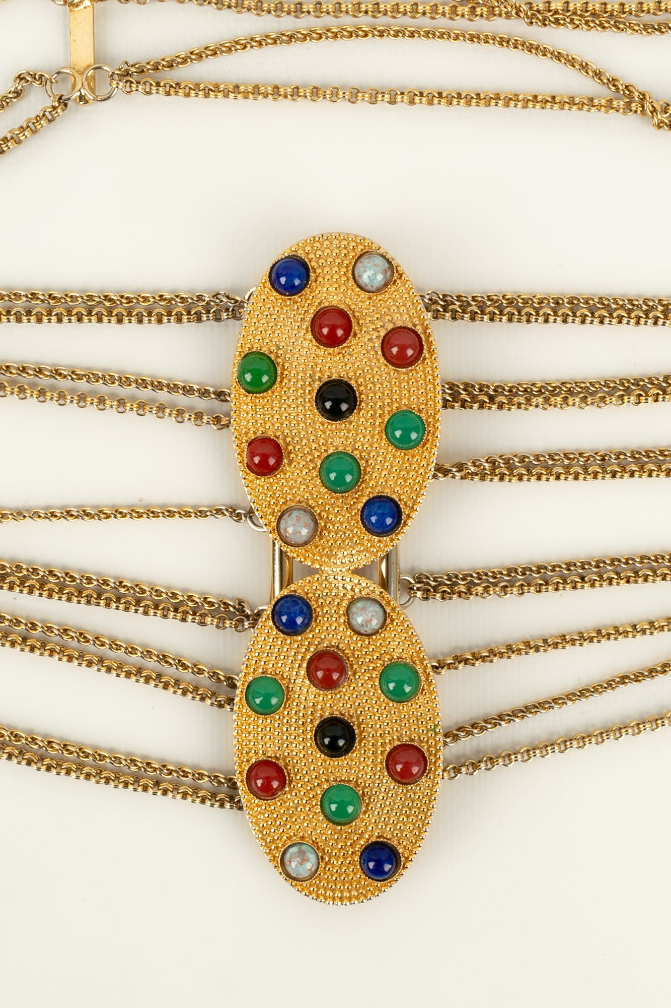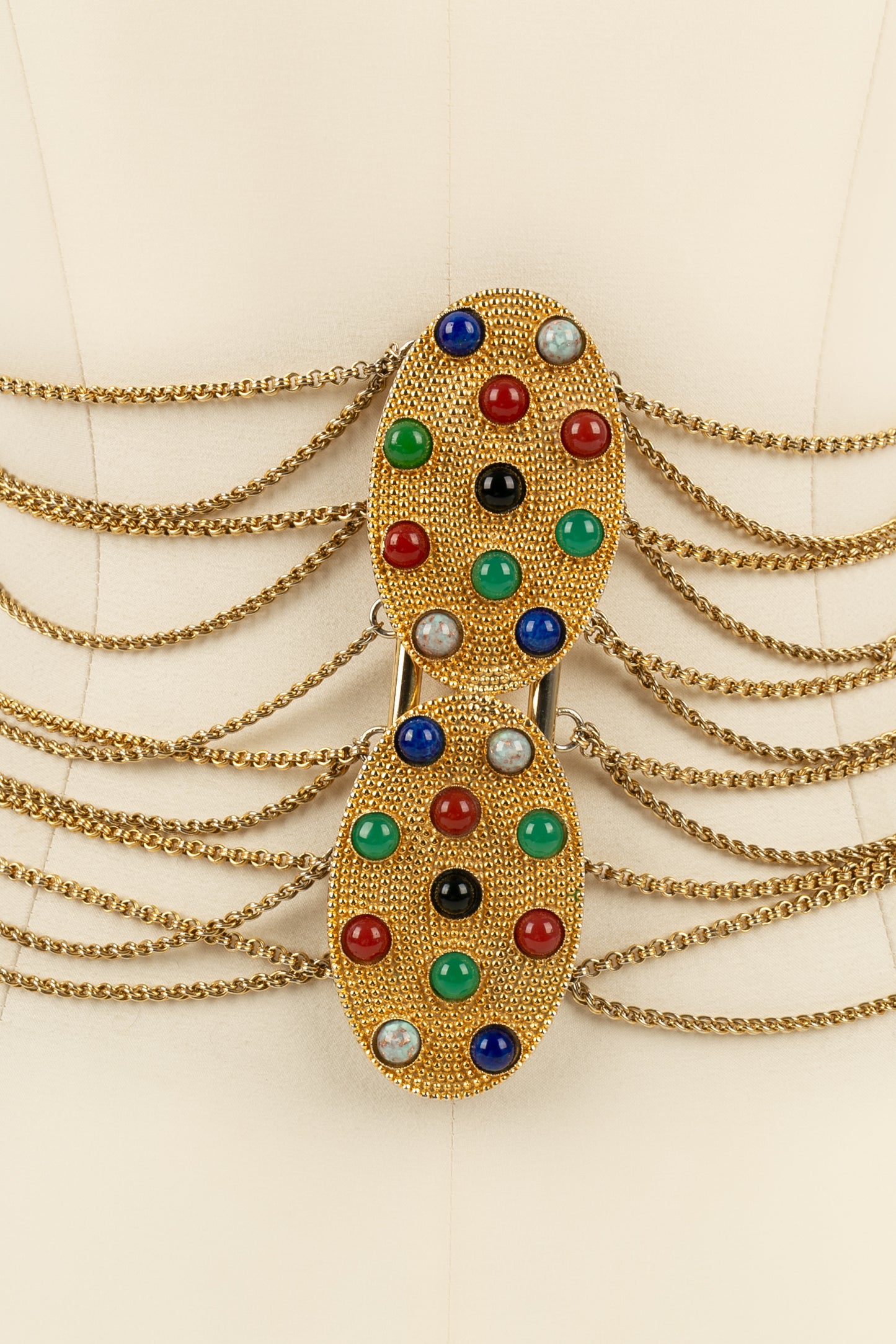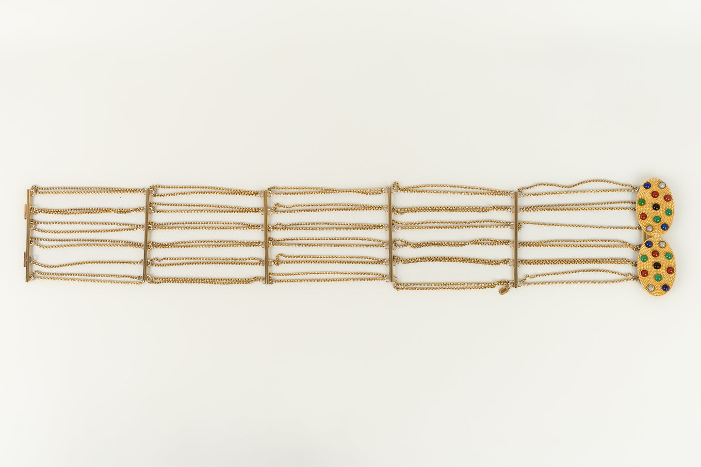 DIOR -Ceinture multi-rangs de chaînes en métal doré et cabochons multicolores.