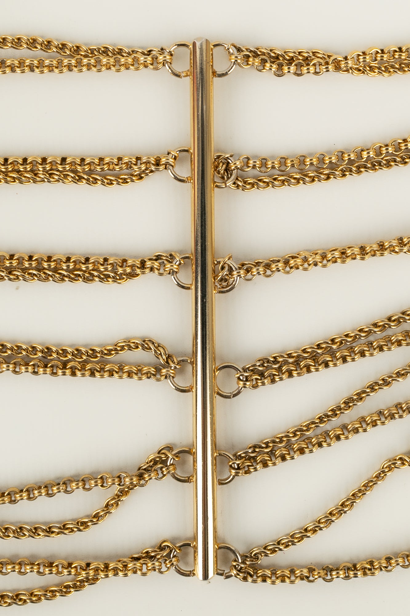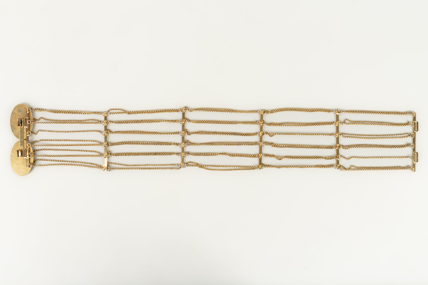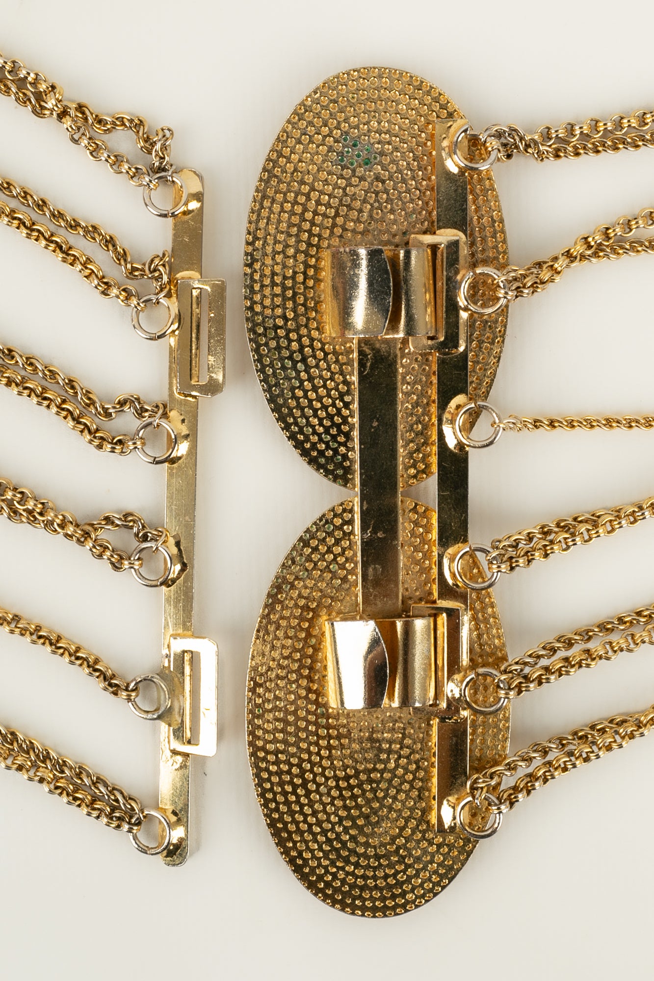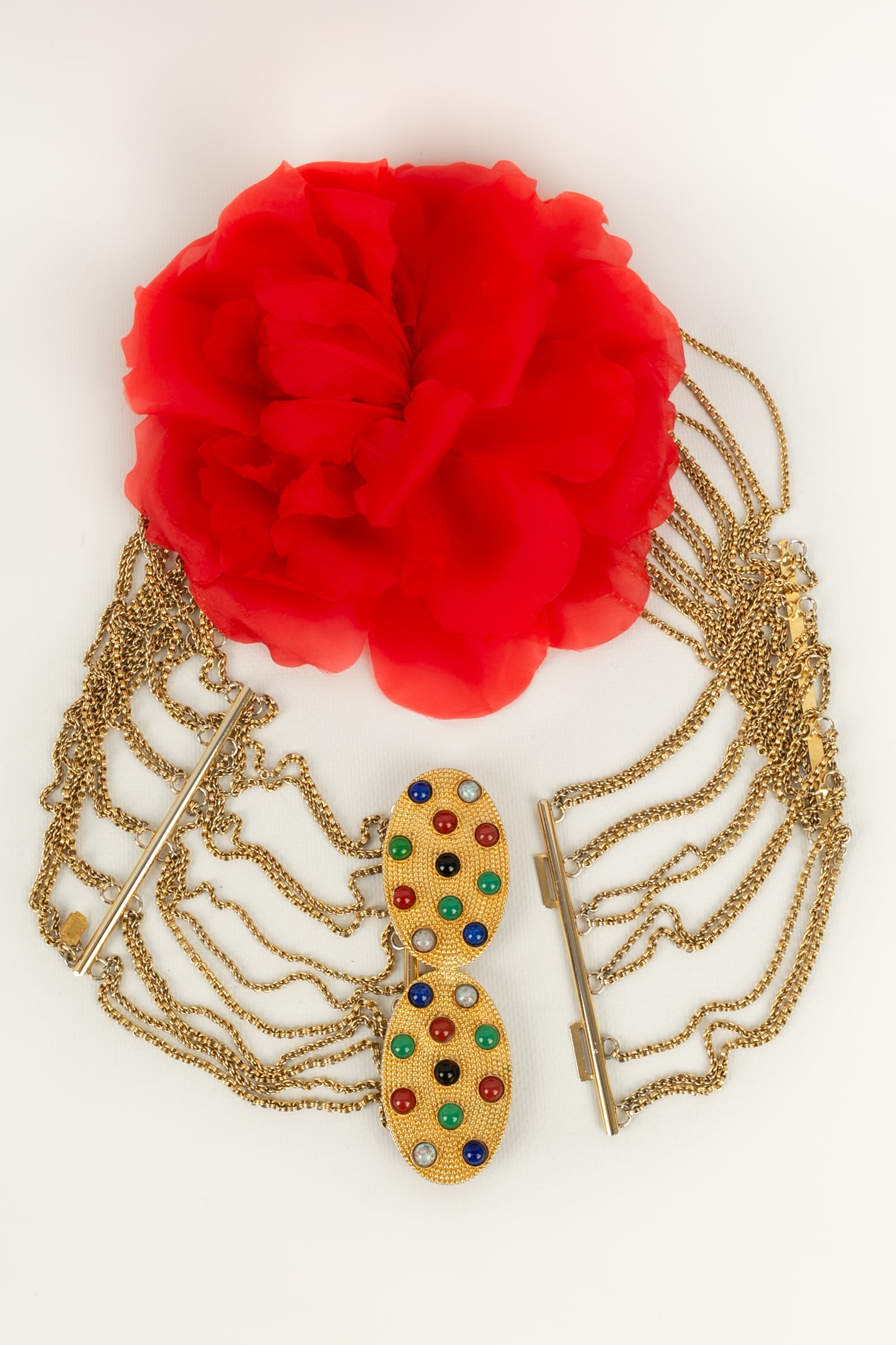 DIOR -Ceinture multi-rangs de chaînes en métal doré et cabochons multicolores.