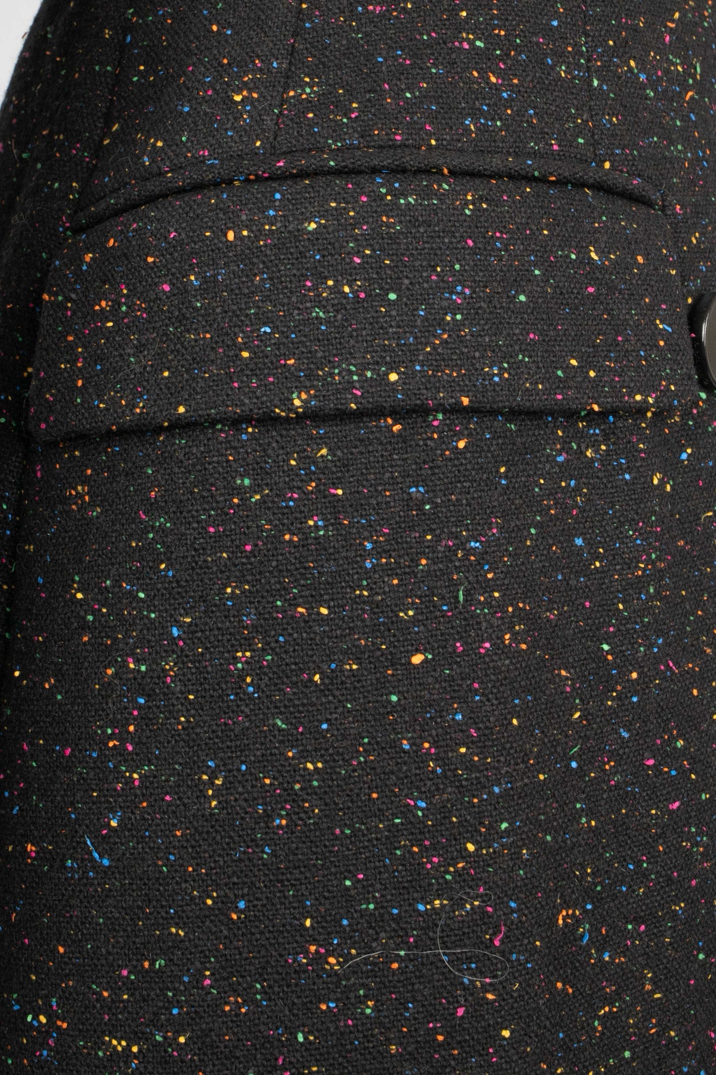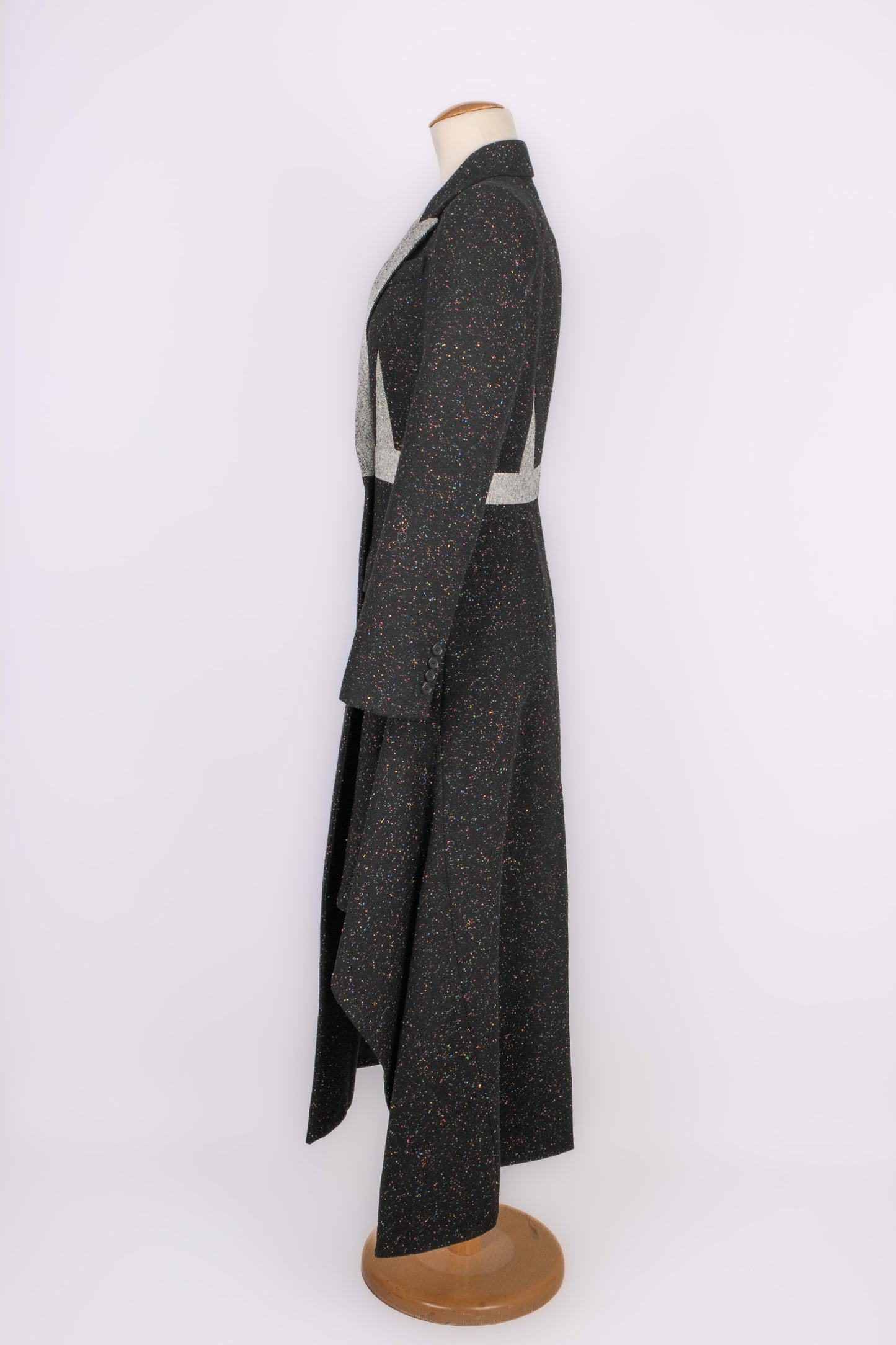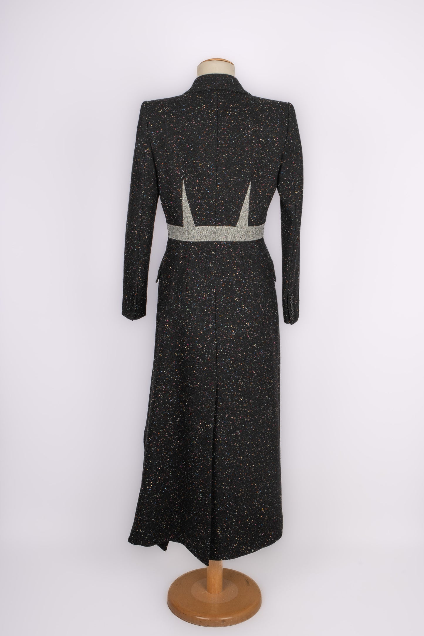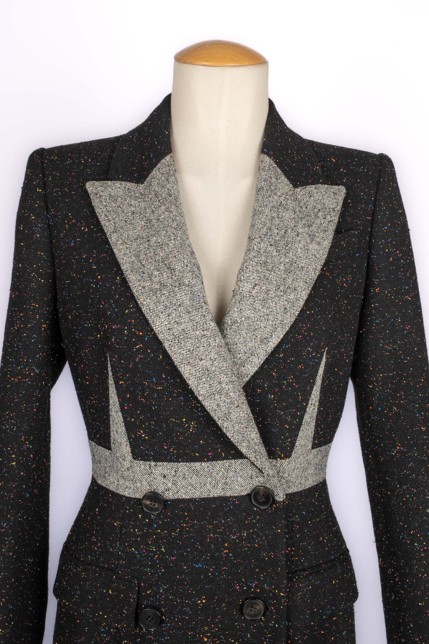 ALEXANDER MCQUEEN -(Made in Italy) Manteau asymétrique en laine mélangée noire et multicolore. Incrustation de laine grise. Pas de taille indiquée, il convient à un 34FR/36FR. Collection Pre-fall 2020, sous la direction Sarah Burton.