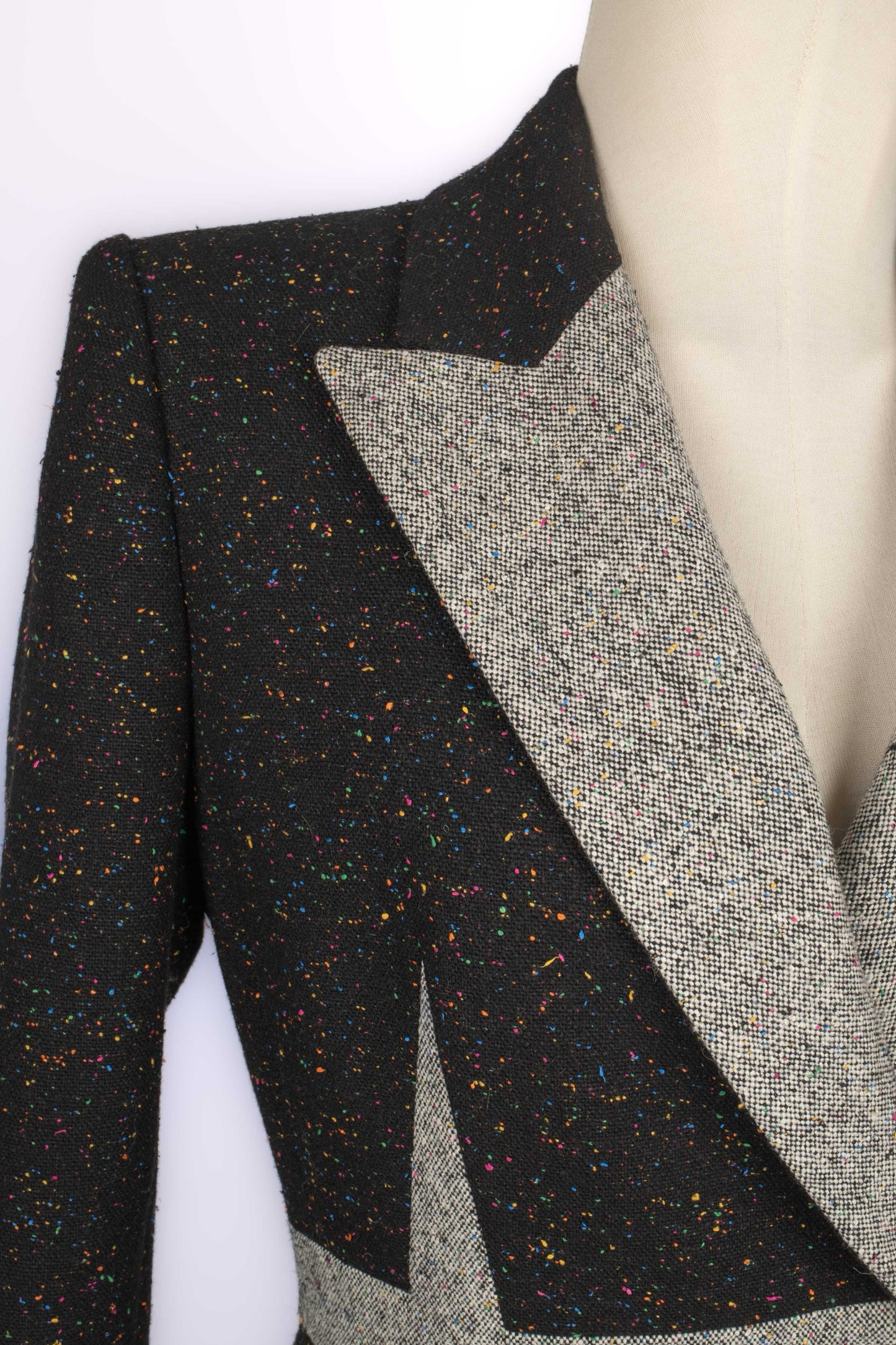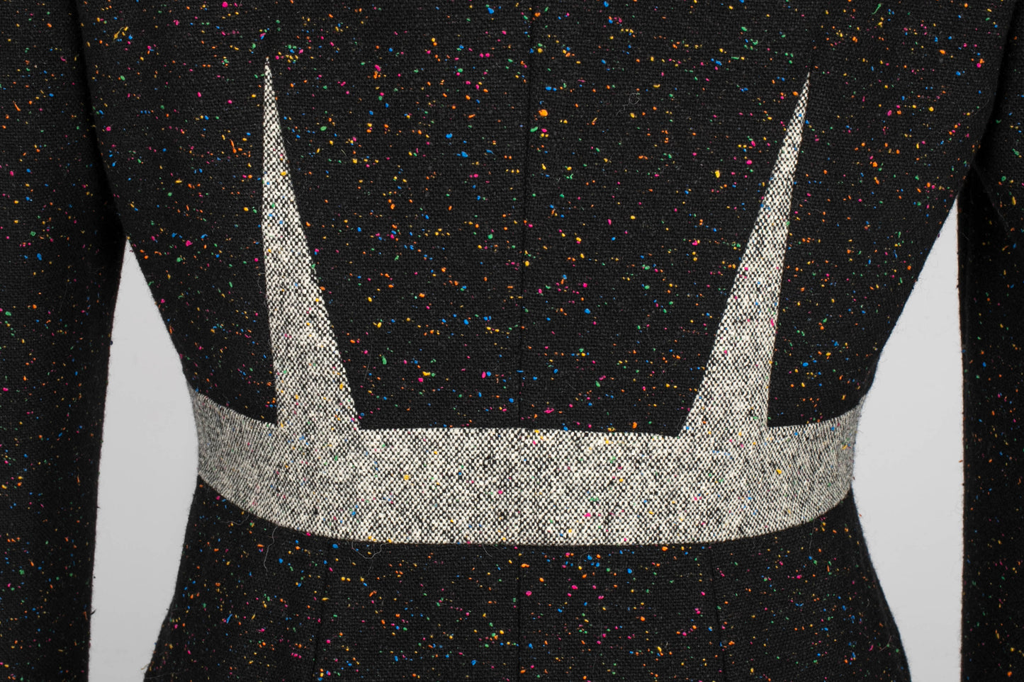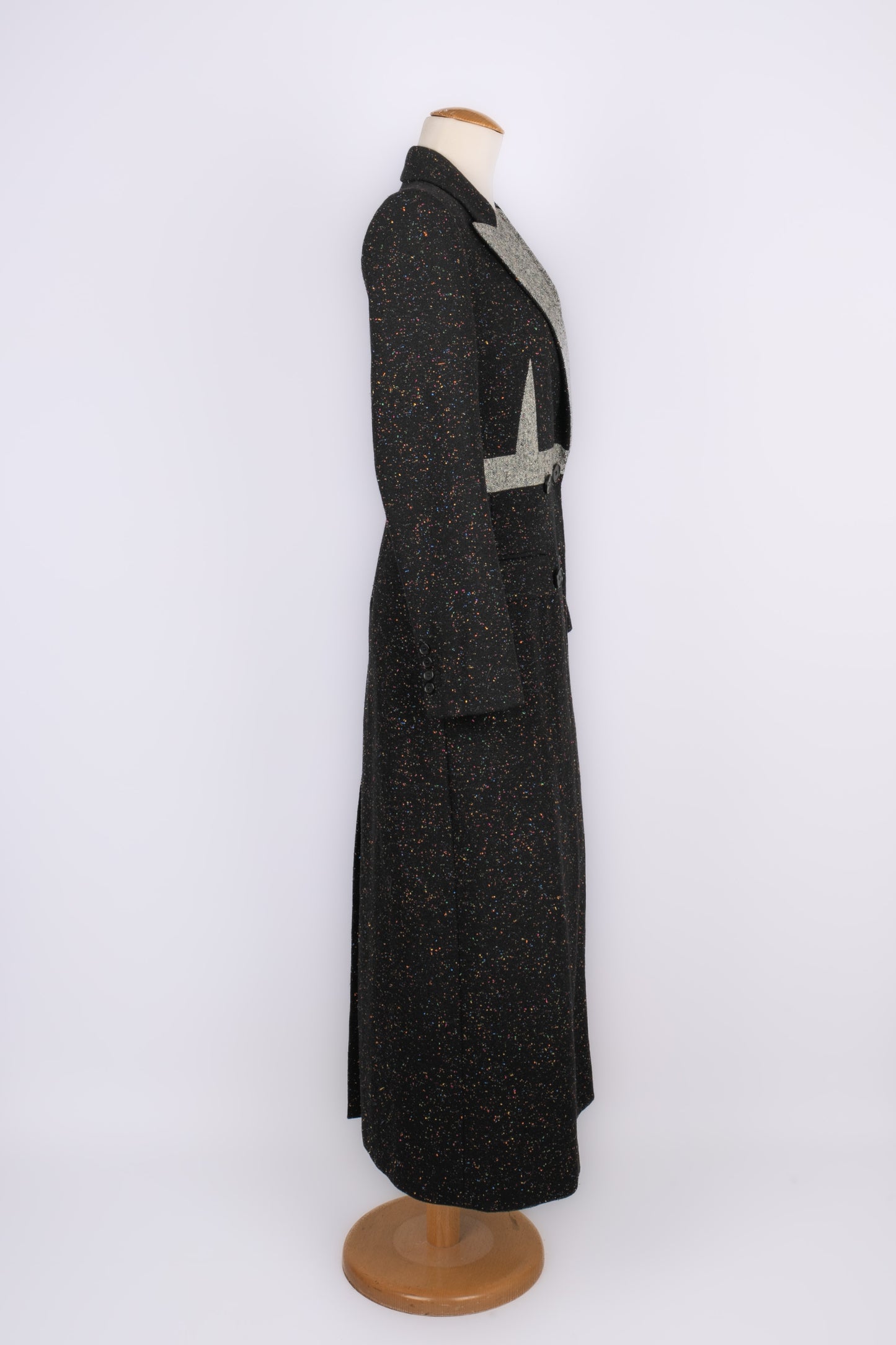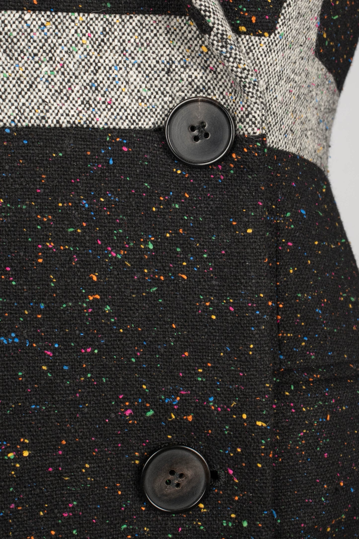 ALEXANDER MCQUEEN -(Made in Italy) Manteau asymétrique en laine mélangée noire et multicolore. Incrustation de laine grise. Pas de taille indiquée, il convient à un 34FR/36FR. Collection Pre-fall 2020, sous la direction Sarah Burton.