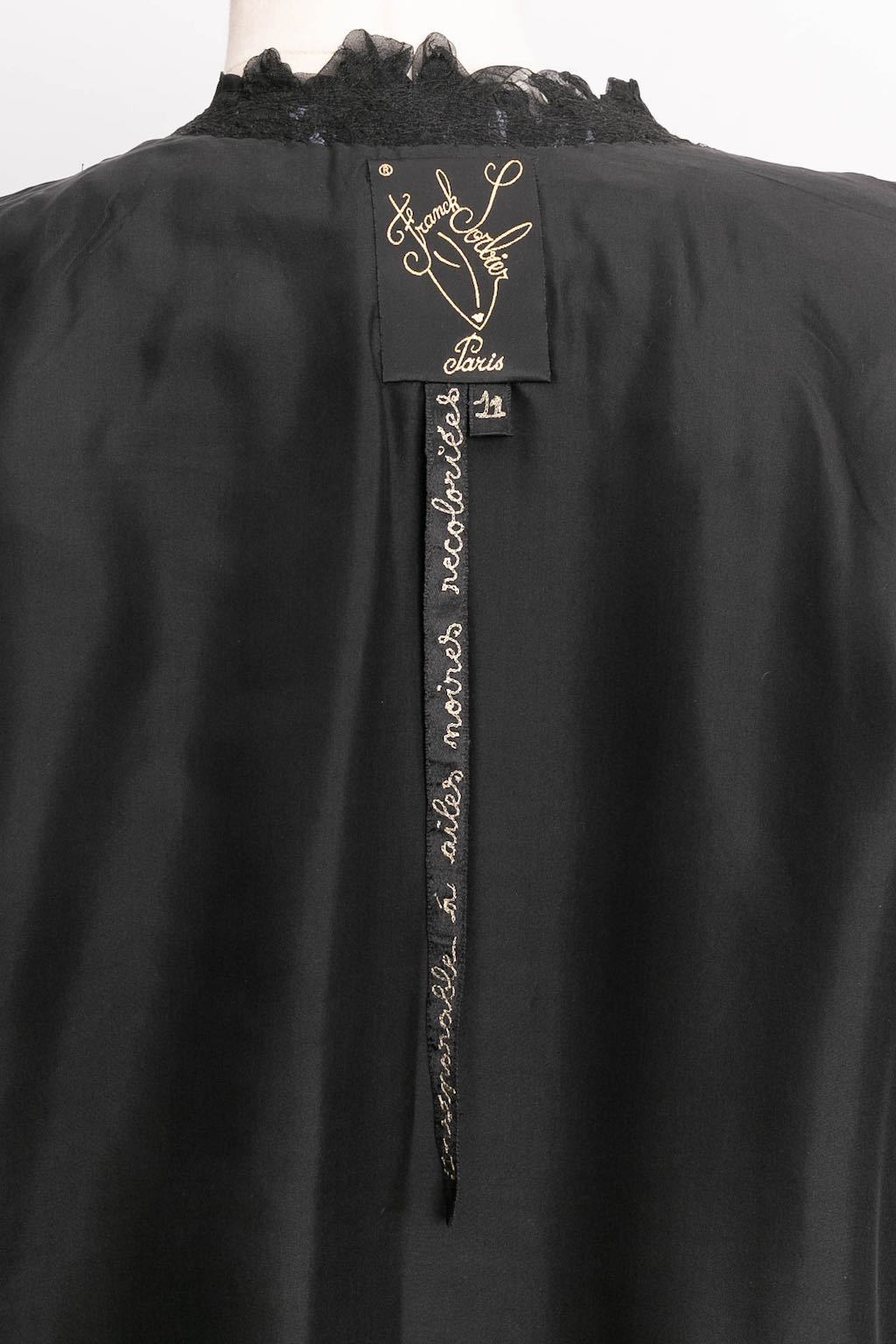 FRANCK SORBIER HAUTE COUTURE - Veste en soie surpiquée modèle Inséparable à ailes noires recoloriées. Aucune étiquette de taille ou de composition, elle convient à une taille 40FR/42FR.