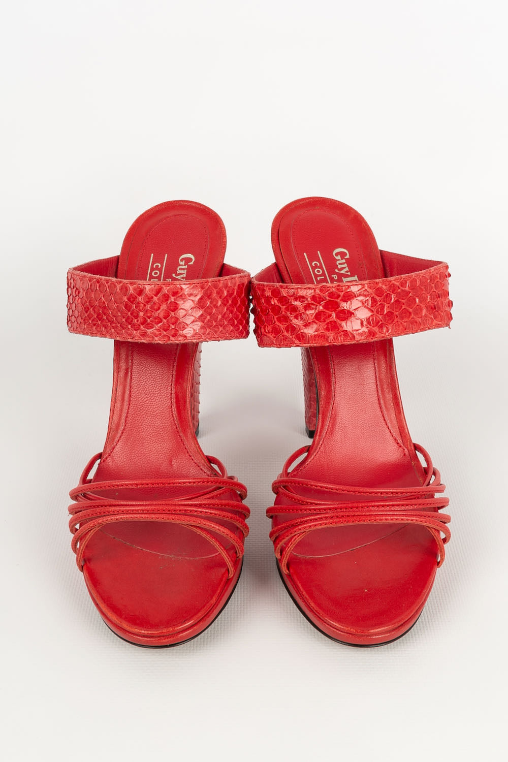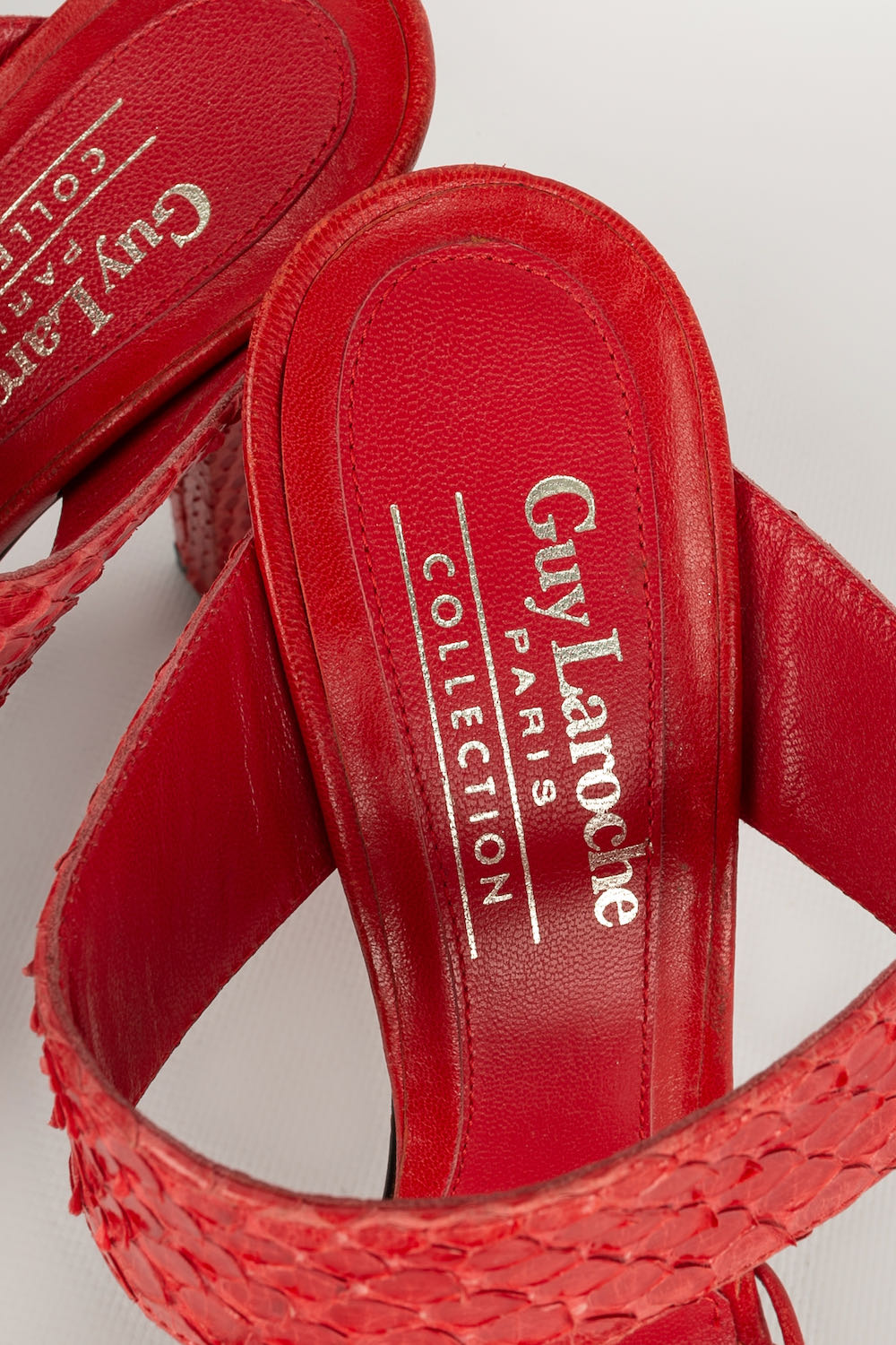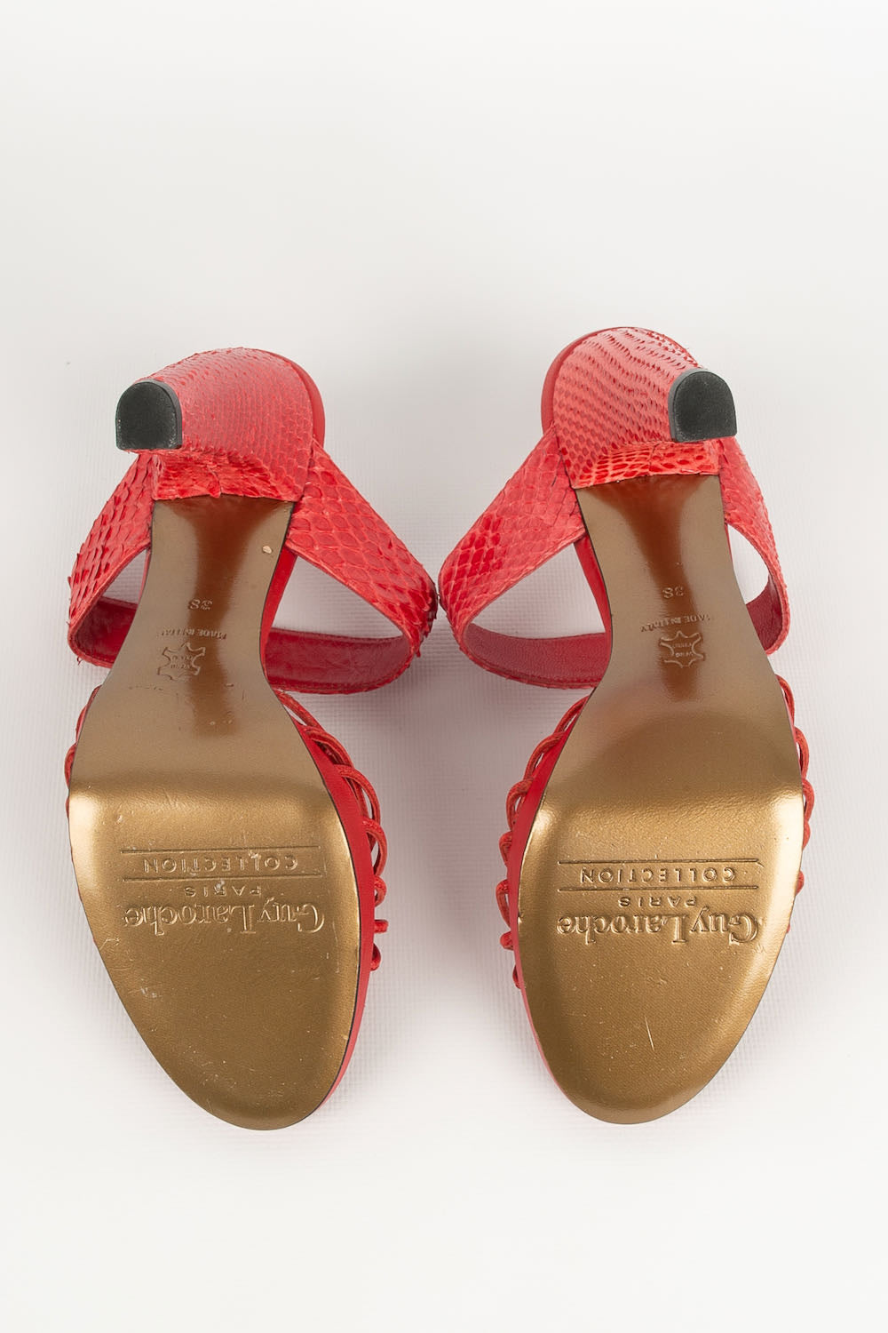 GUY LAROCHE -(Made in Italy) Mules en serpent. Semelles en cuir doré. Pointure 38.