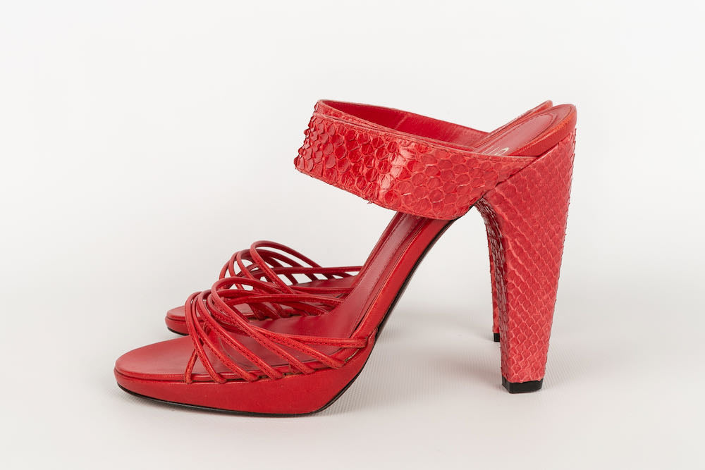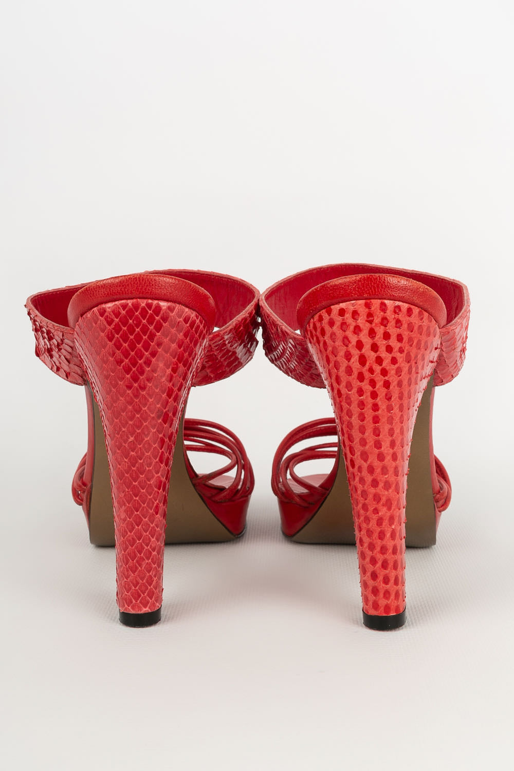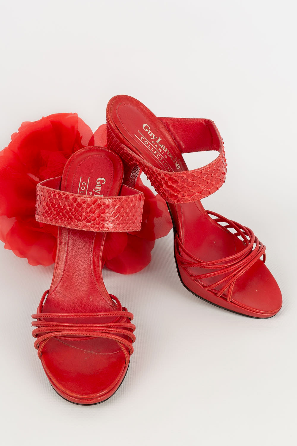 GUY LAROCHE -(Made in Italy) Mules en serpent. Semelles en cuir doré. Pointure 38.