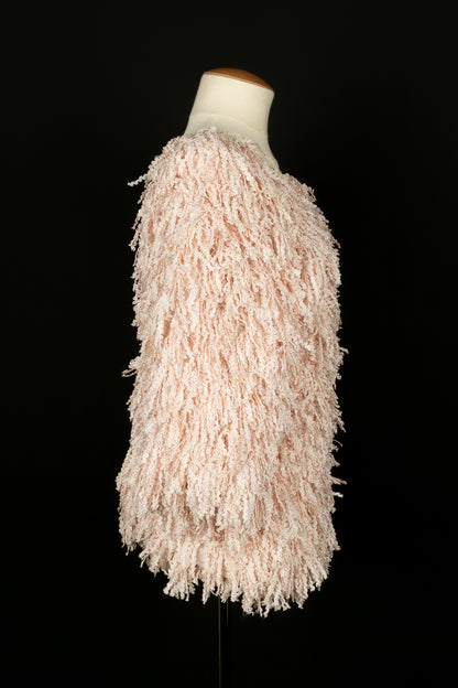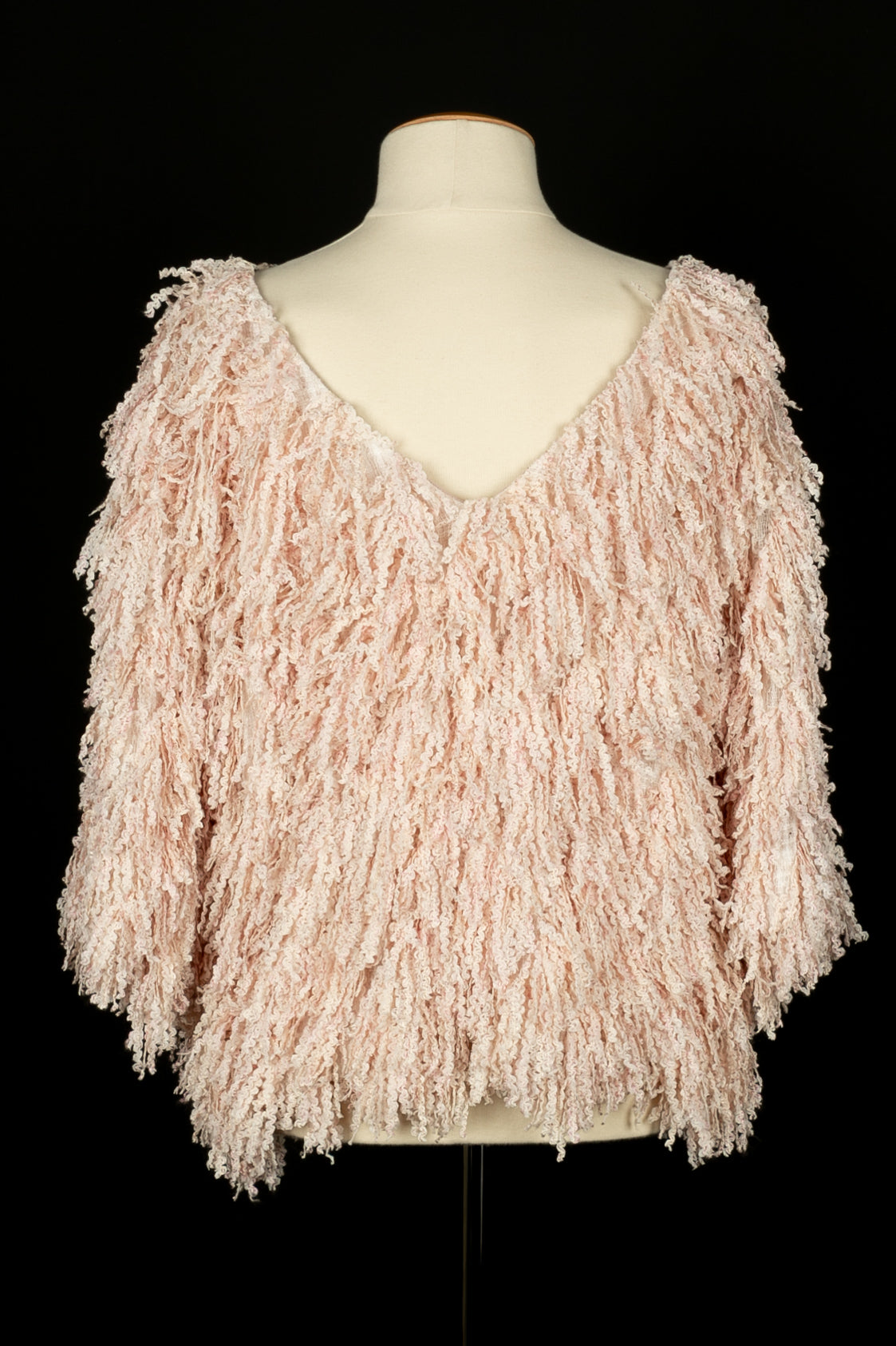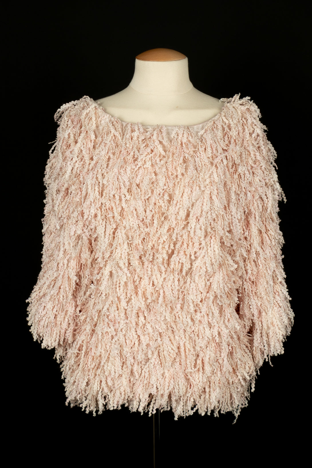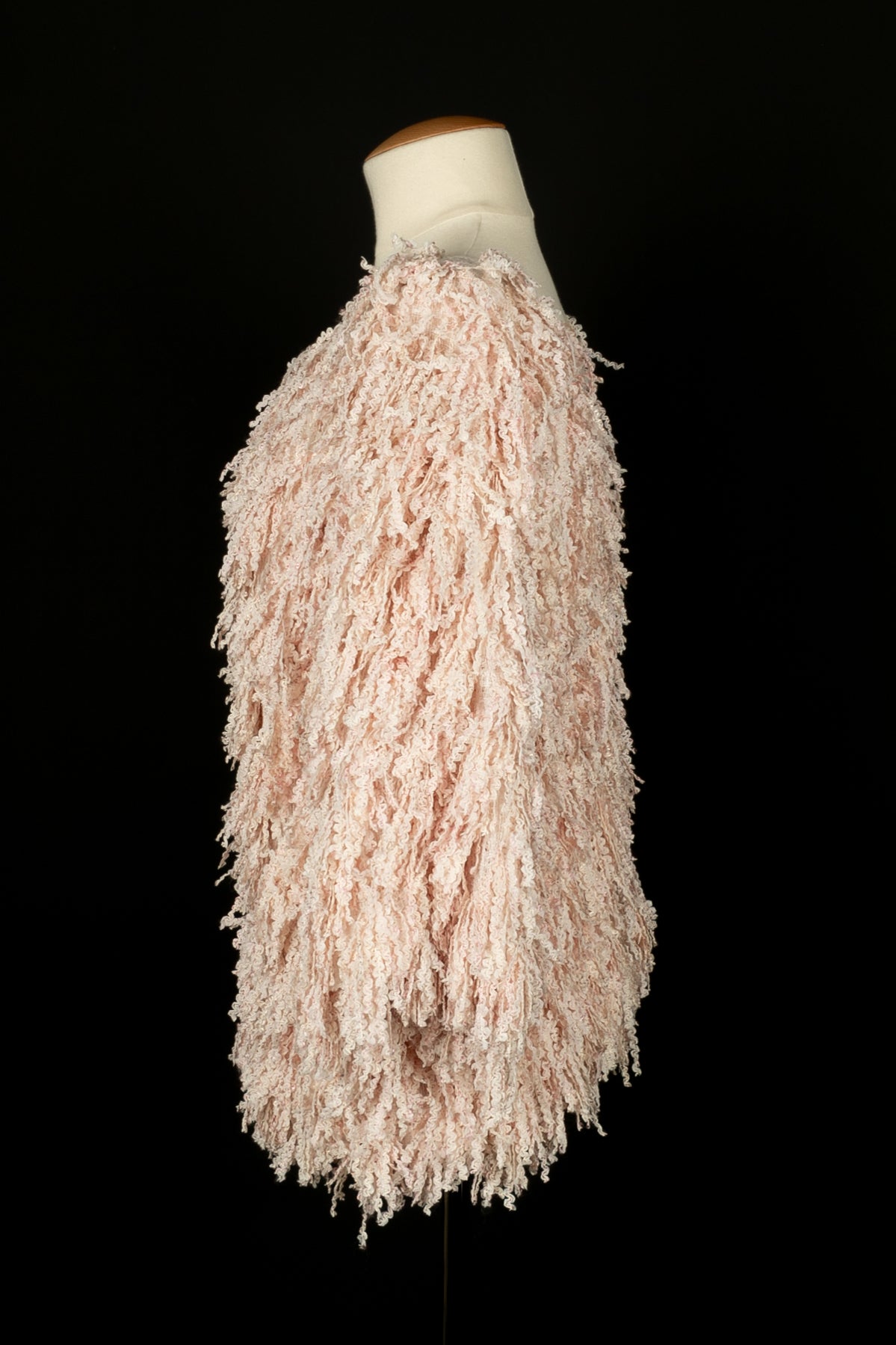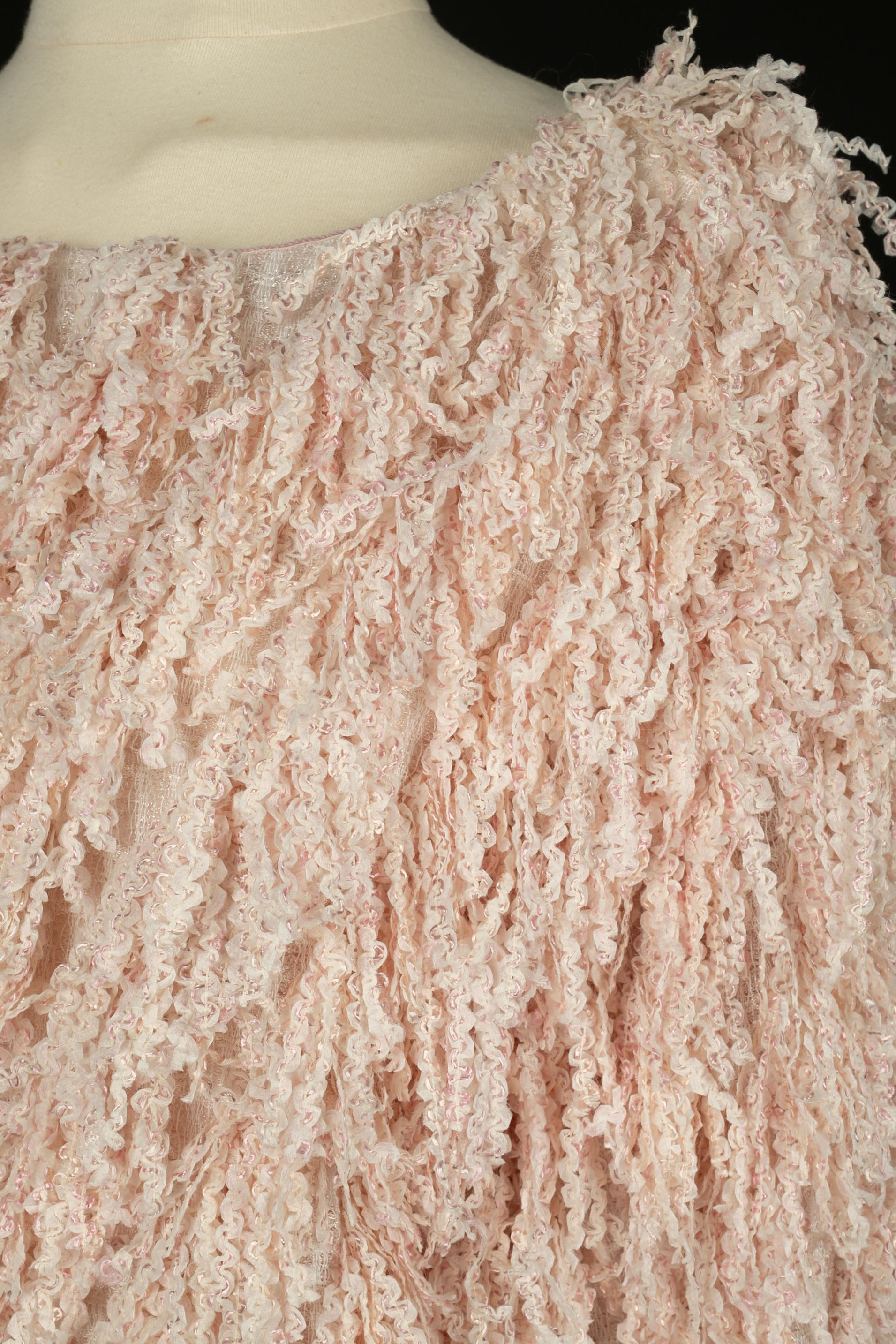 CHANEL -(Made in France) Pull rose à franges et manches mi-longues. Taille indiquée 40FR. Collection Printemps-Eté 2018, sous la direction artistique de Karl Lagerfeld.
