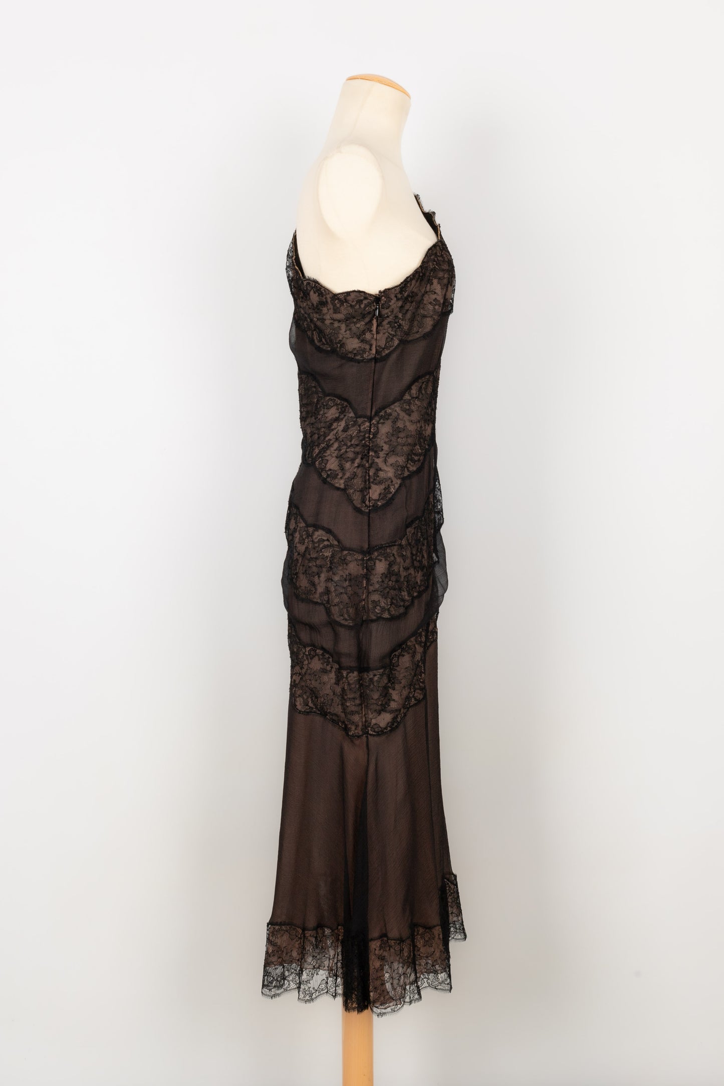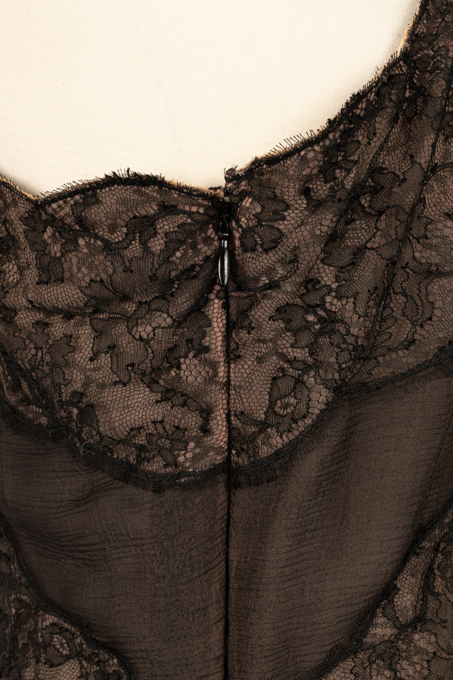 BALMAIN -Robe Haute Couture en crêpe de soie et dentelle noire transparente. Pas de taille indiquée, elle convient à un 40FR. Circa fin 90/ début 2000, sous la direction artistique de Oscar De La Renta.