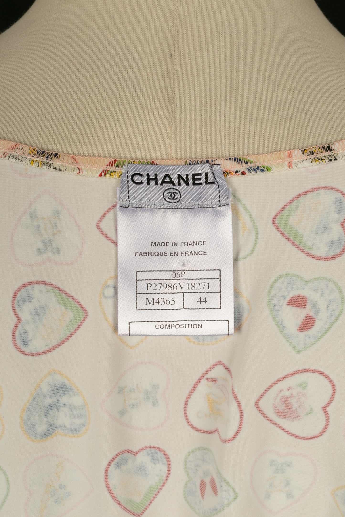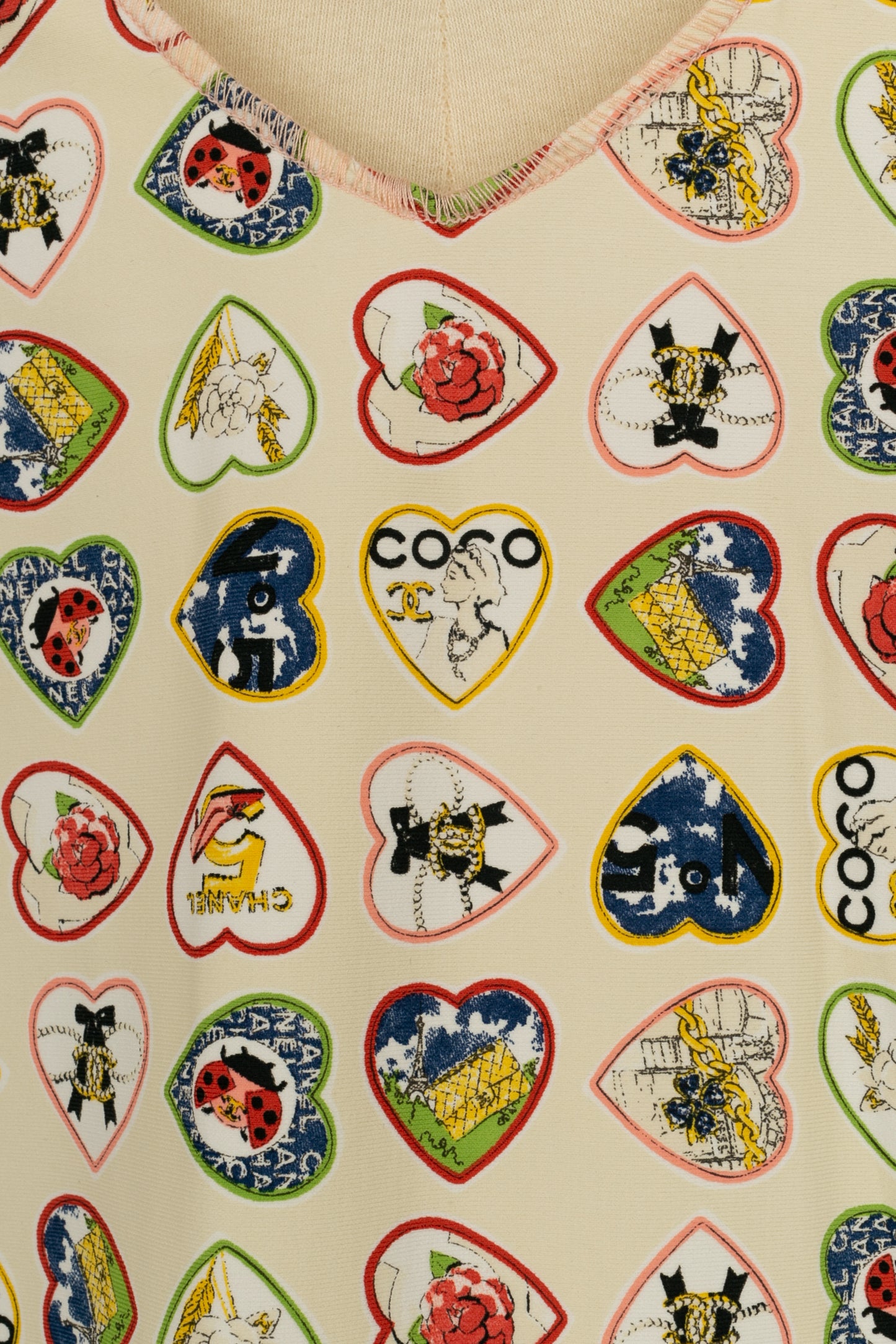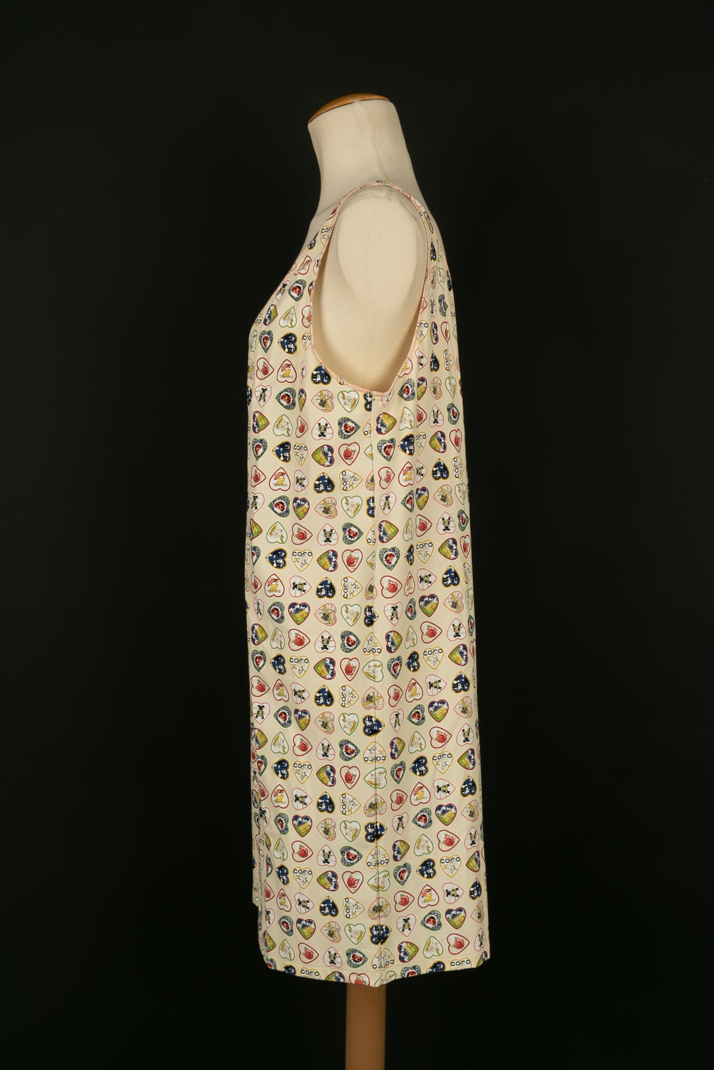 CHANEL -(Made in France) Robe courte imprimée de coeurs. Collection Printemps-Eté 2006. Taille 44FR.
