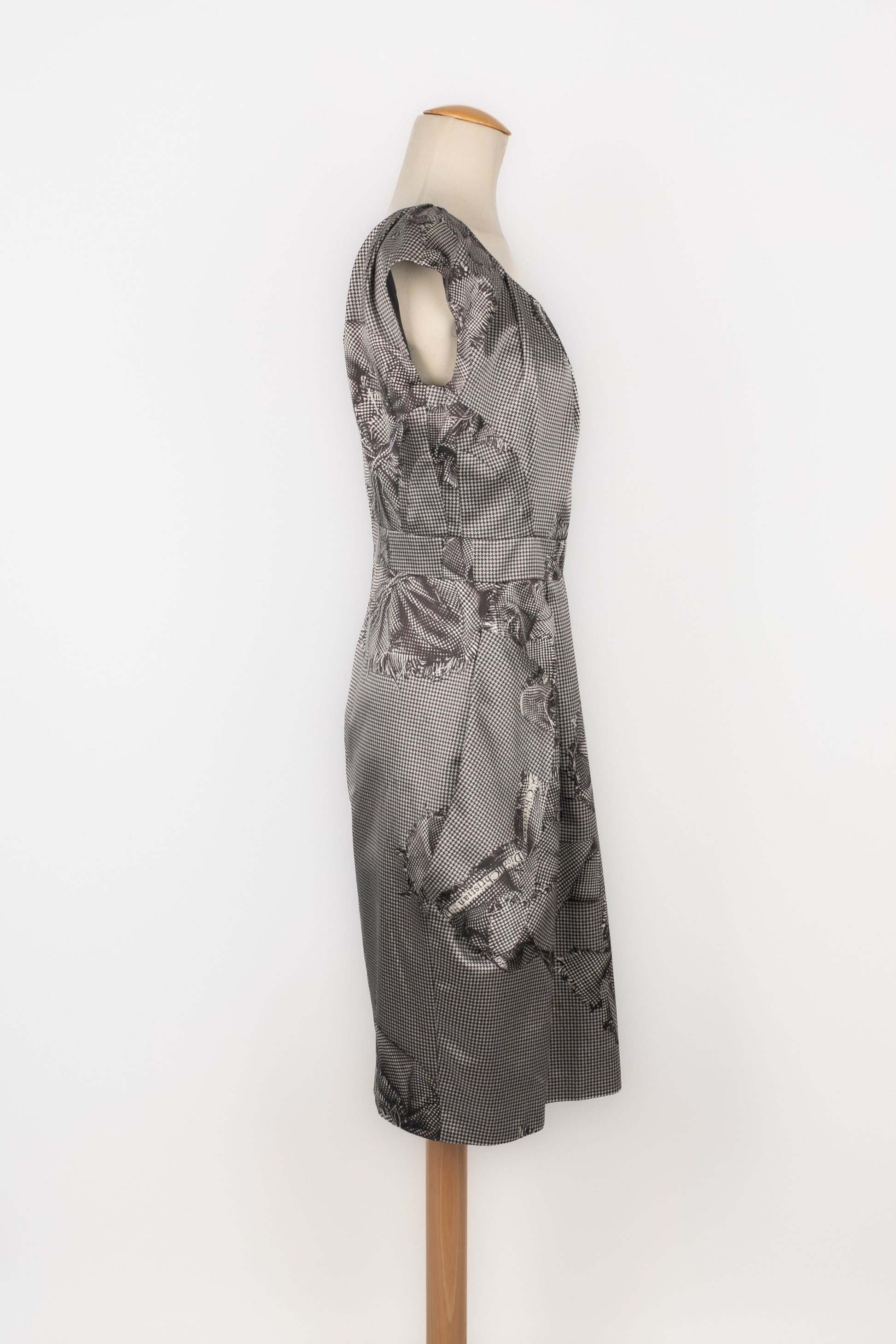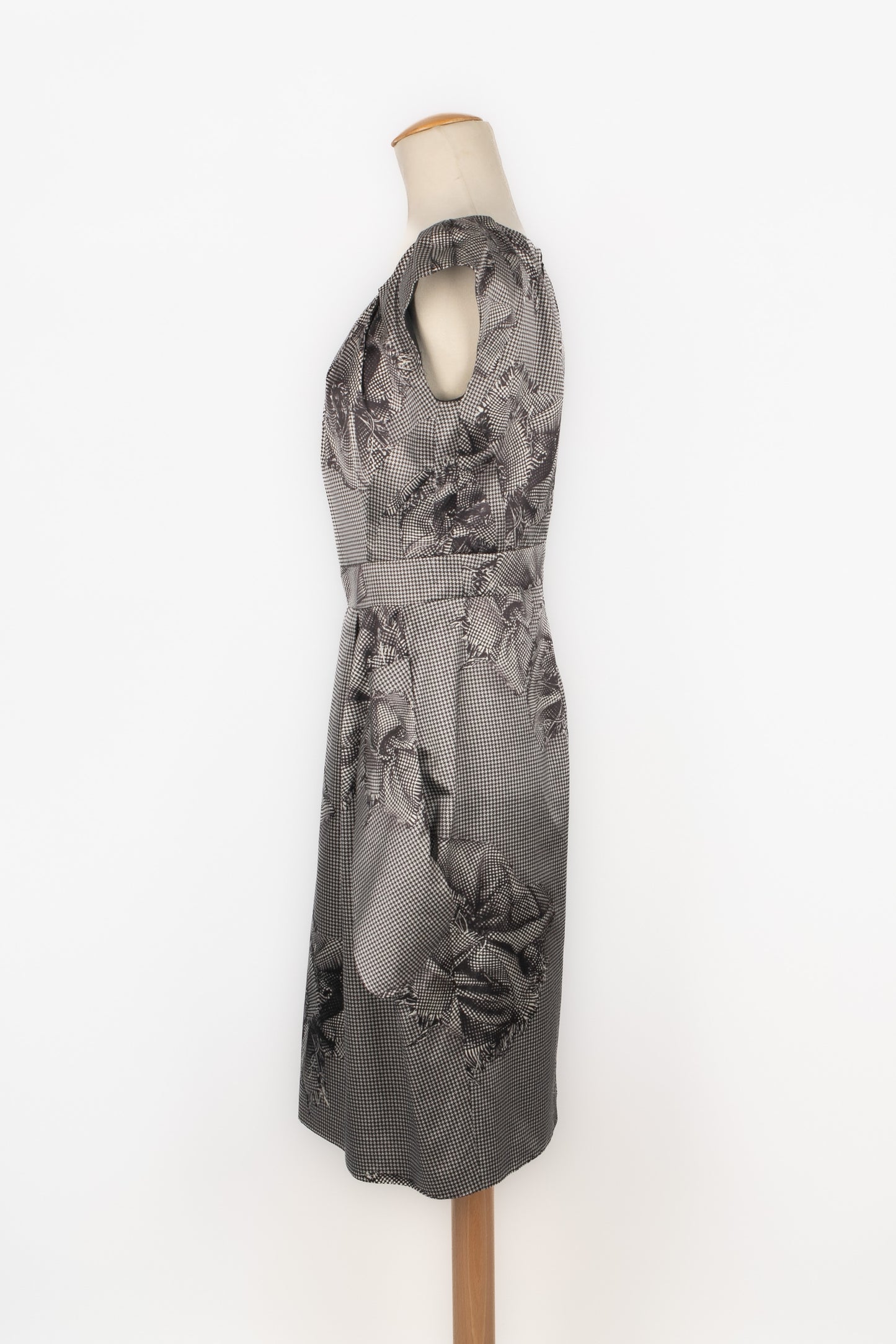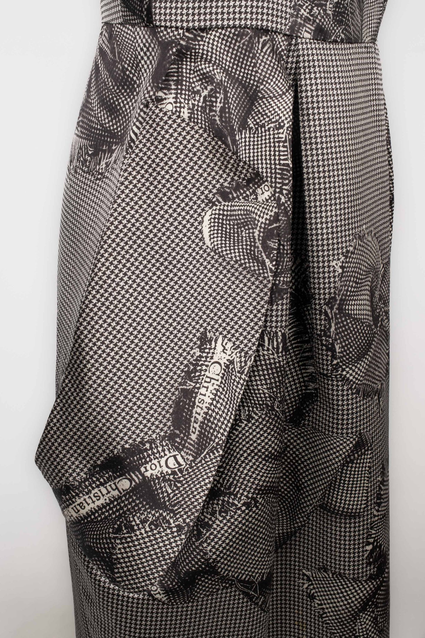DIOR -(Made in Italy) Robe en soie à motif dans les tons de blanc et de noir. Taille indiquée 38FR.