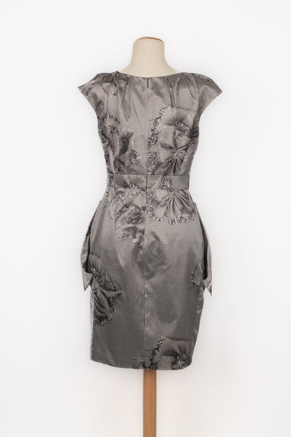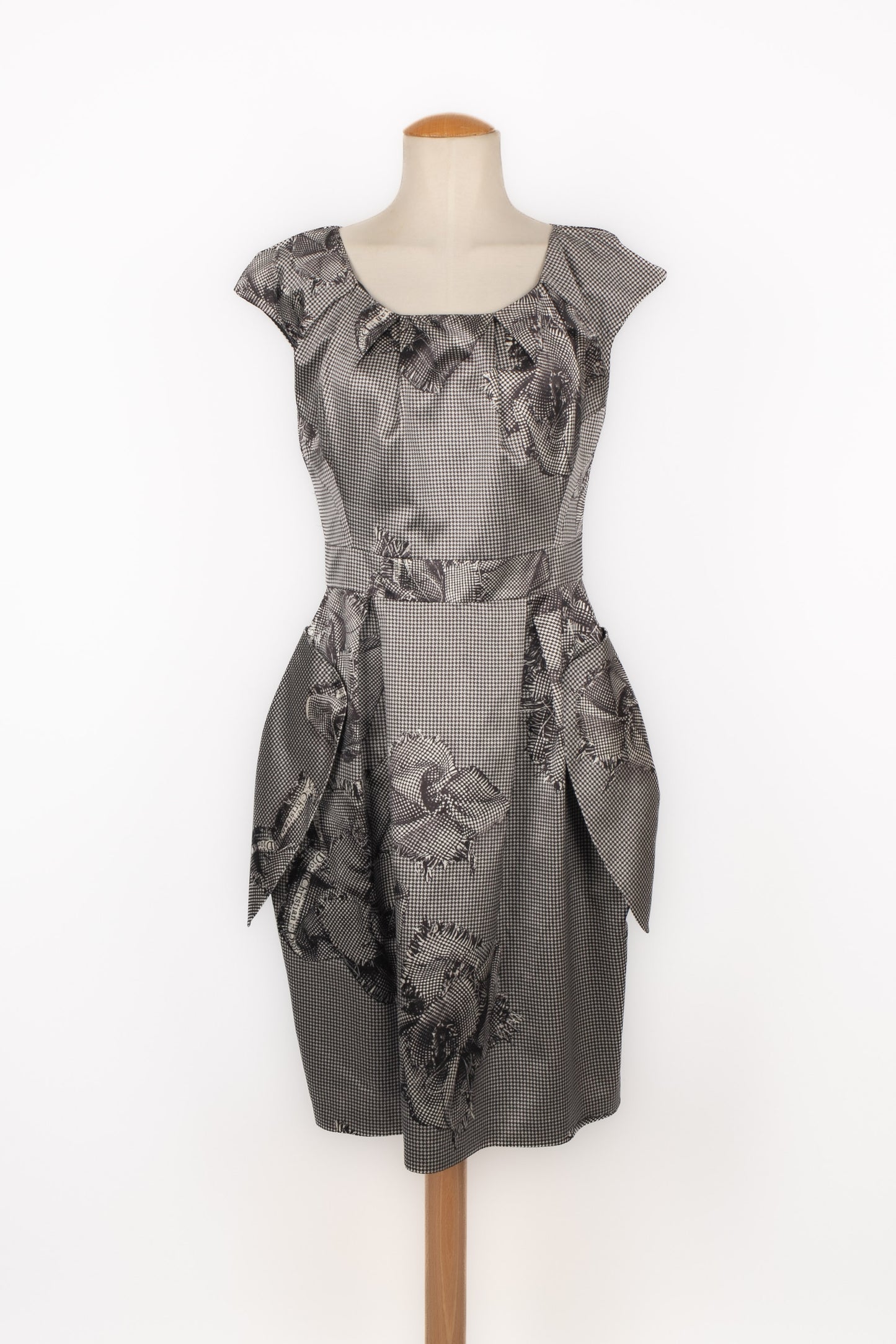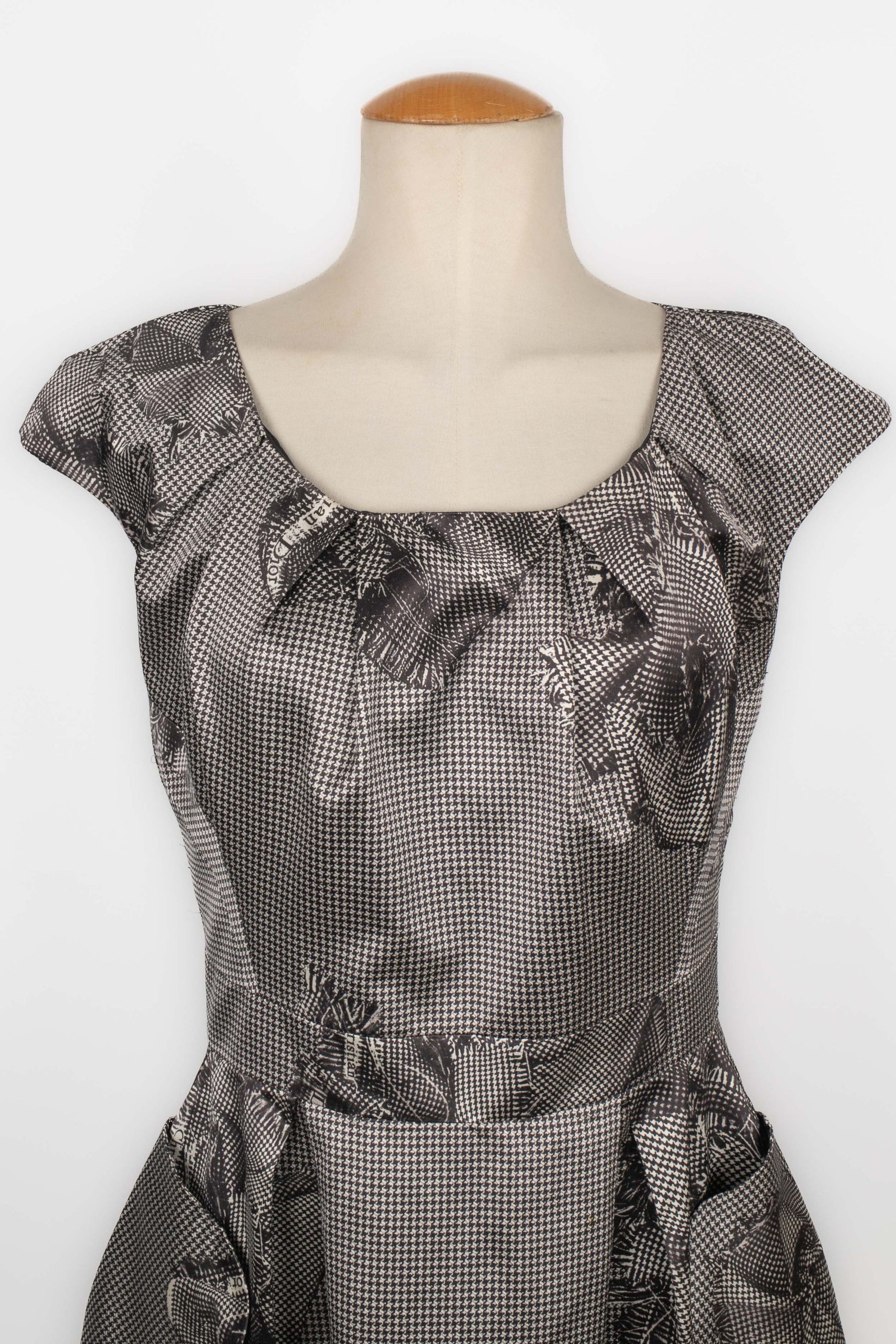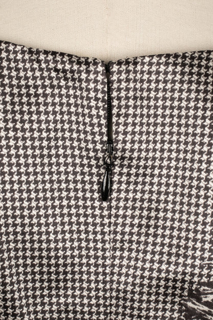 DIOR -(Made in Italy) Robe en soie à motif dans les tons de blanc et de noir. Taille indiquée 38FR.
