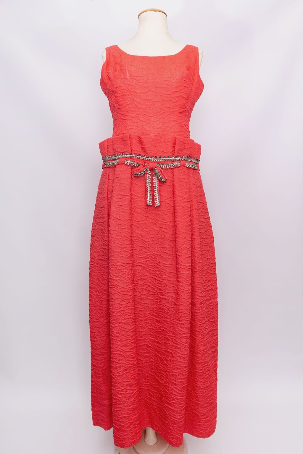 VALENS -Robe et son boléro en organza gaufré dans les tons de rose. Etiquettes de taille et de compositions absentes, elle correspond à une taille 40FR.