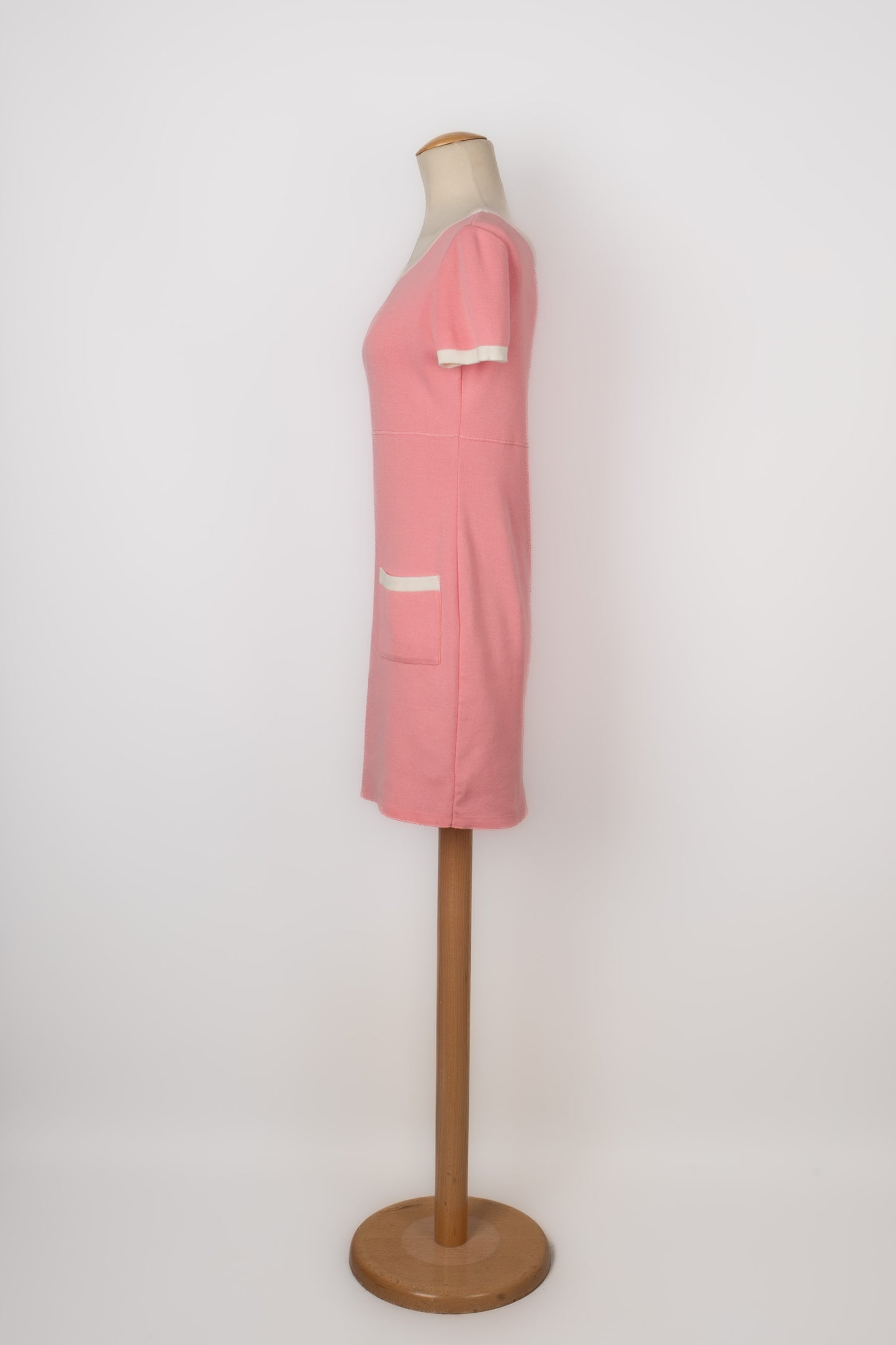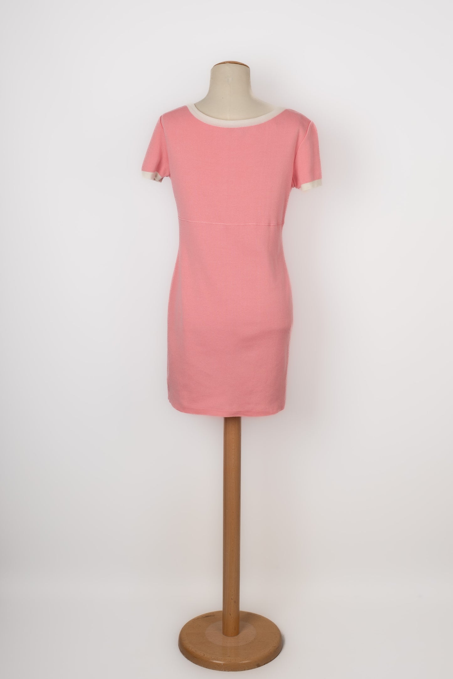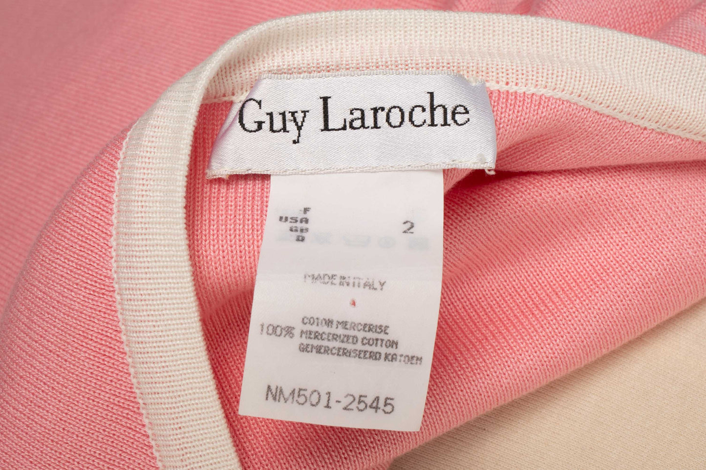 GUY LAROCHE -(Made in Italy) Robe en coton rose et blanc. Taille indiquée 2US, correspond à un 34FR, convient à un 36FR/38FR.