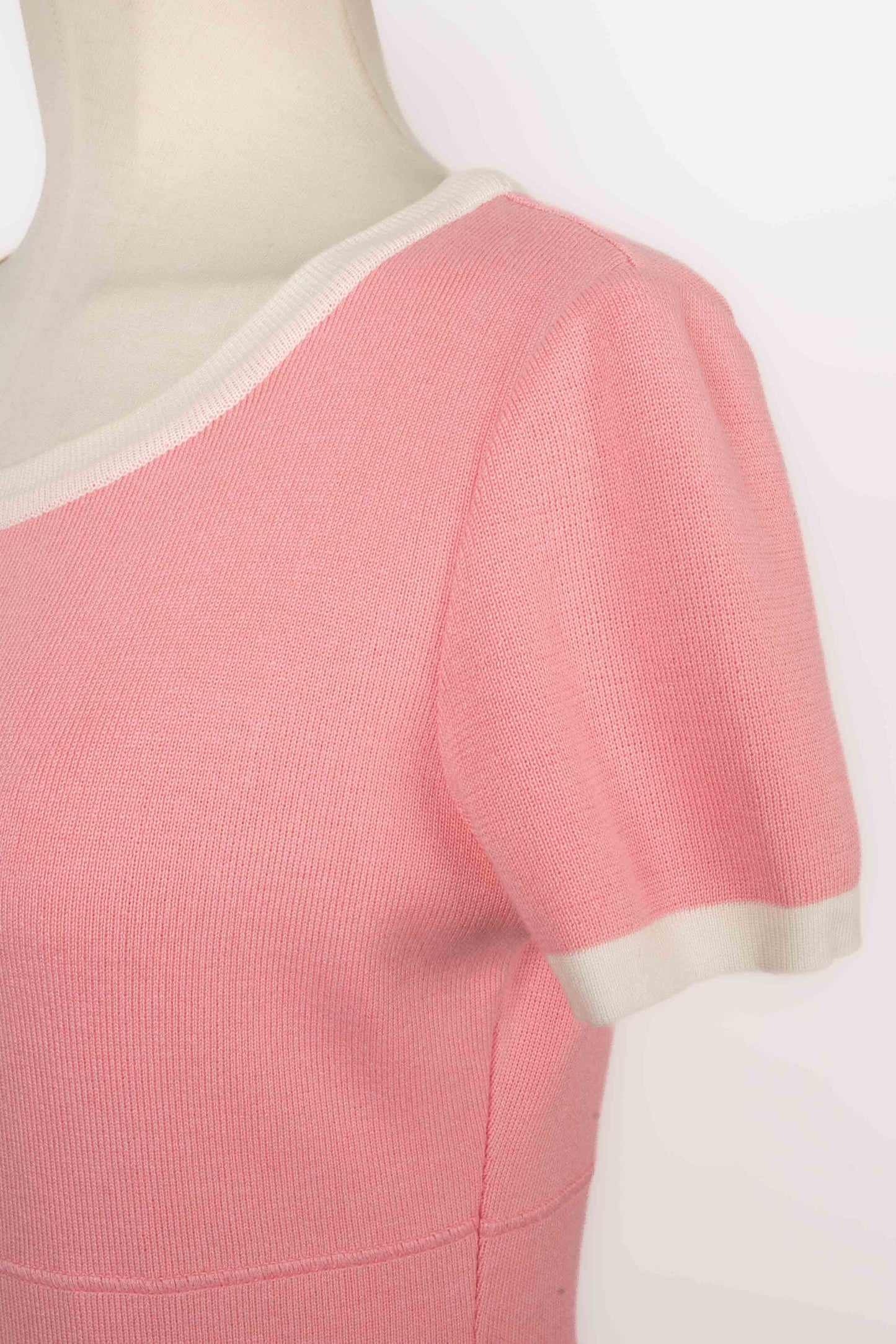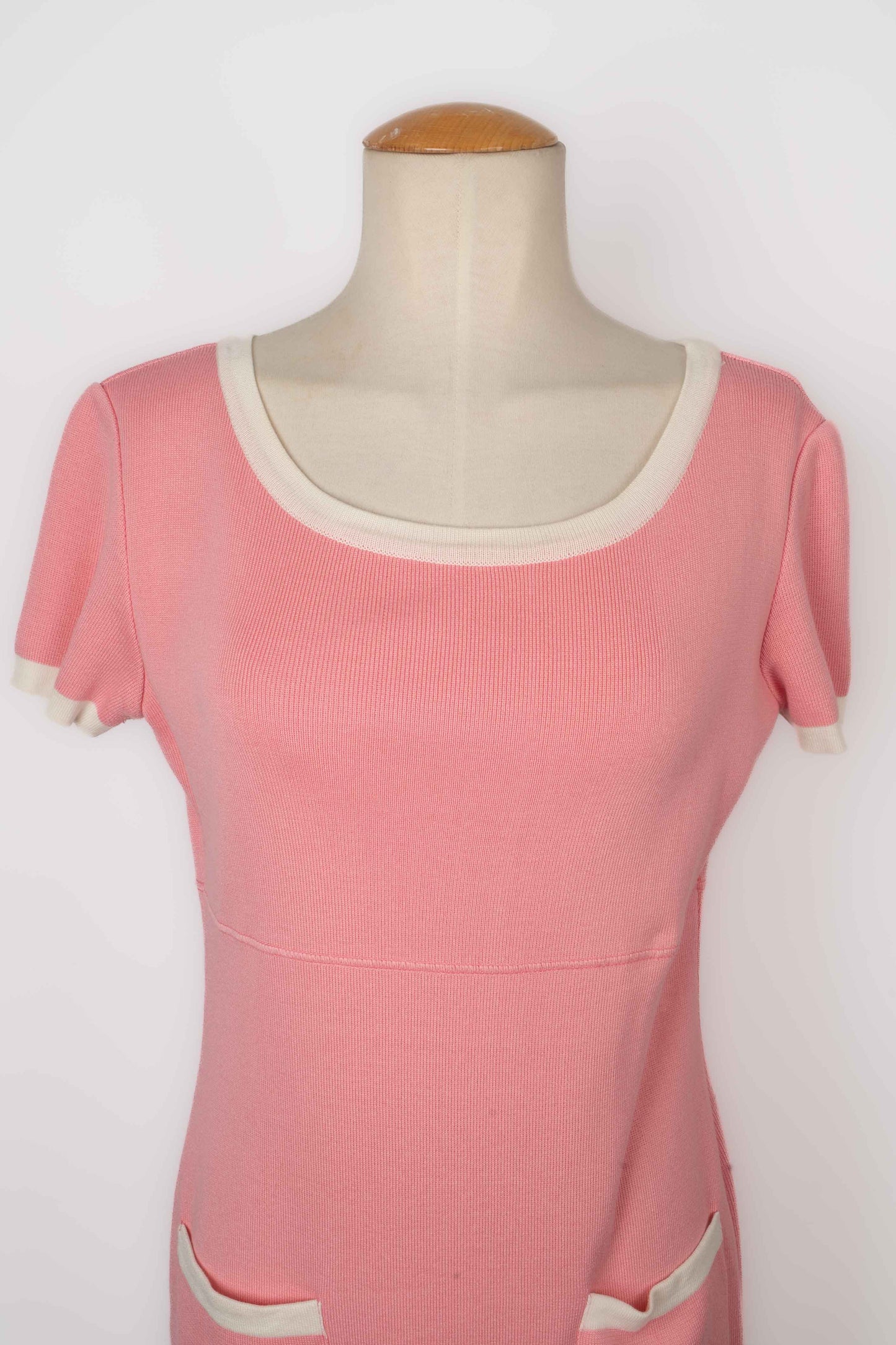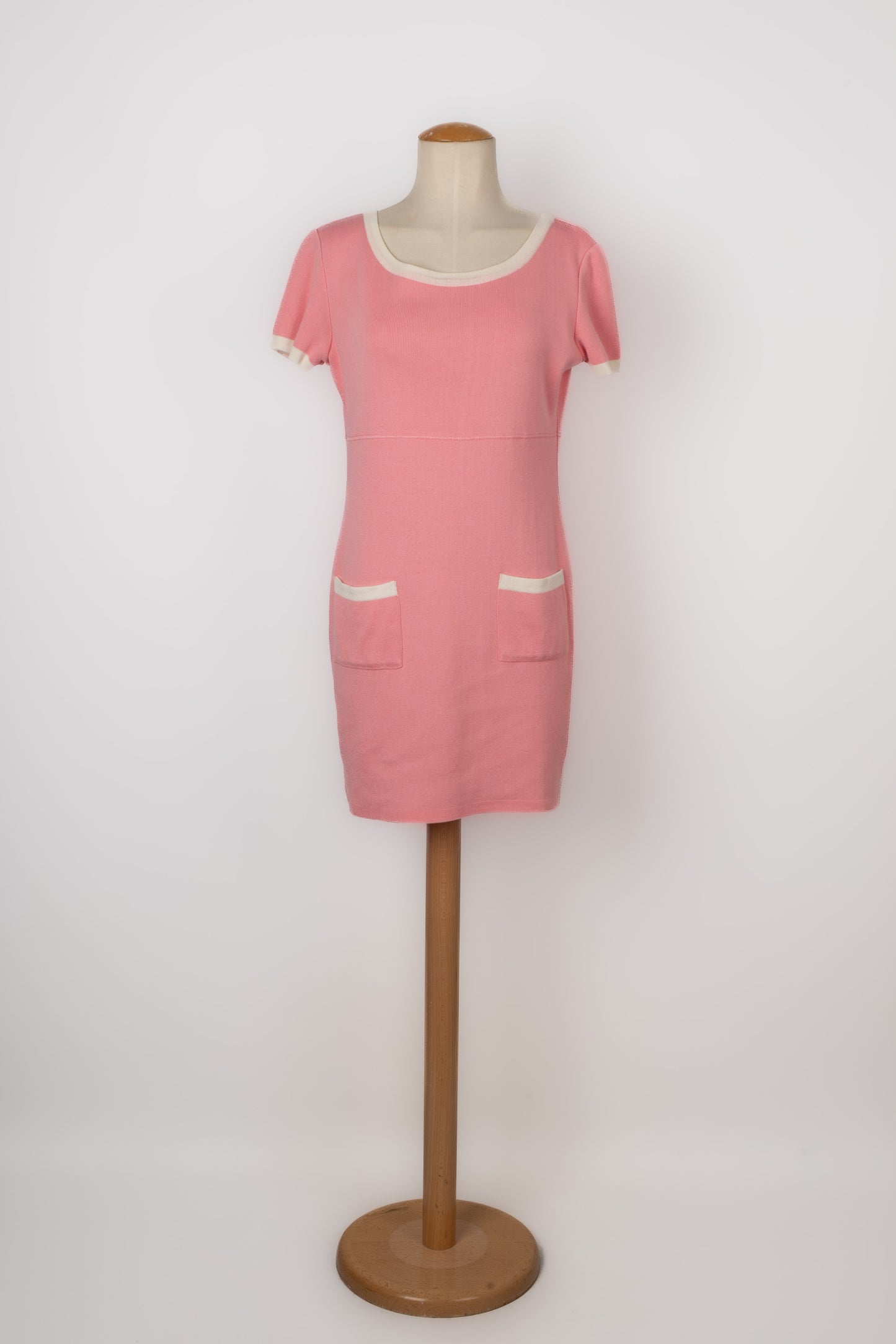 GUY LAROCHE -(Made in Italy) Robe en coton rose et blanc. Taille indiquée 2US, correspond à un 34FR, convient à un 36FR/38FR.