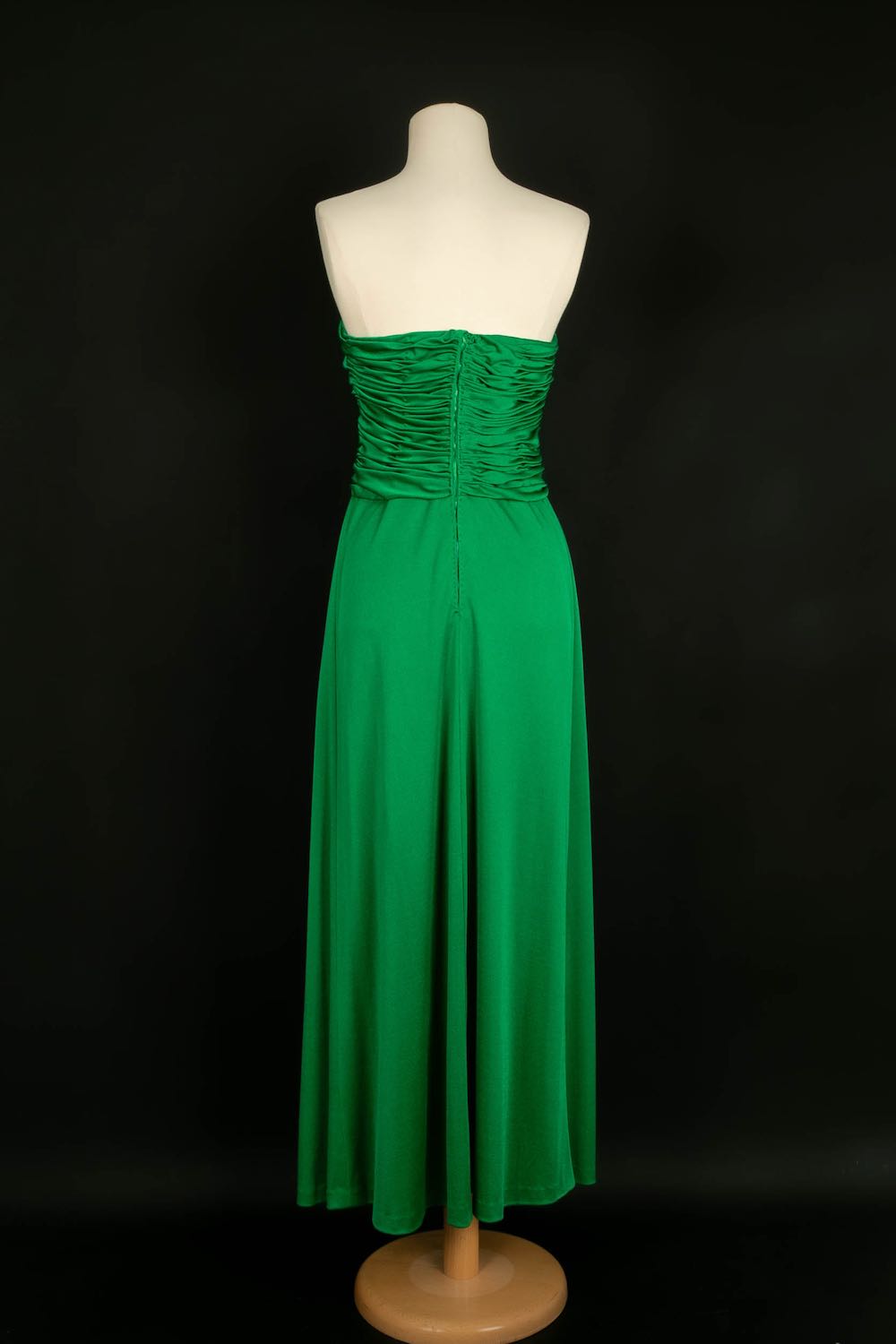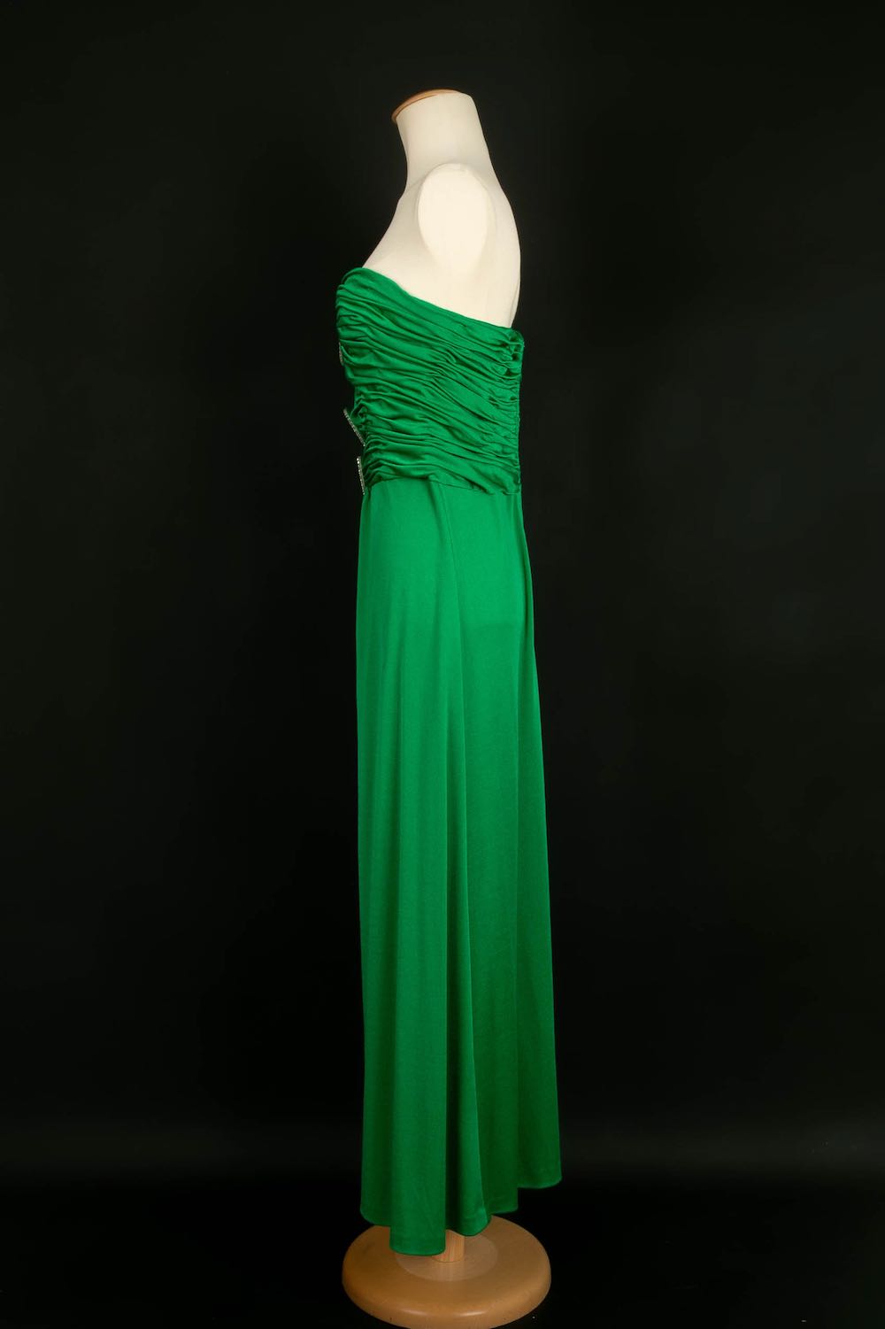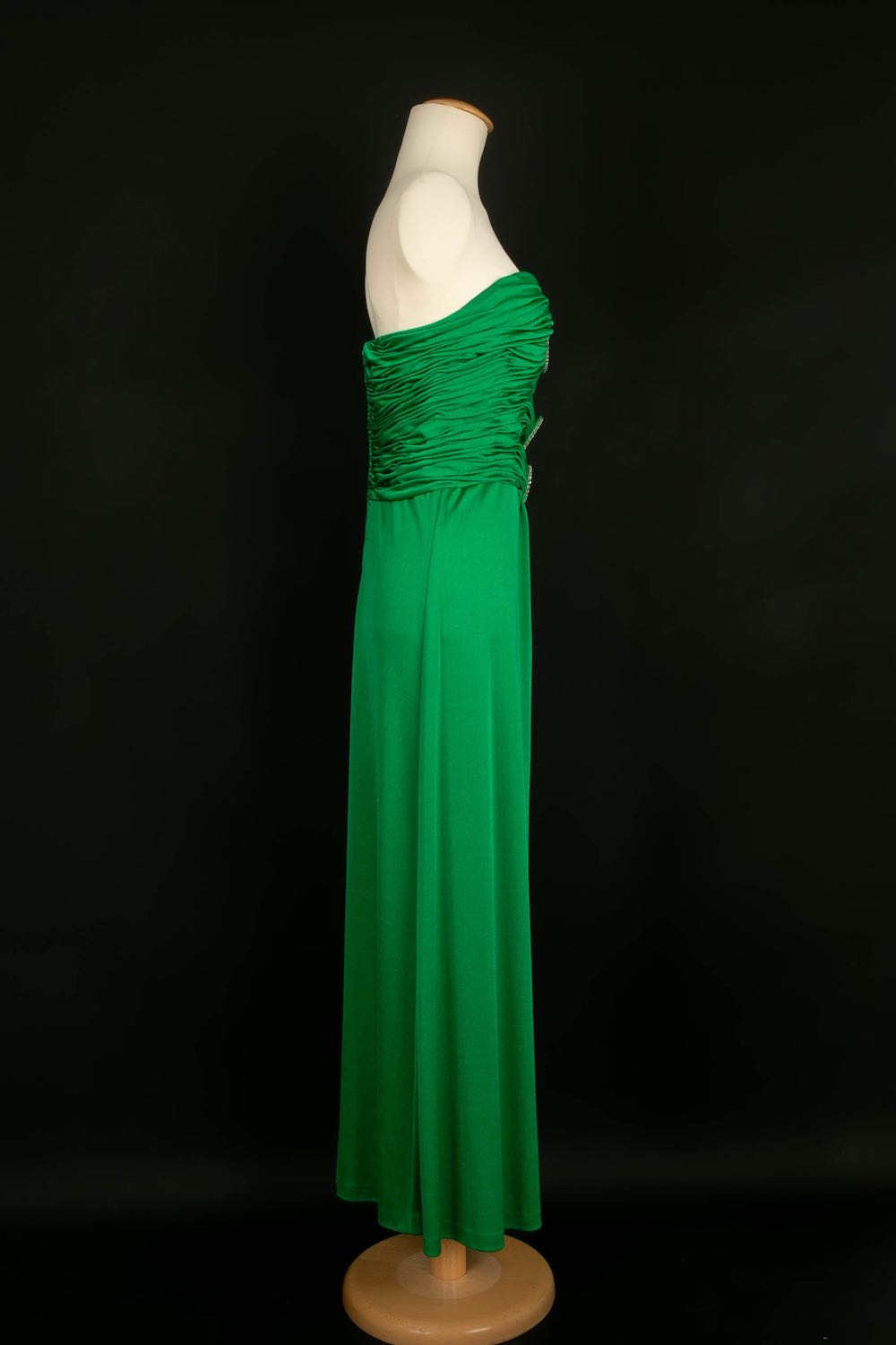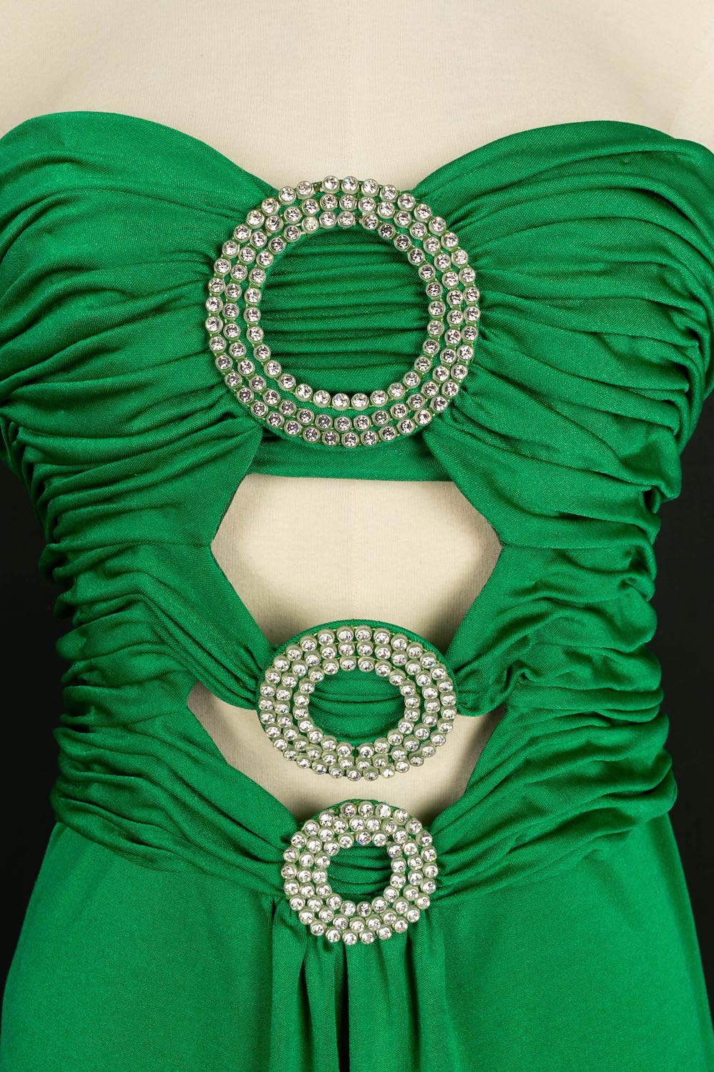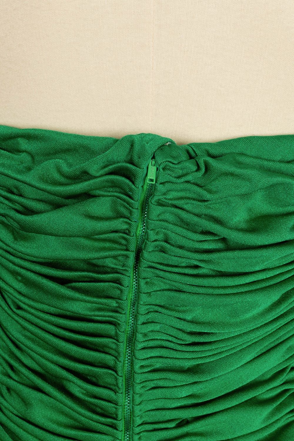 AZZARO -(Made in France) Robe verte en viscose et strass. Aucune taille indiquée, elle convient à un 34FR/36FR. Taille de poitrine indiquée 80/95B.