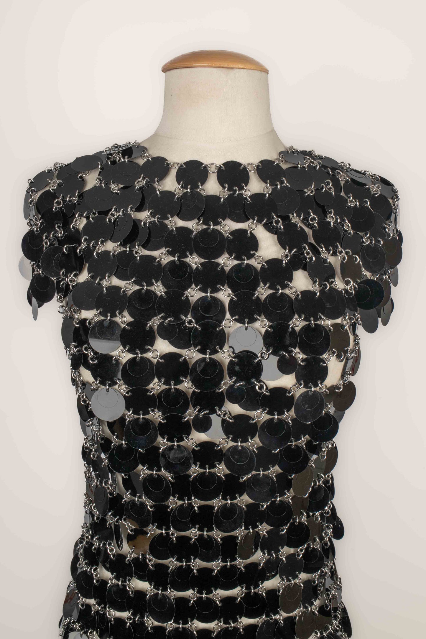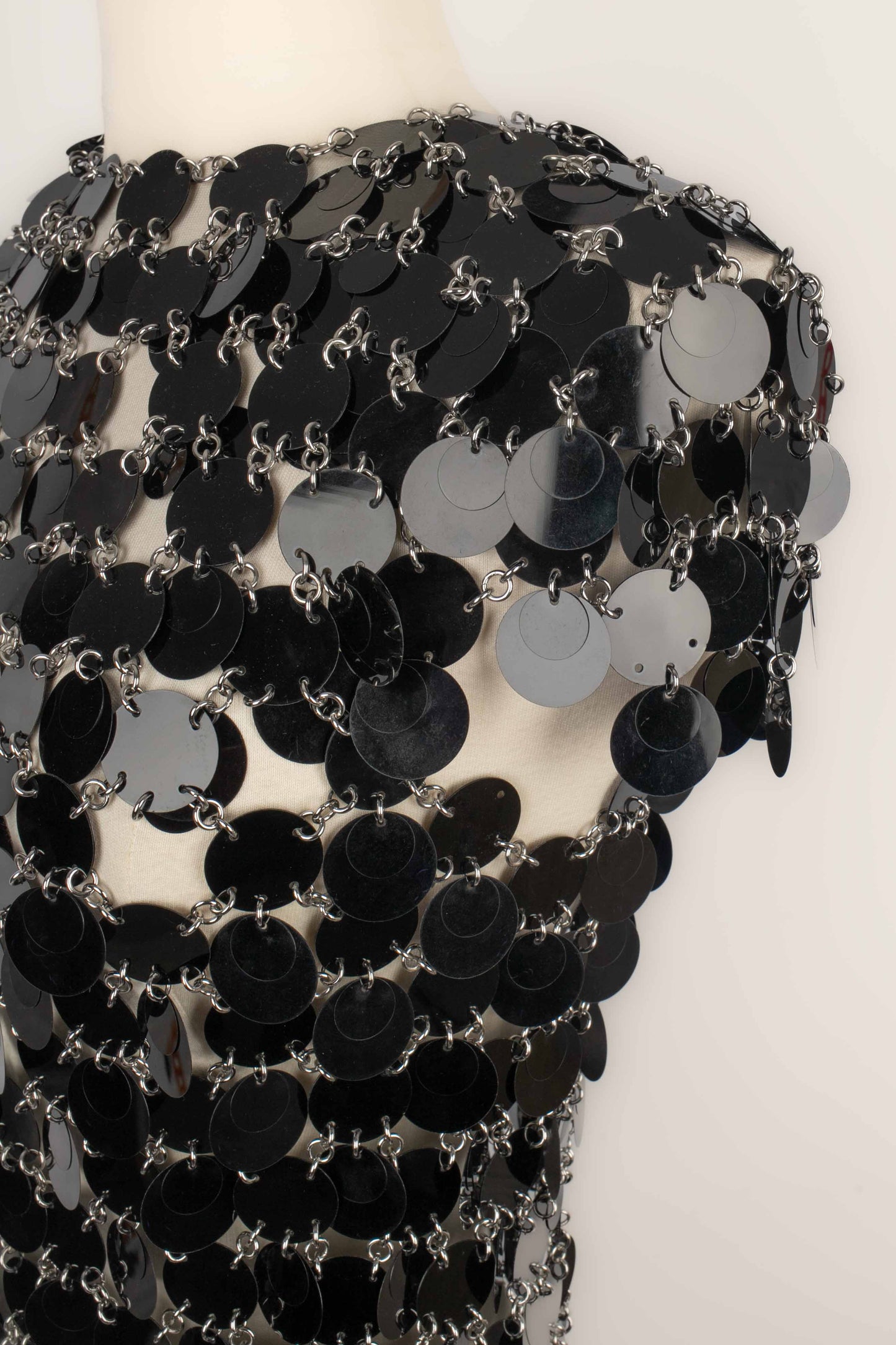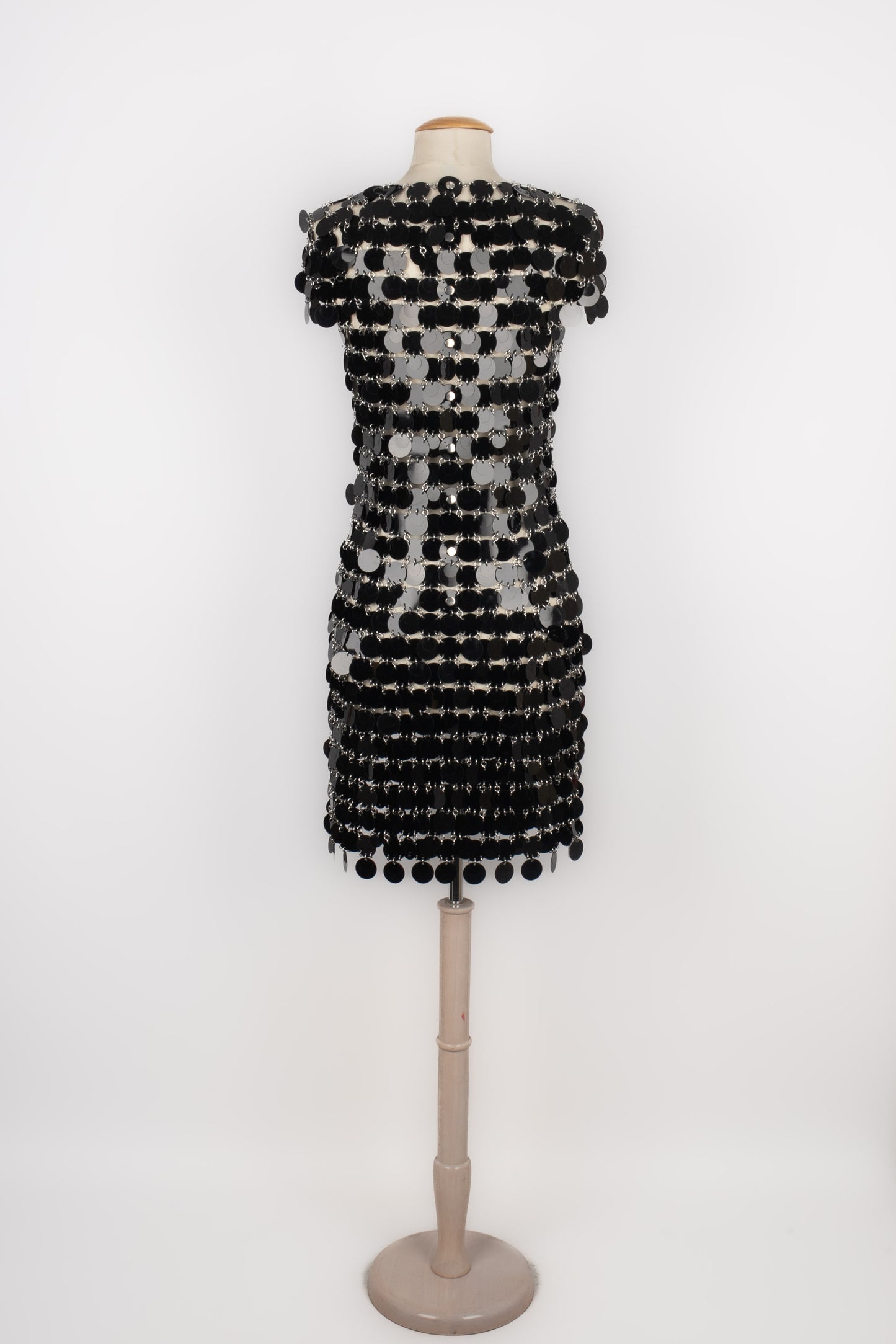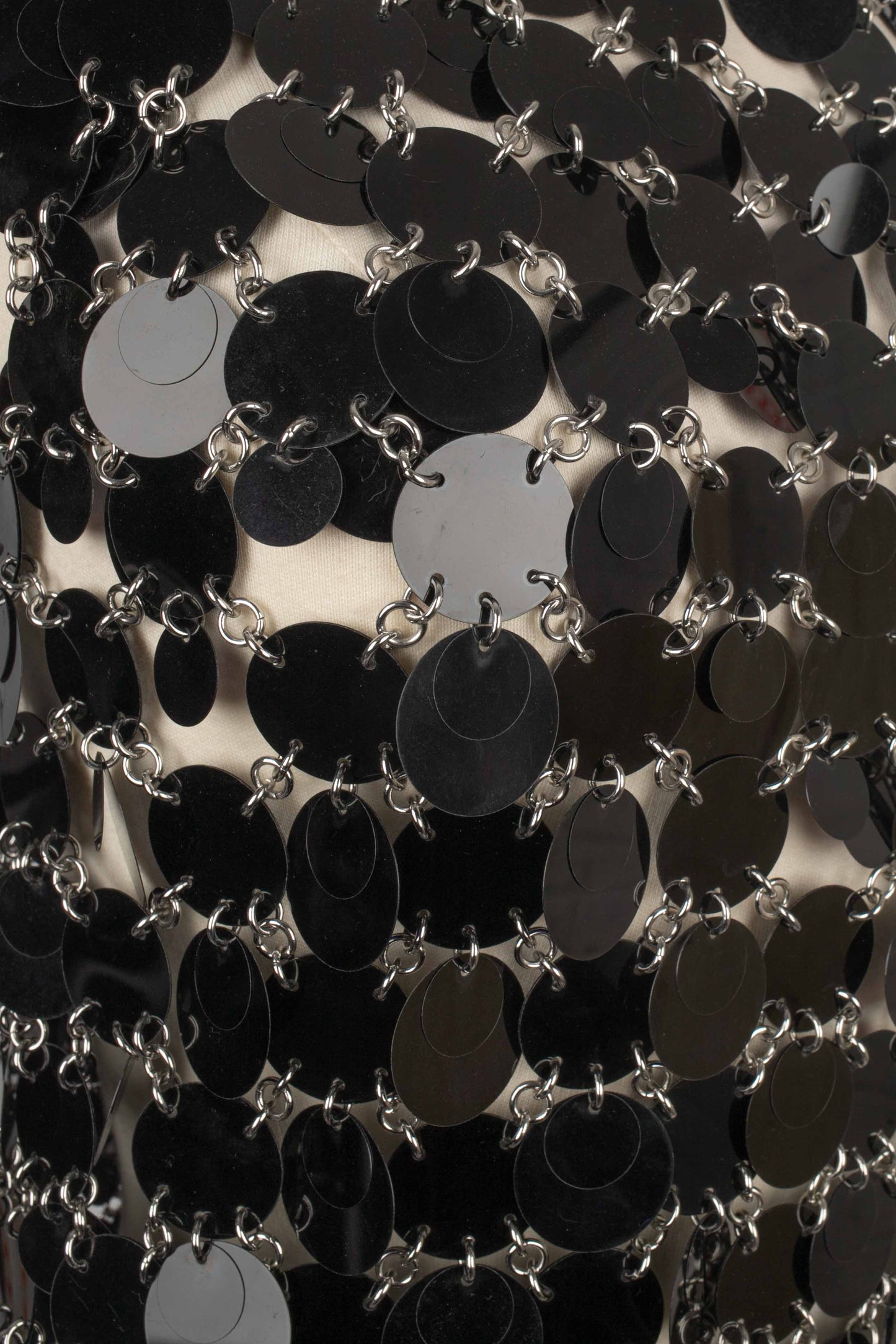 PACO RABANNE -Robe en pastilles en celluloïds noires retenues par des anneaux métalliques argentés. Pas de taille indiquée, elle convient à un 34FR/36FR.