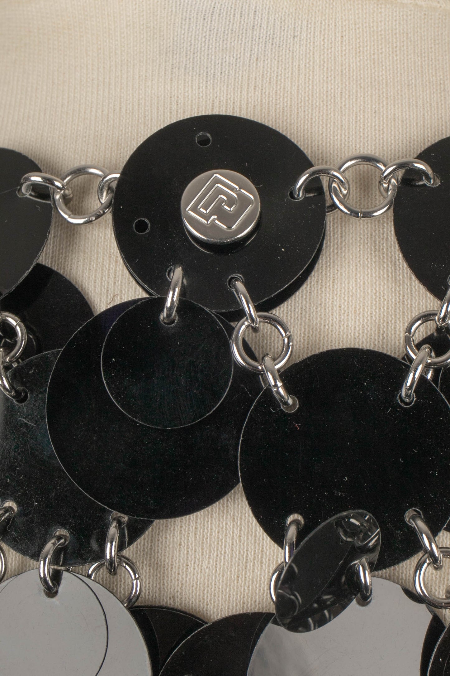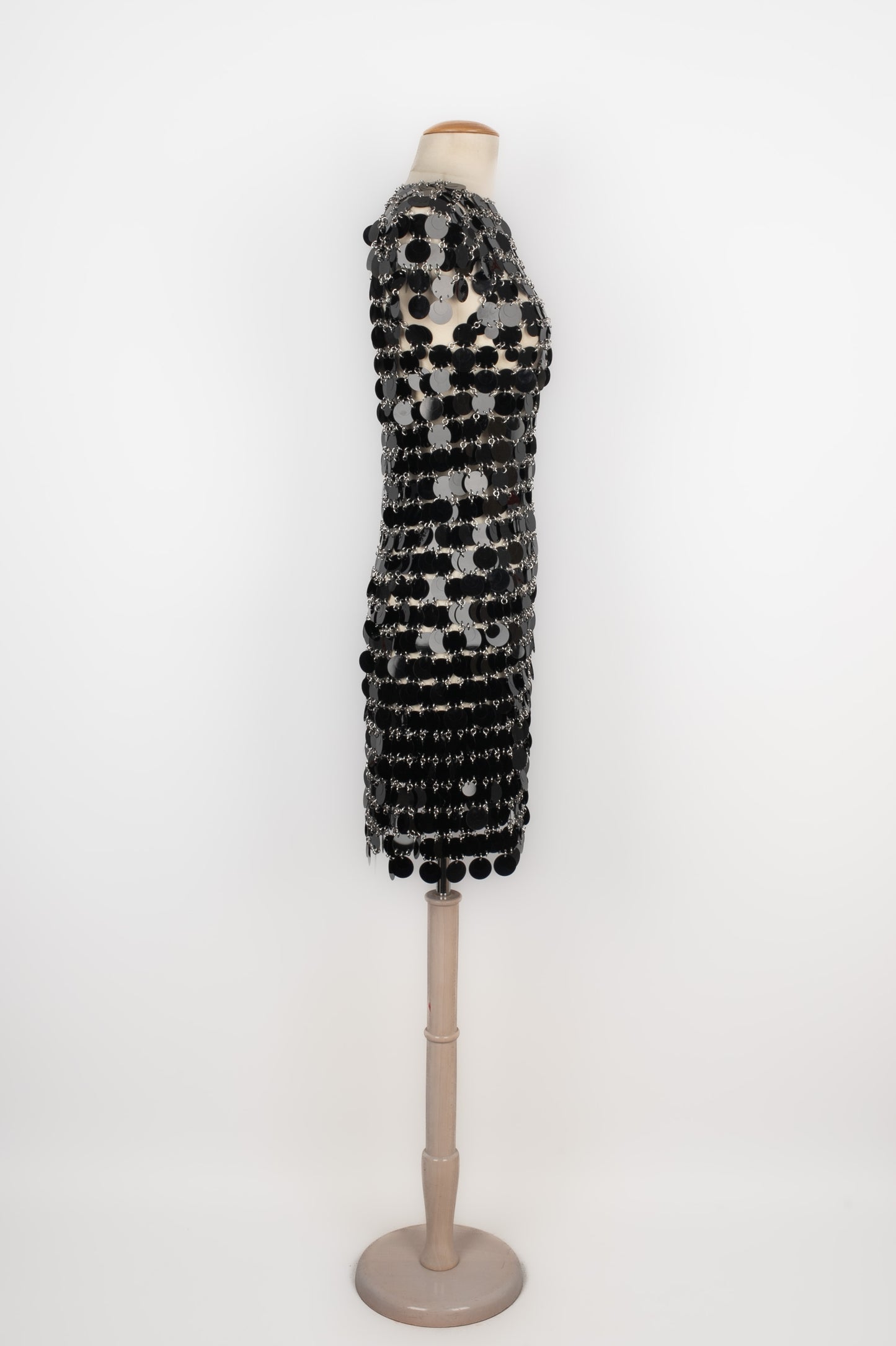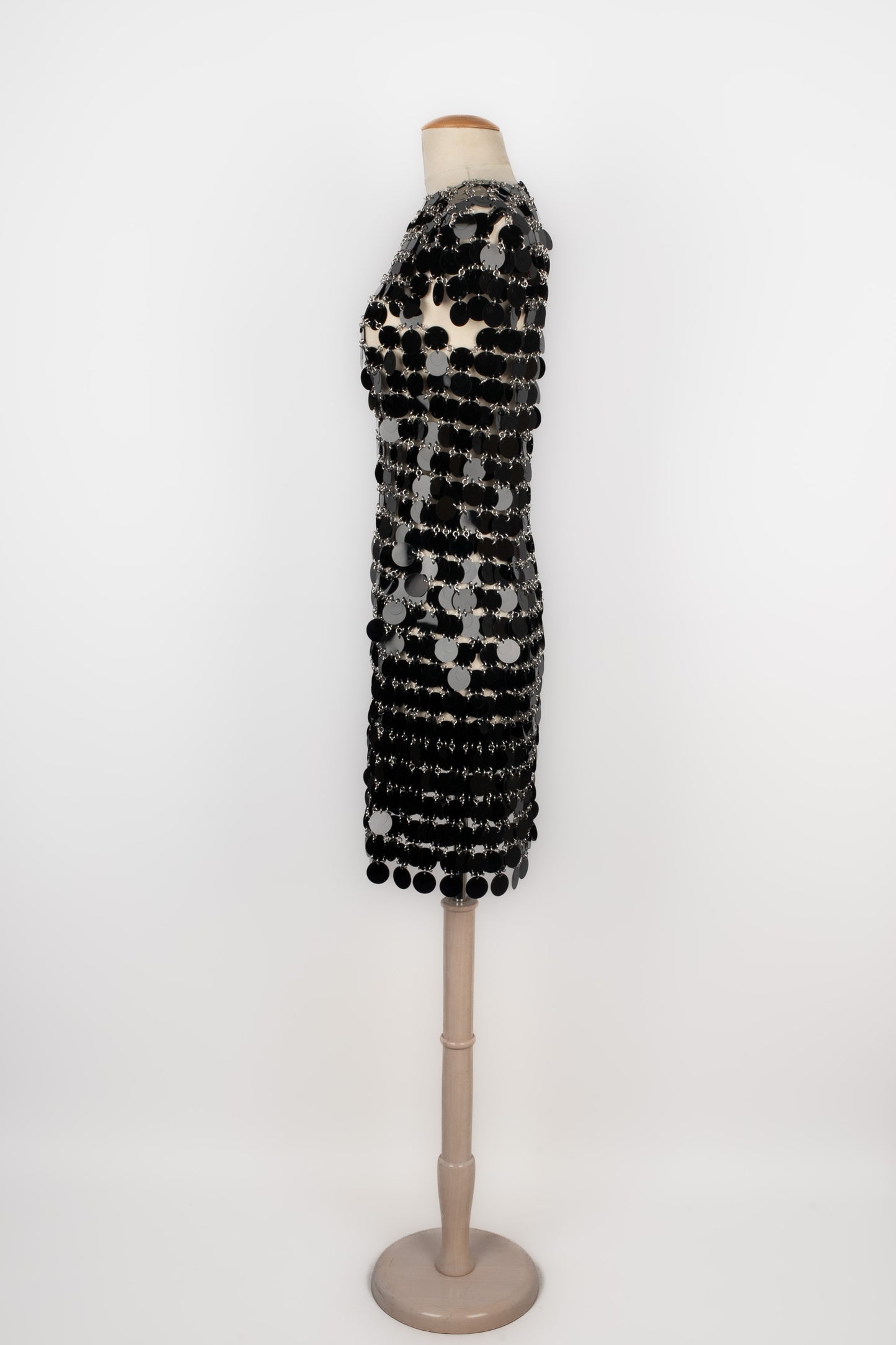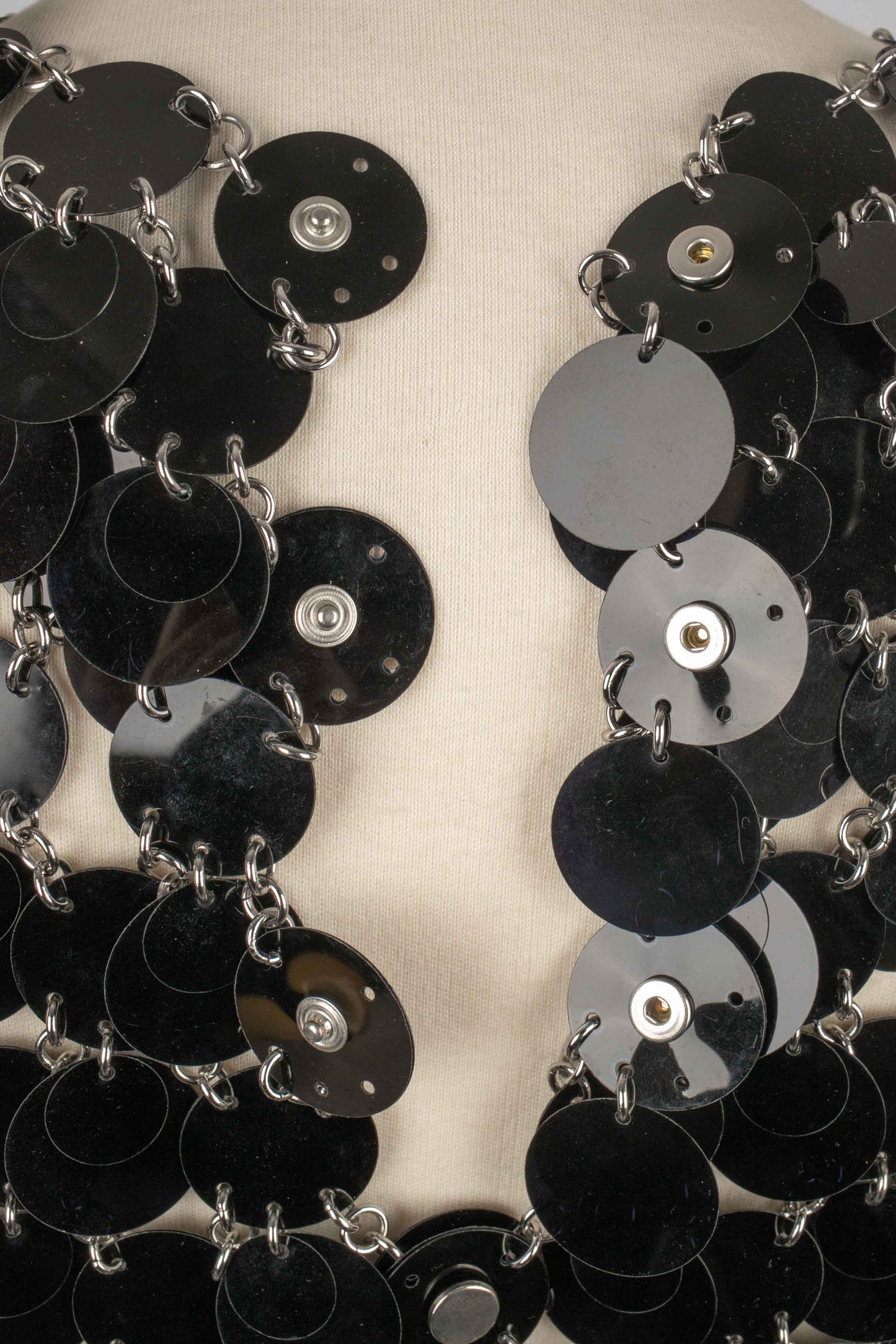 PACO RABANNE -Robe en pastilles en celluloïds noires retenues par des anneaux métalliques argentés. Pas de taille indiquée, elle convient à un 34FR/36FR.