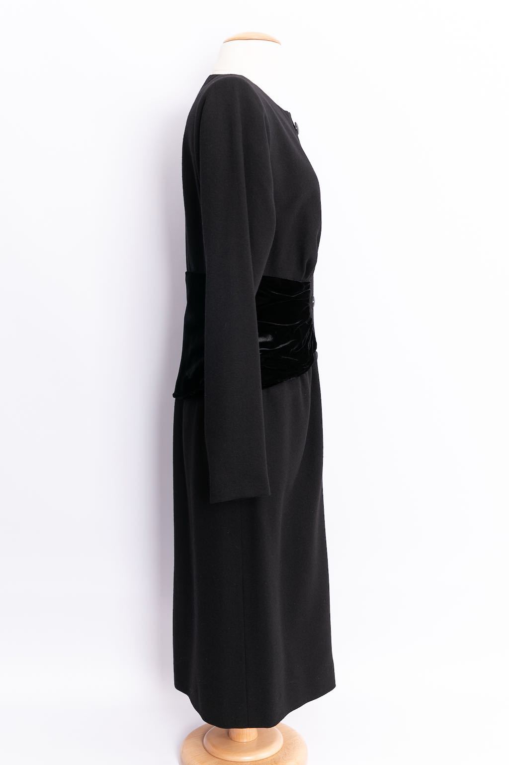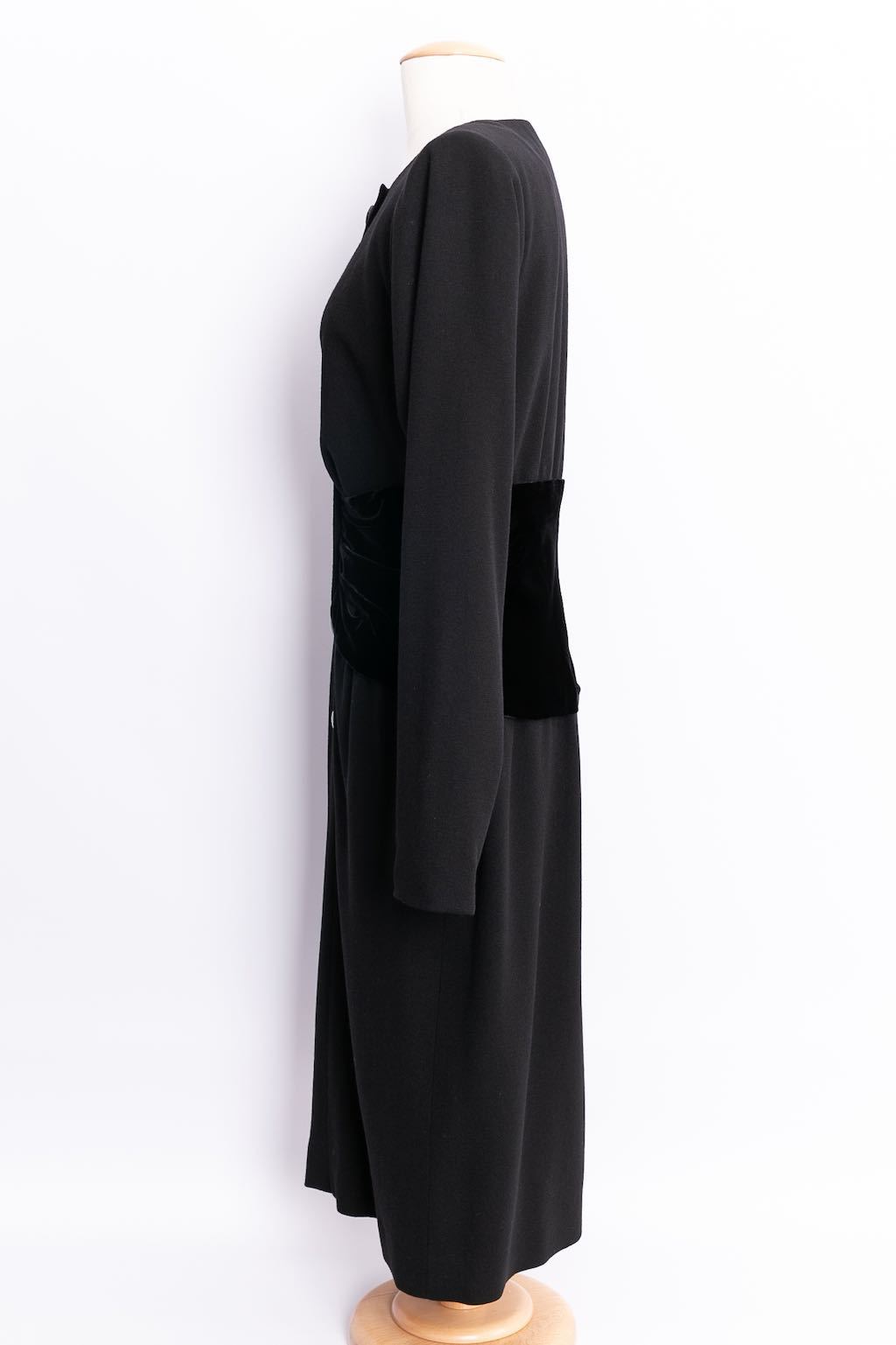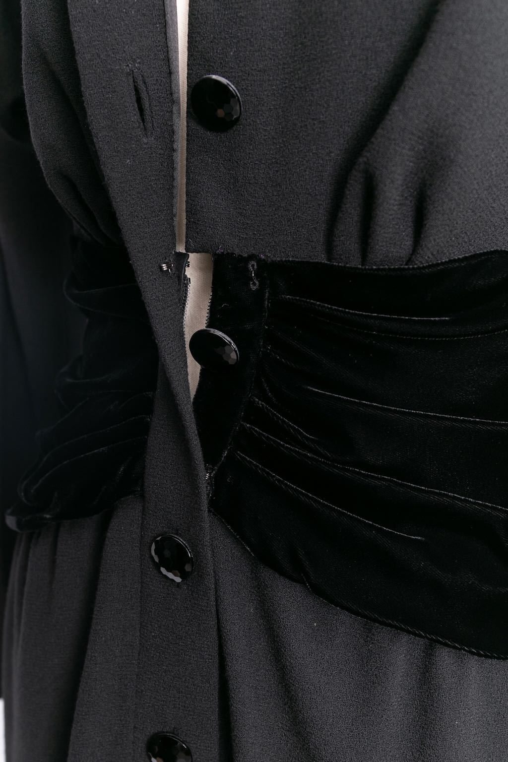 YVES SAINT LAURENT -(Bolduc 075023) Robe en étamine de laine et velours se boutonnant à l'avant. Aucune étiquette de taille ou de composition, elle correspond à une taille 36FR. Collection Haute Couture Hiver 1990