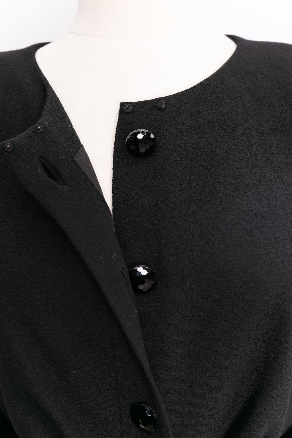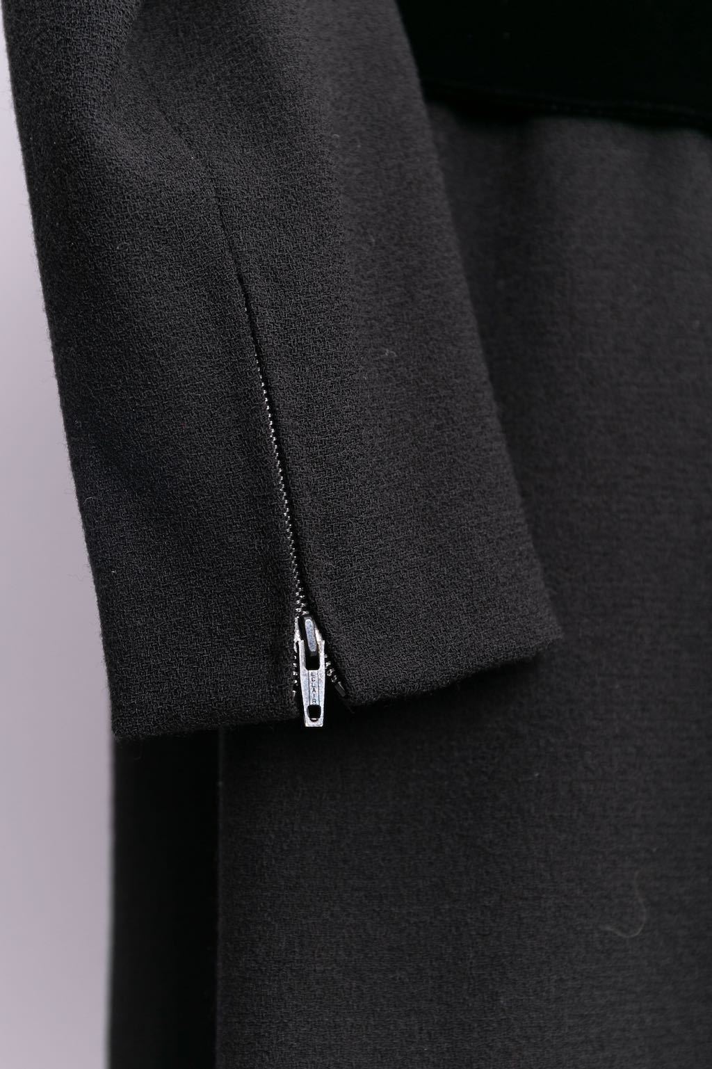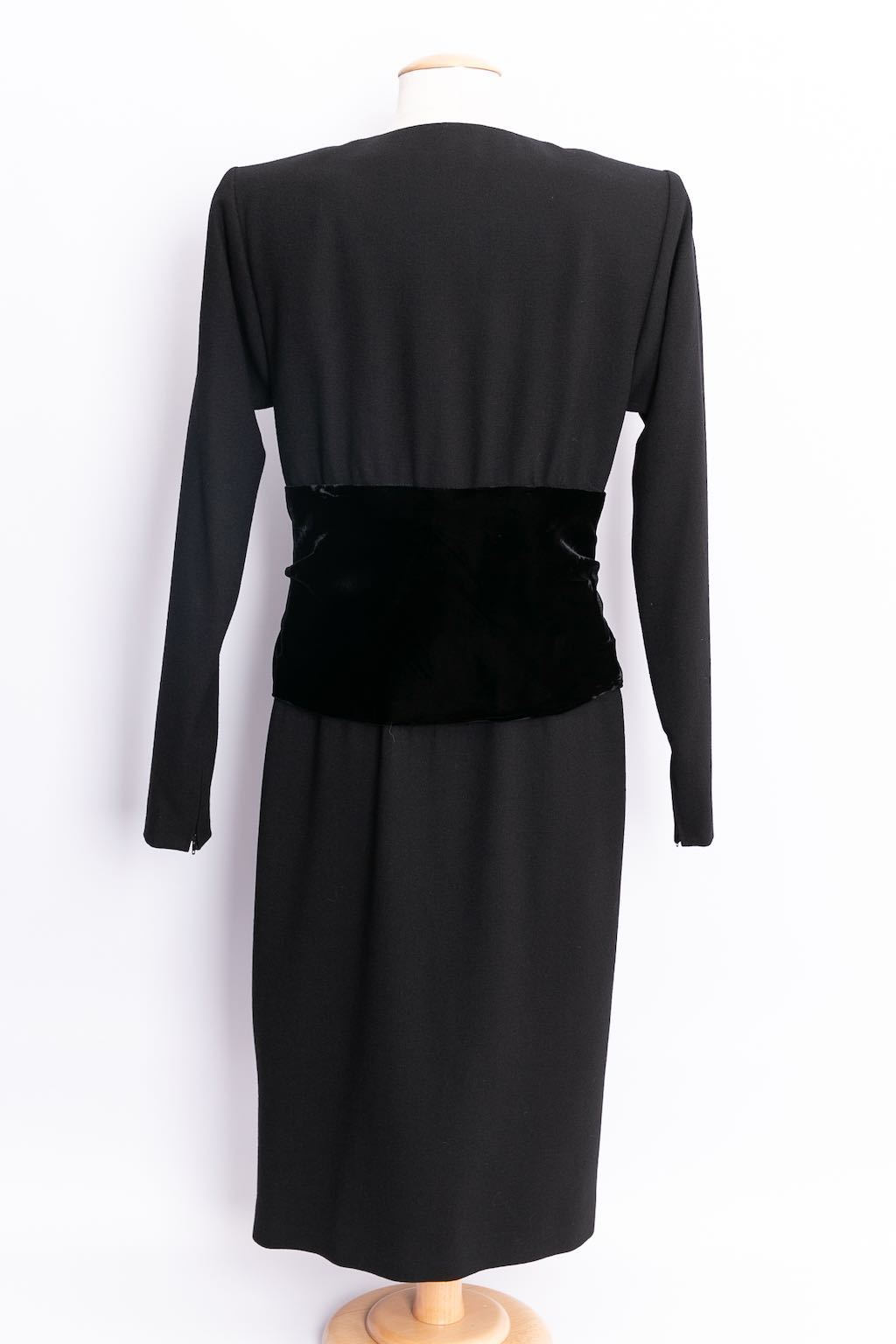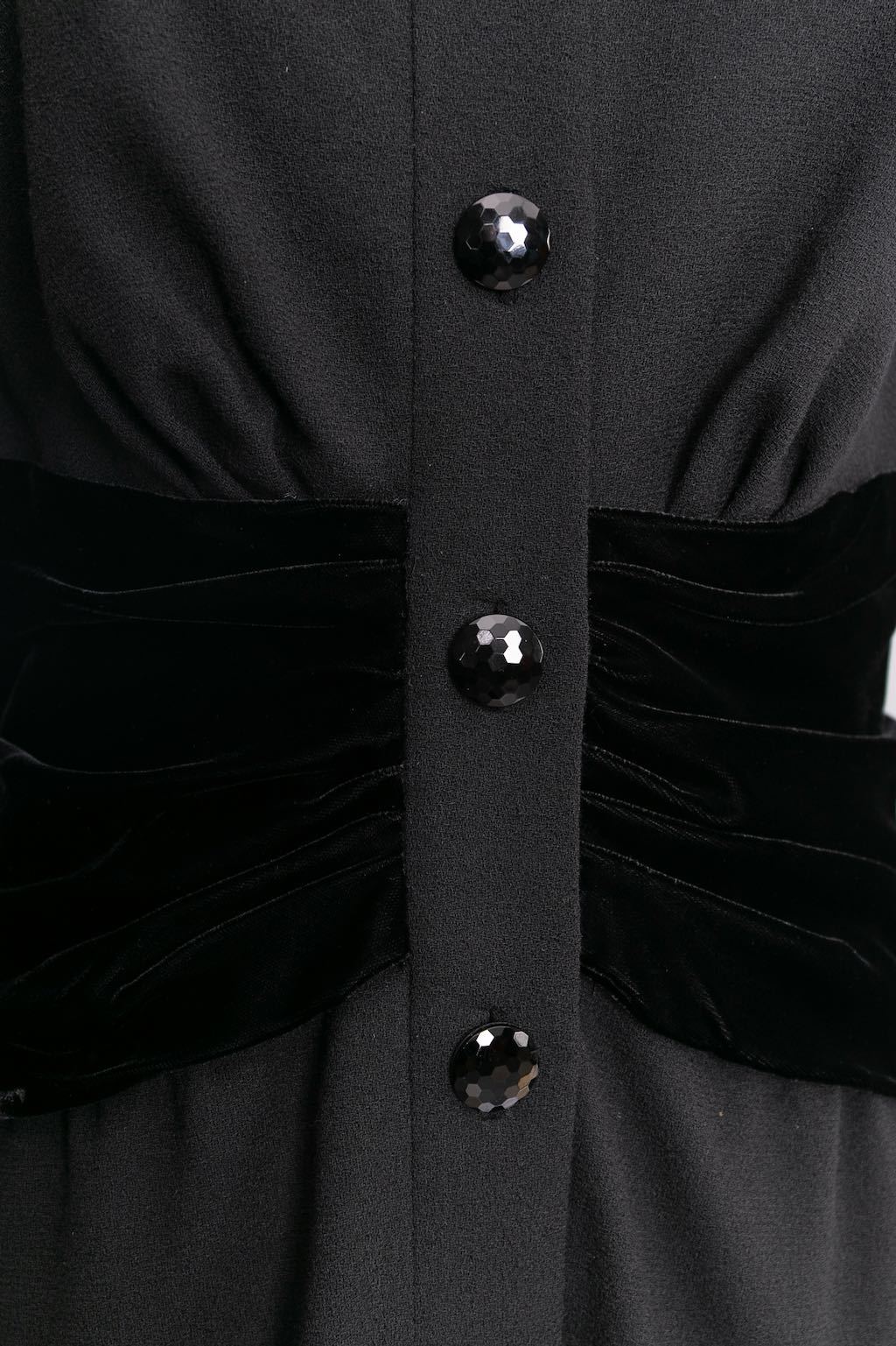 YVES SAINT LAURENT -(Bolduc 075023) Robe en étamine de laine et velours se boutonnant à l'avant. Aucune étiquette de taille ou de composition, elle correspond à une taille 36FR. Collection Haute Couture Hiver 1990