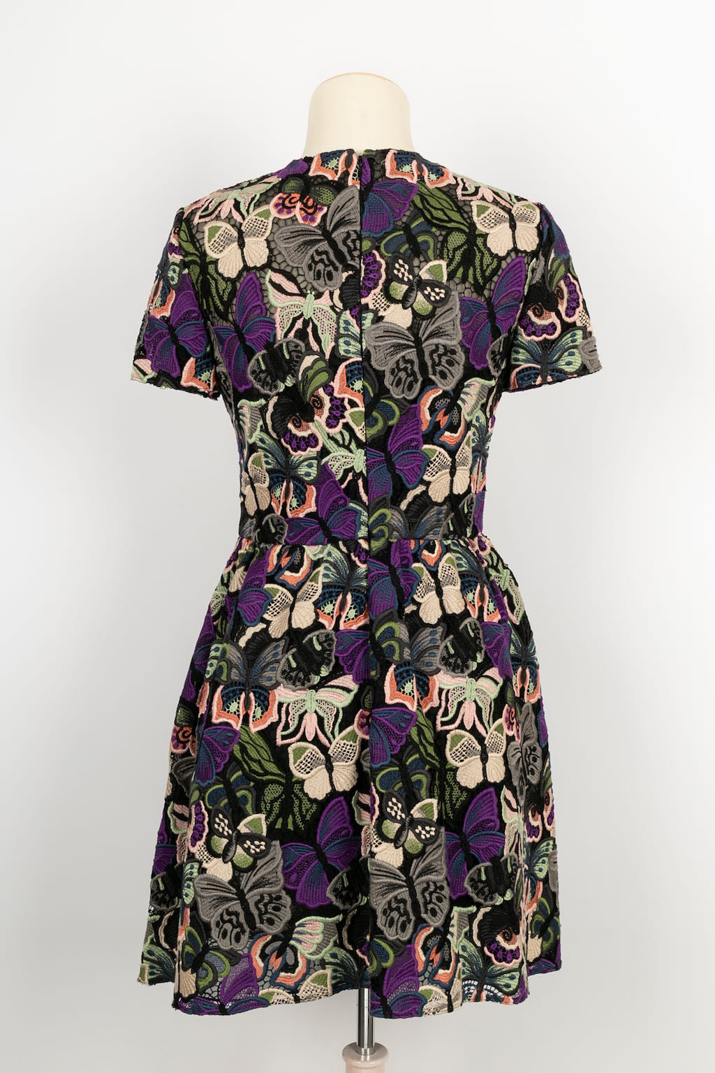 VALENTINO -(Made in Italy) Robe en coton et soie figurant des papillons. Taille indiquée 40IT, elle convient à un 38FR.