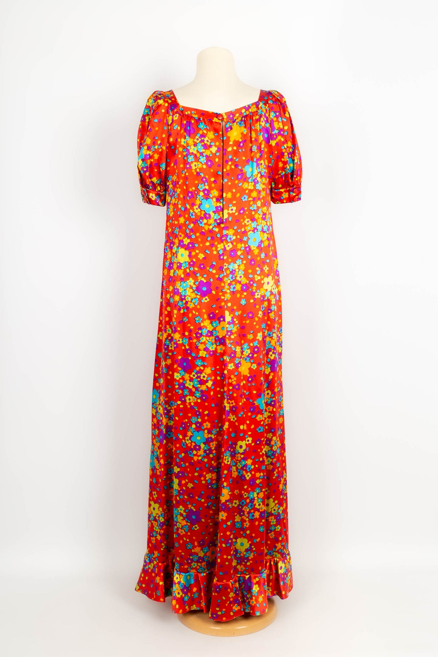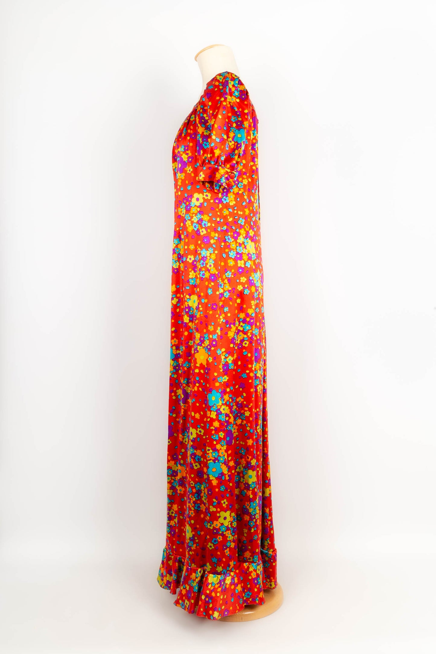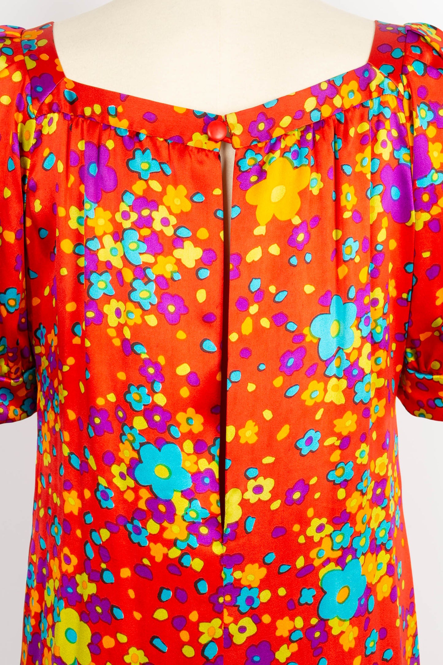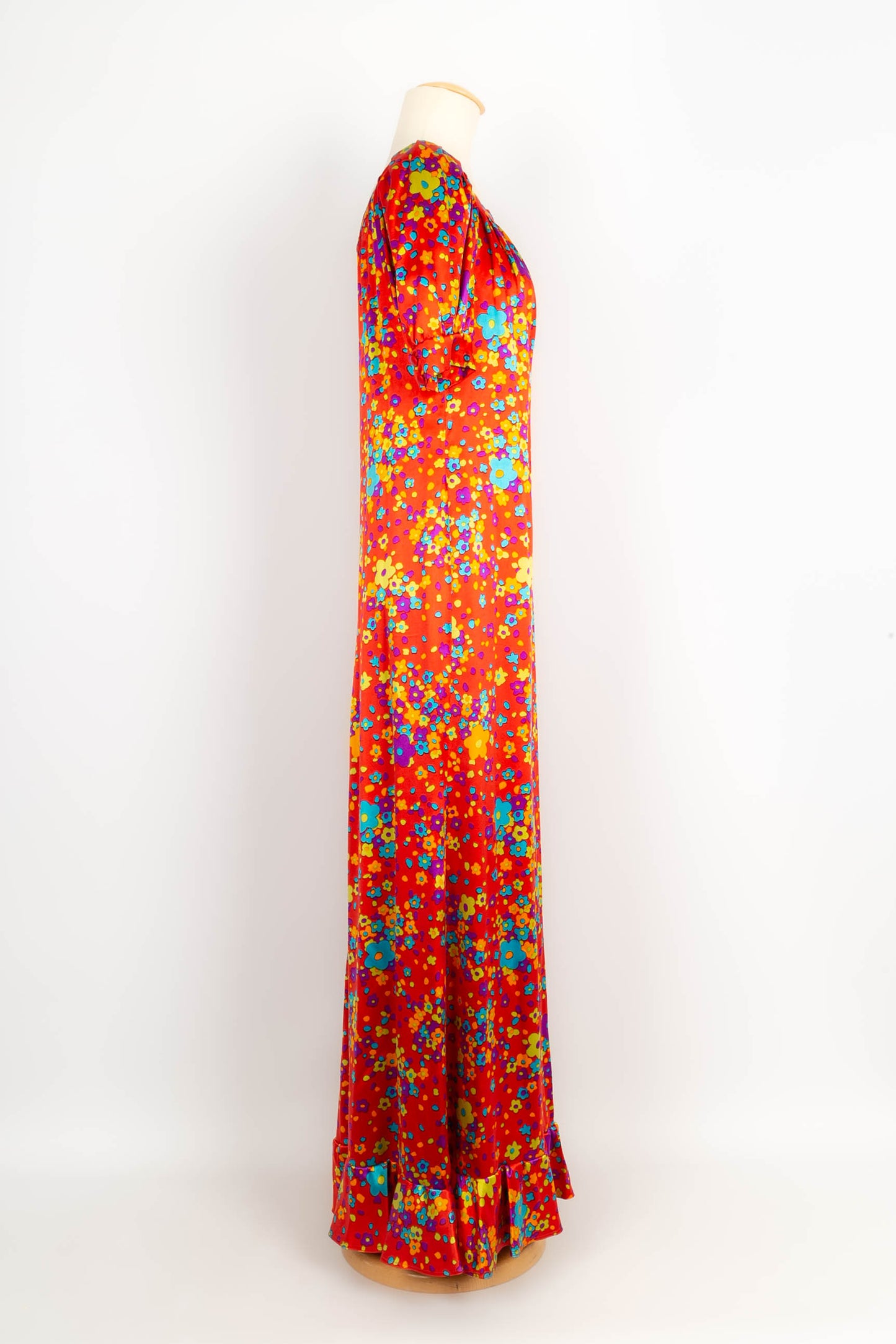 YVES SAINT LAURENT -(Made in France) Robe Haute Couture en soie fleurie. Aucune étiquette de taille ou de composition, elle correspond à un 36FR.