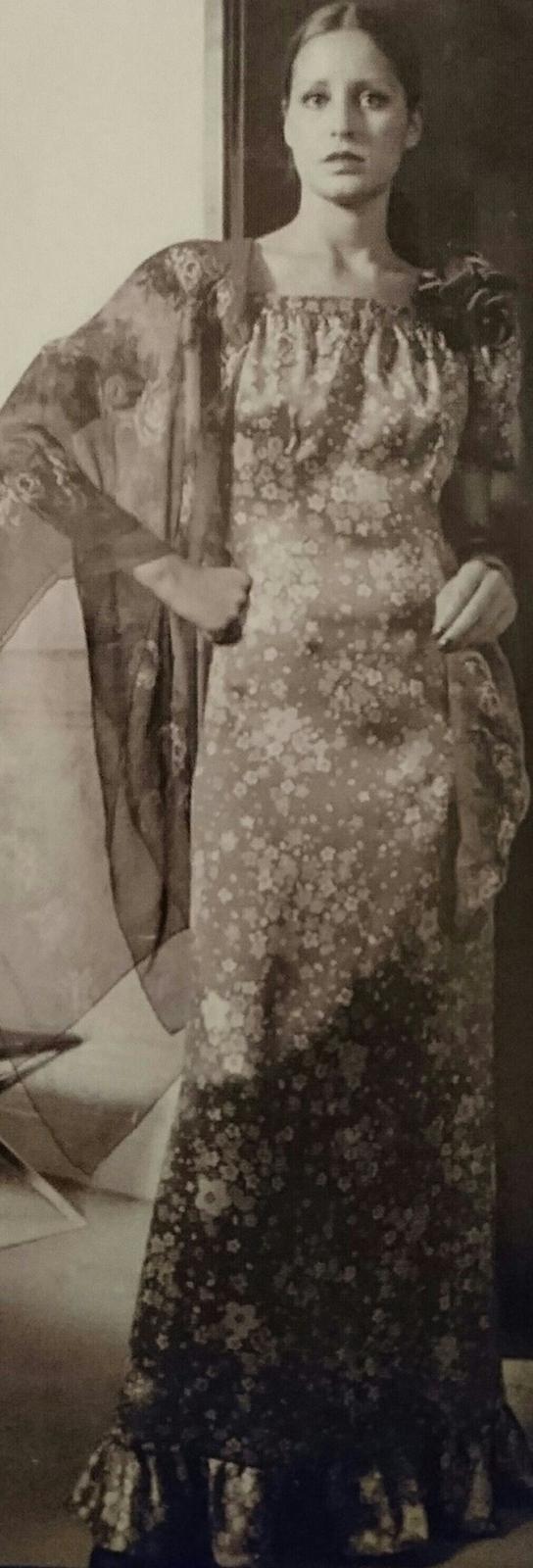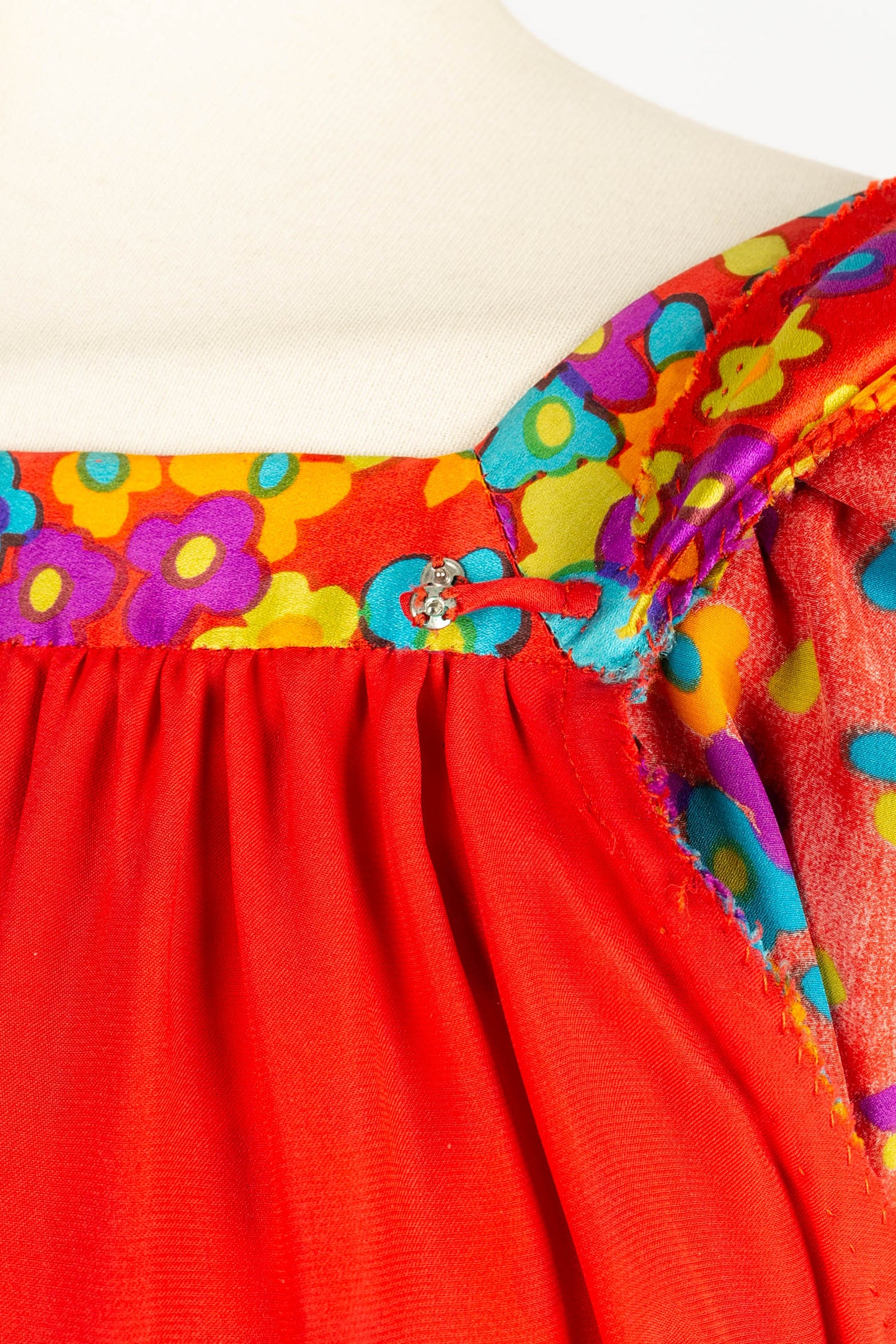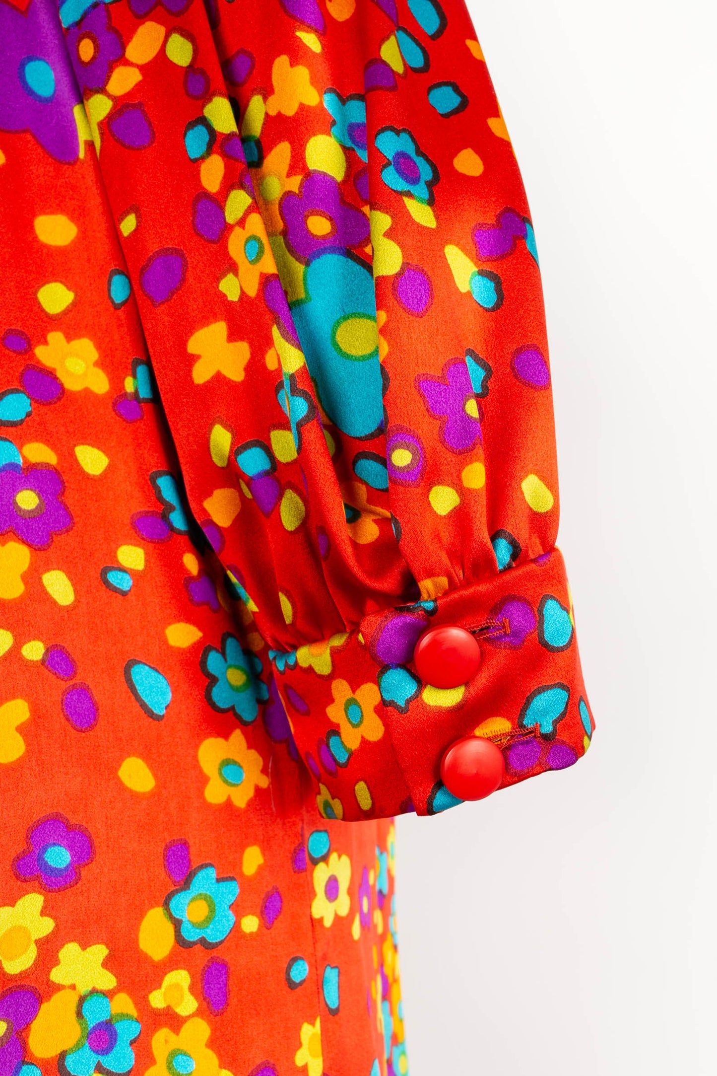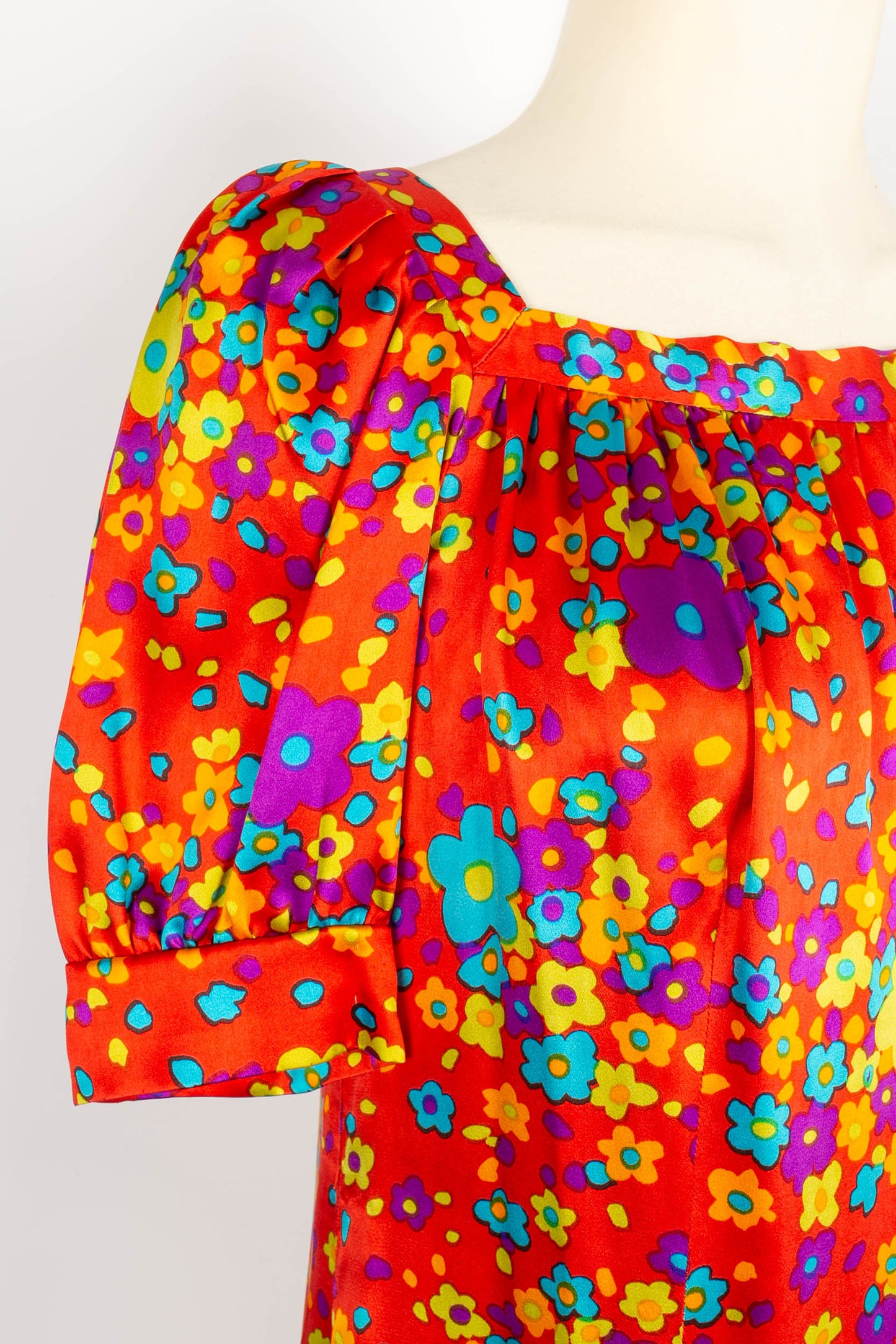 YVES SAINT LAURENT -(Made in France) Robe Haute Couture en soie fleurie. Aucune étiquette de taille ou de composition, elle correspond à un 36FR.