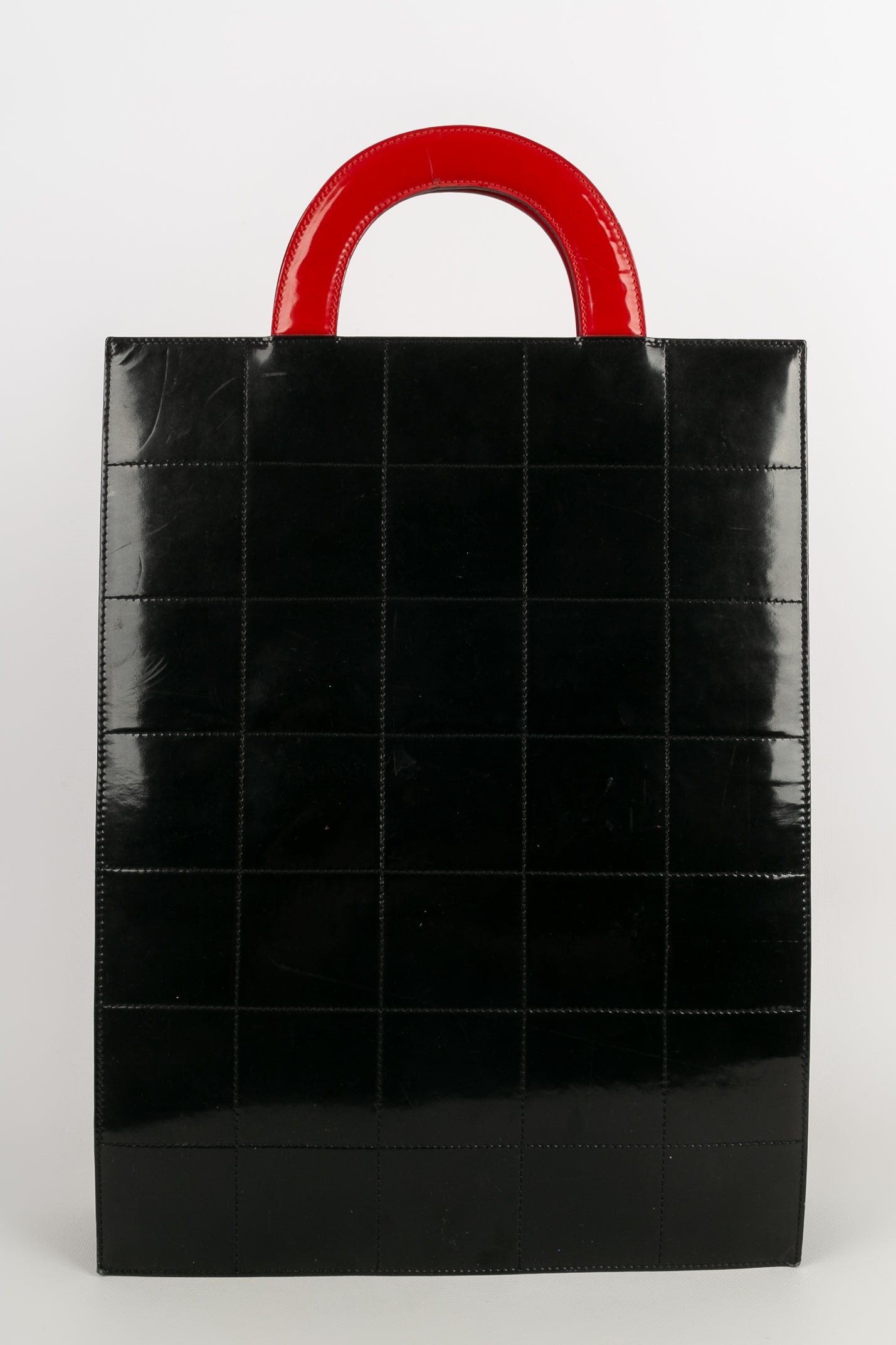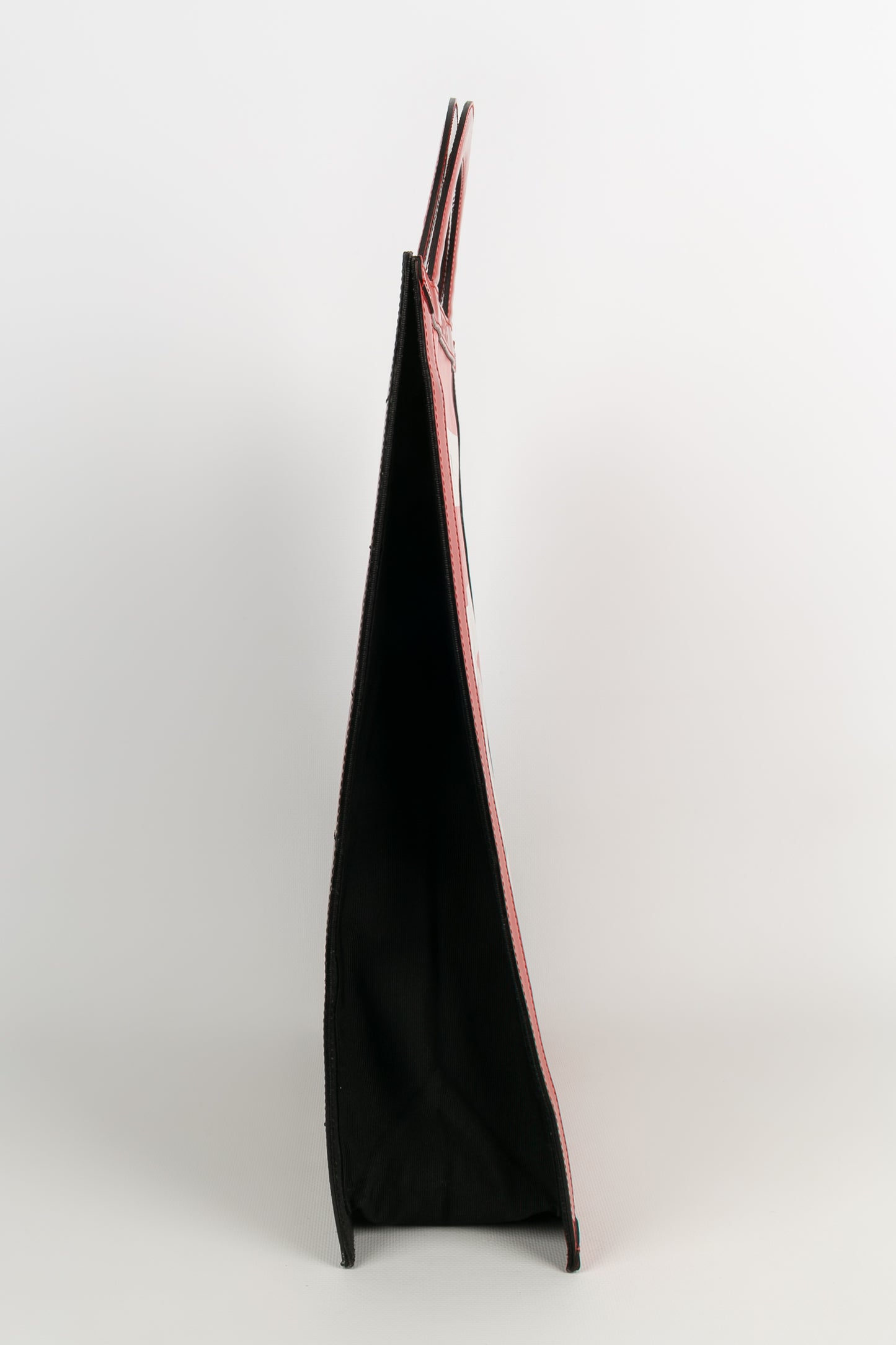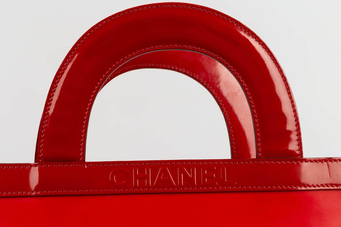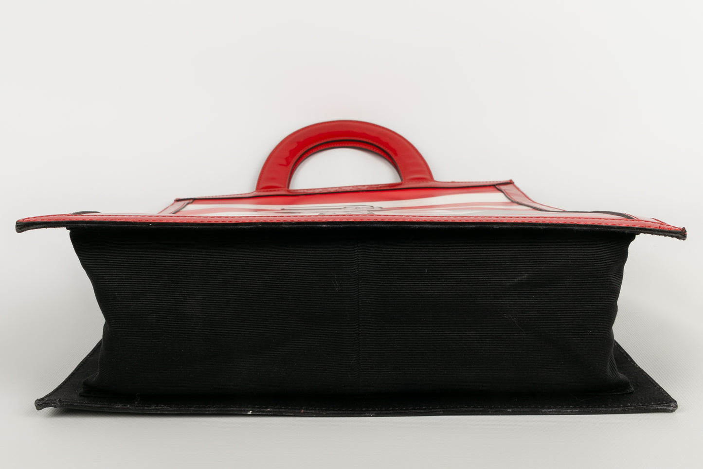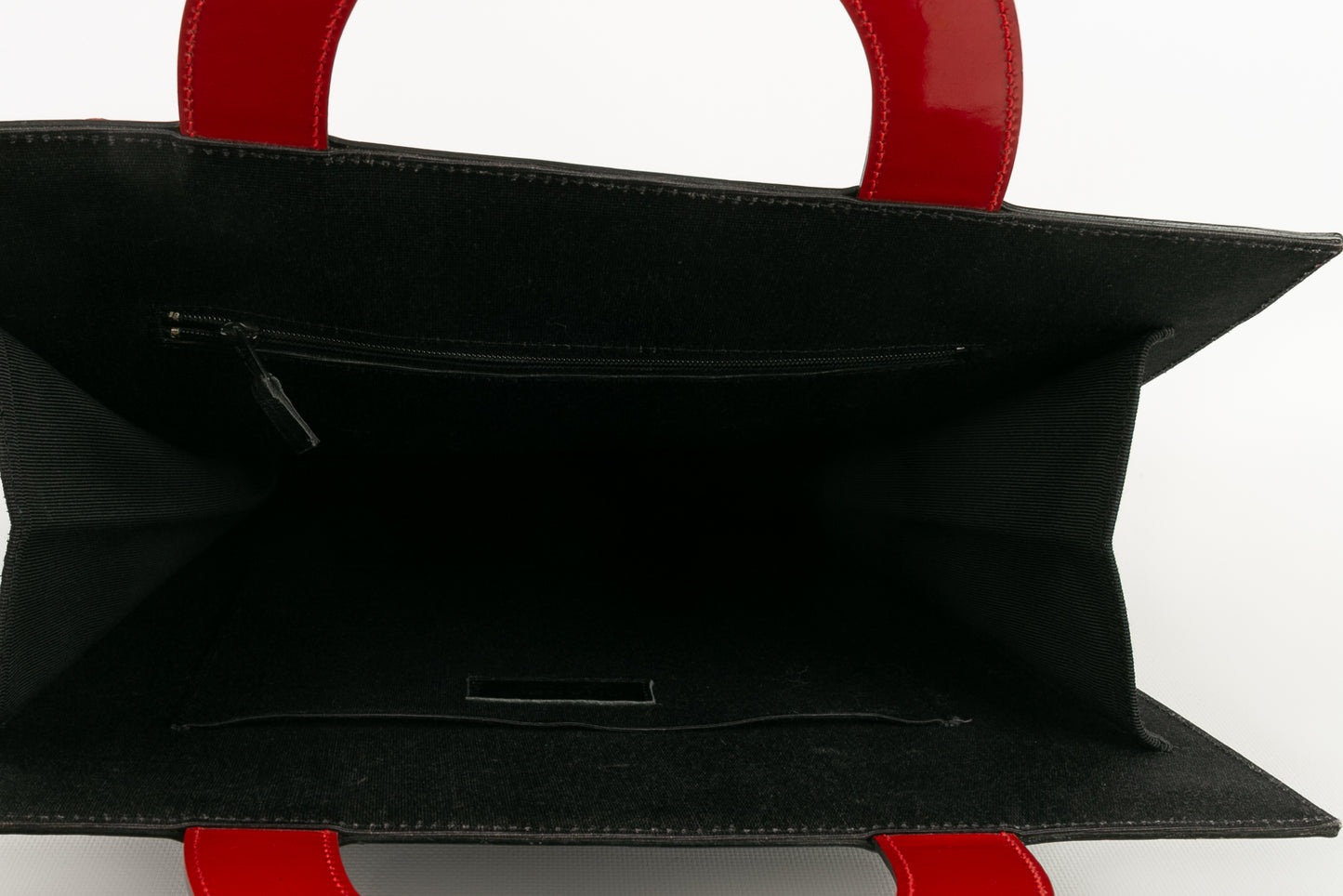 CHANEL -(Made in France) Sac cabas en cuir et toile rouge et blanc. Collection Prêt-à-Porter Automne-Hiver 2001. Numéro de série et carte d'authenticité présents.