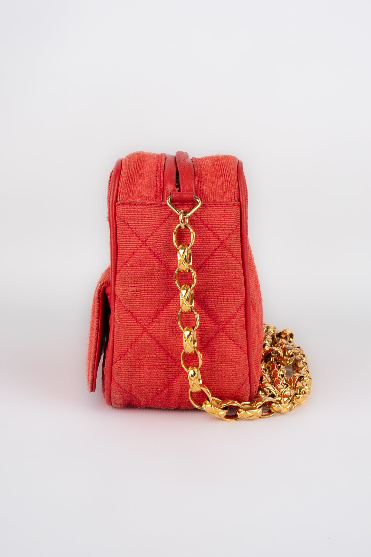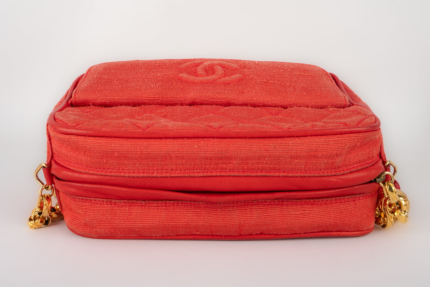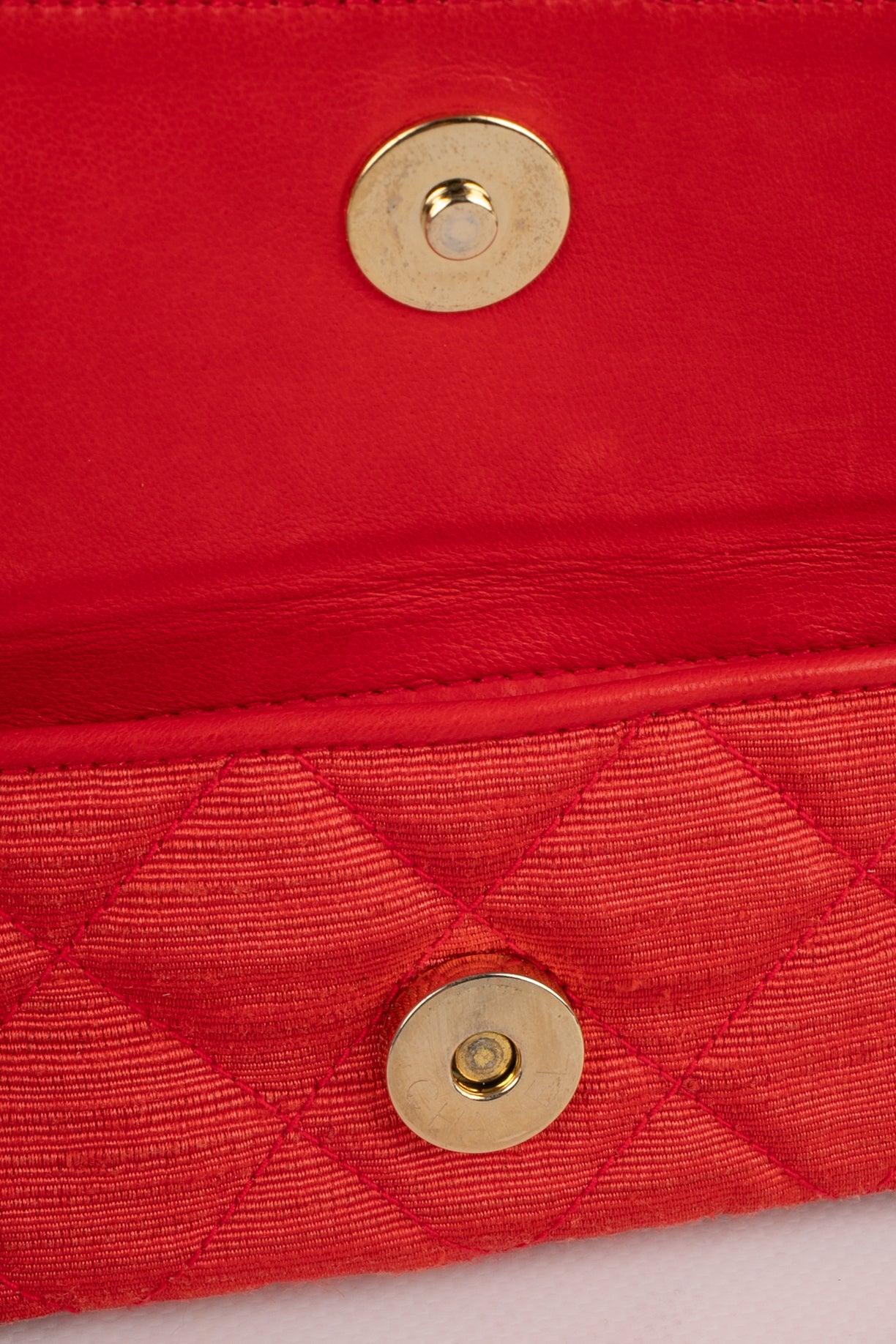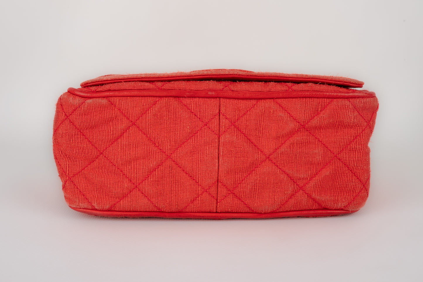 CHANEL -(Made in Italy) Sac en ottoman matelassé et cuir corail, intérieur en cuir et attributs en métal doré. Circa 1990.