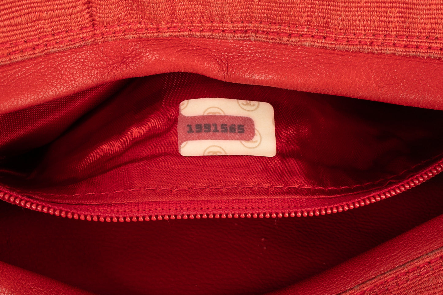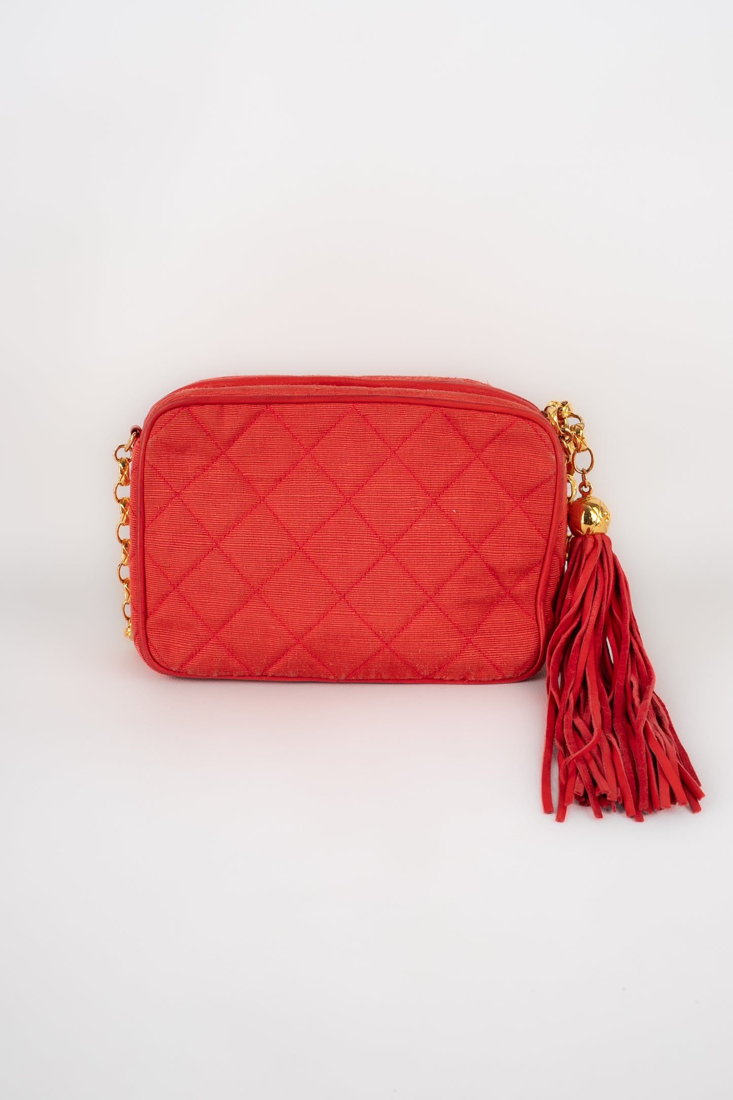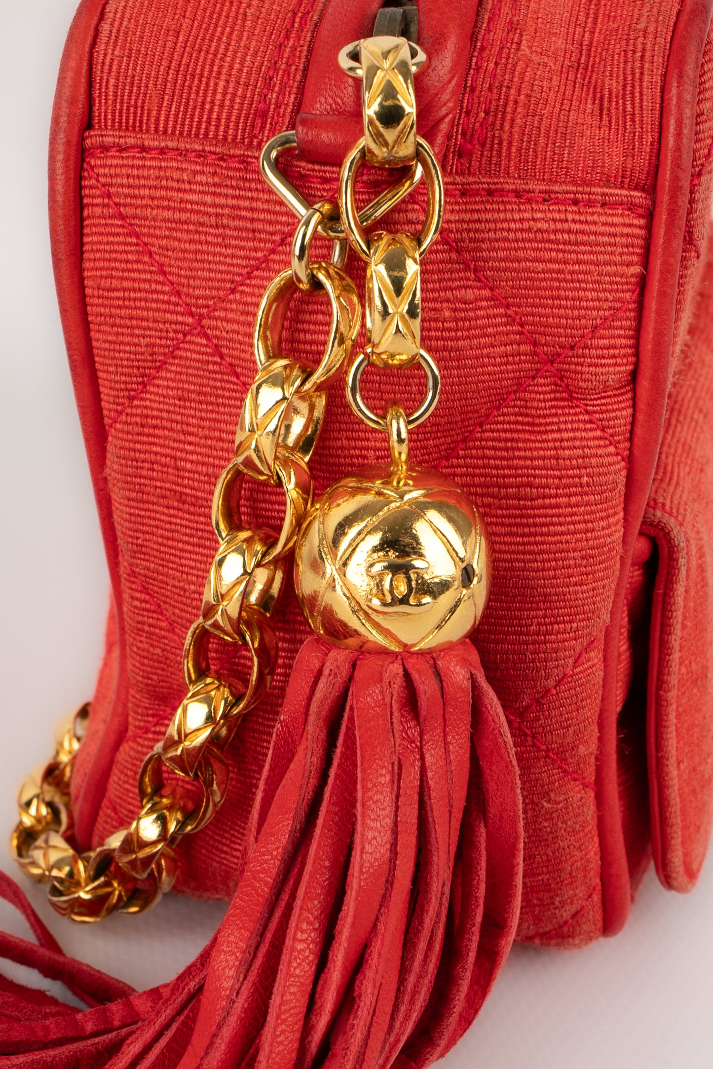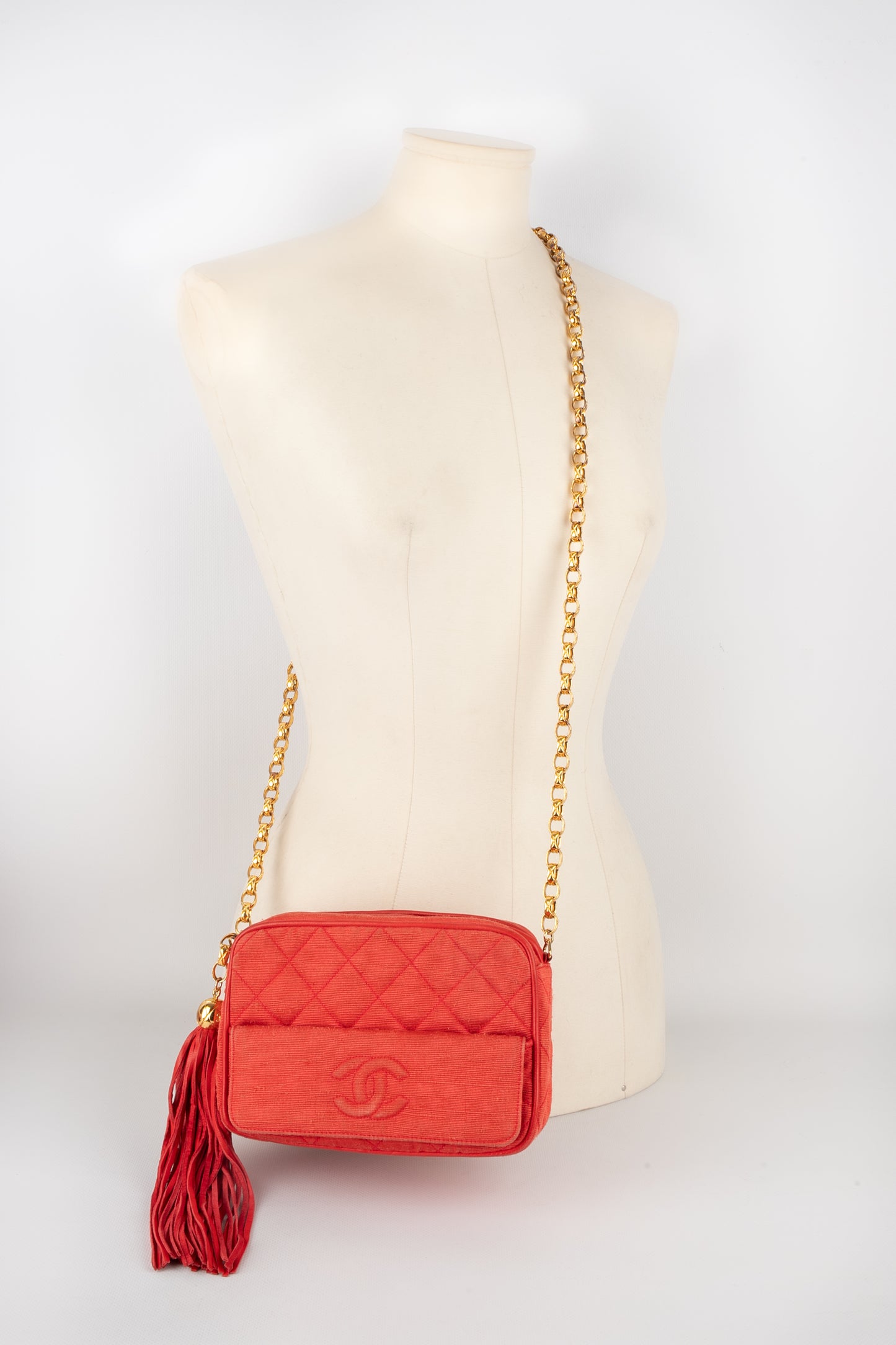CHANEL -(Made in Italy) Sac en ottoman matelassé et cuir corail, intérieur en cuir et attributs en métal doré. Circa 1990.