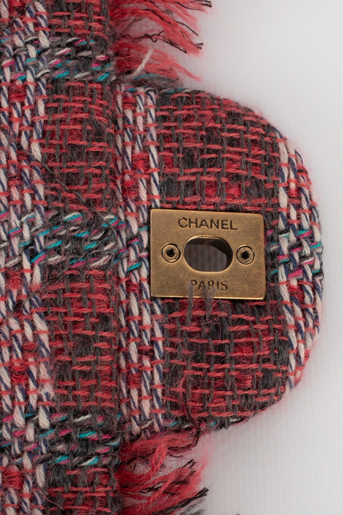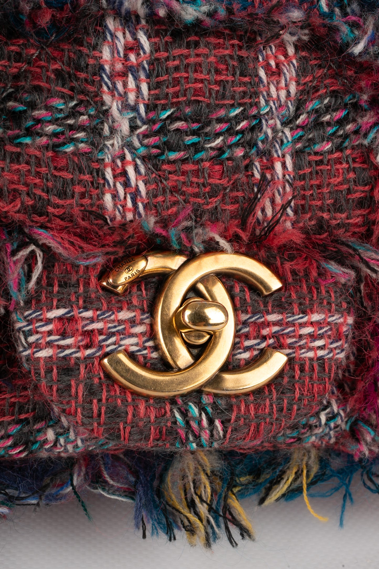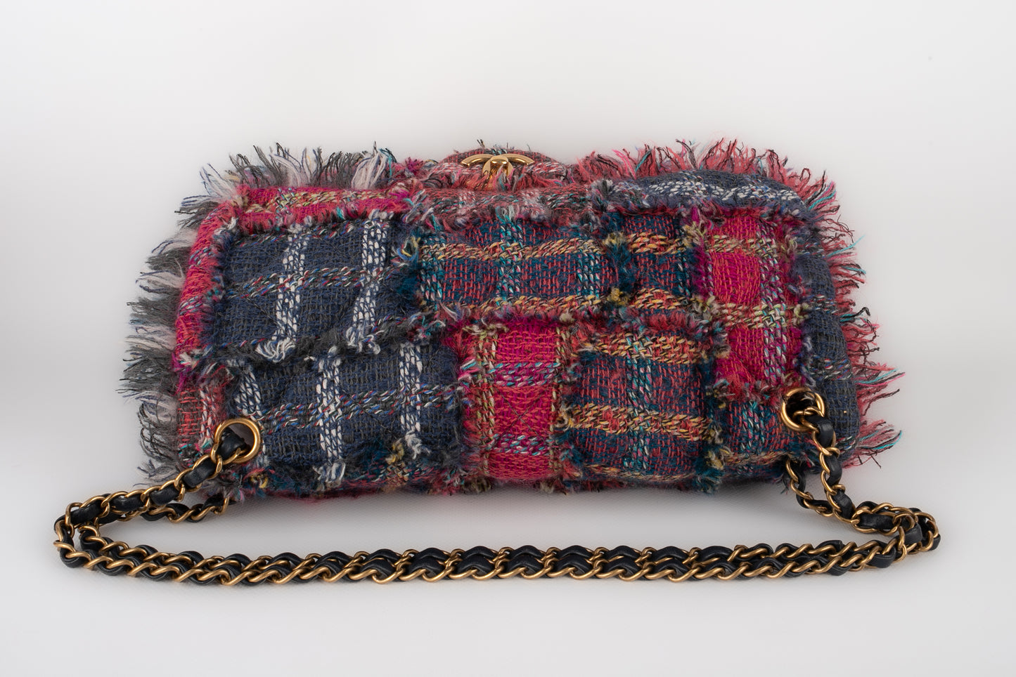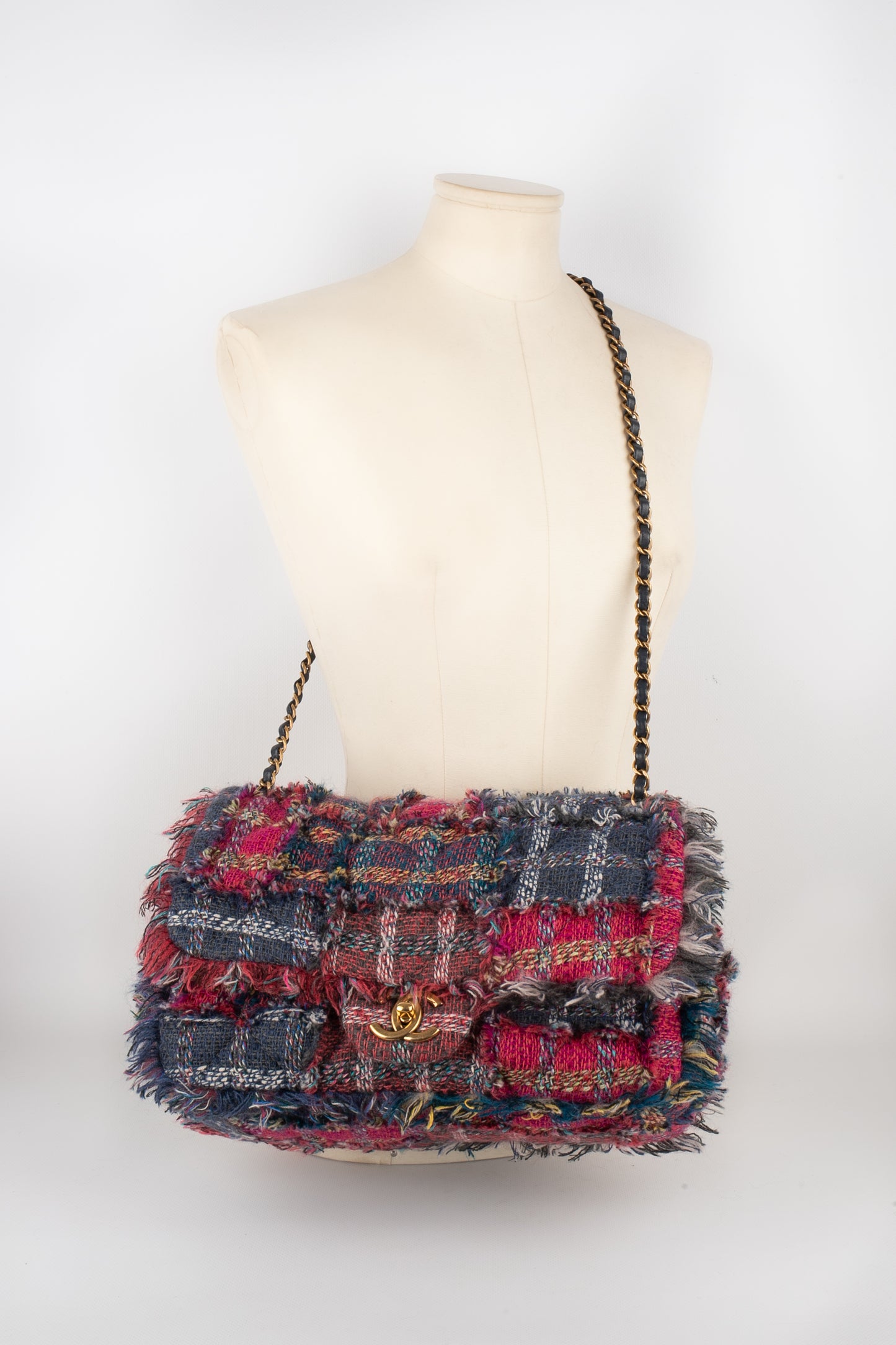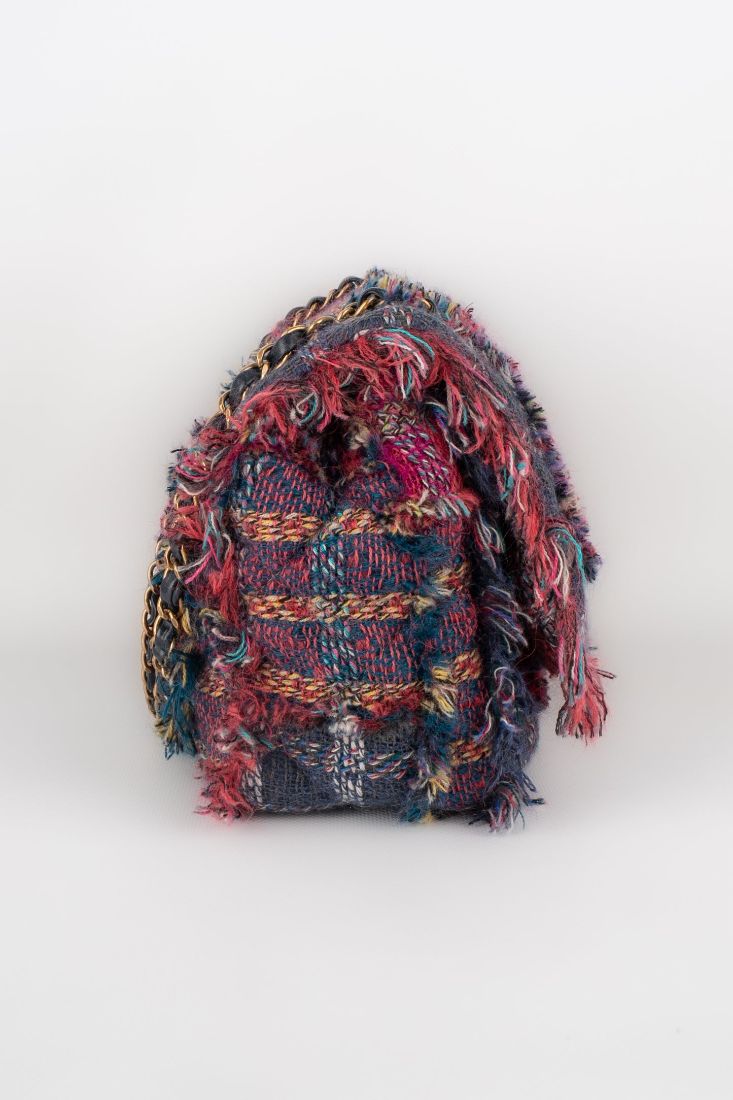 CHANEL -(Made in France) Sac en tweed matelassé multicolore, attributs en métal doré. Numéro de série et certficat présent. Collection 2014-2015. Sac issu des ventes privées 2017.