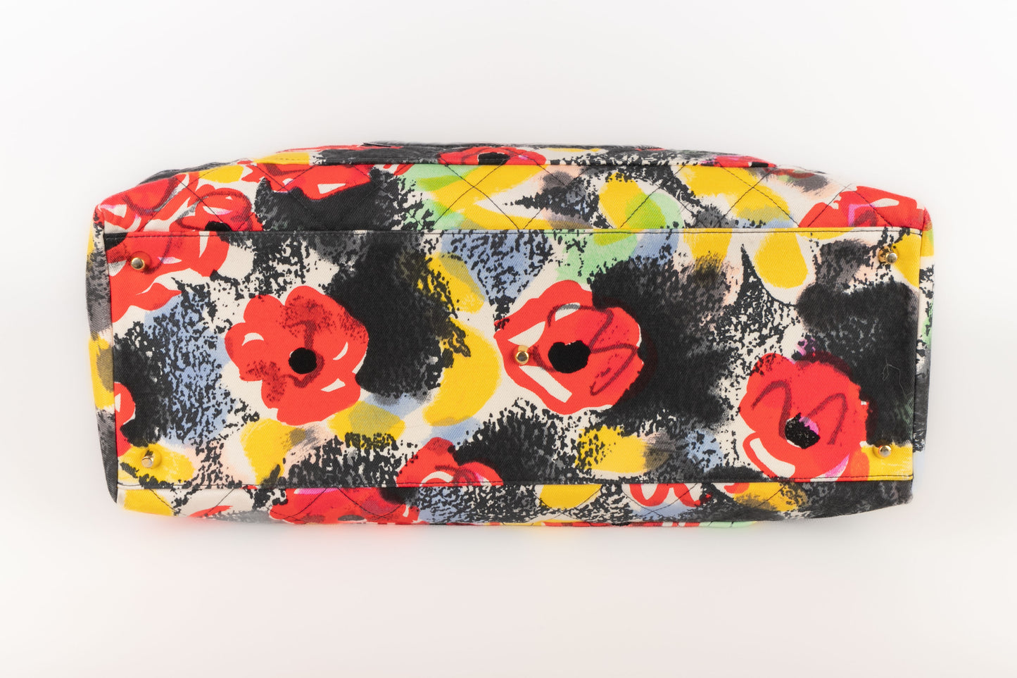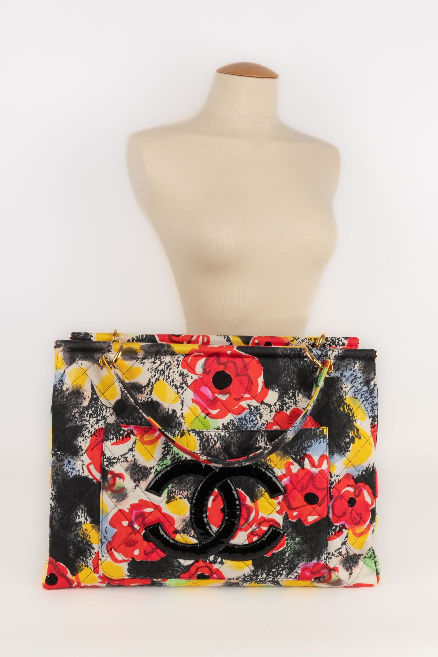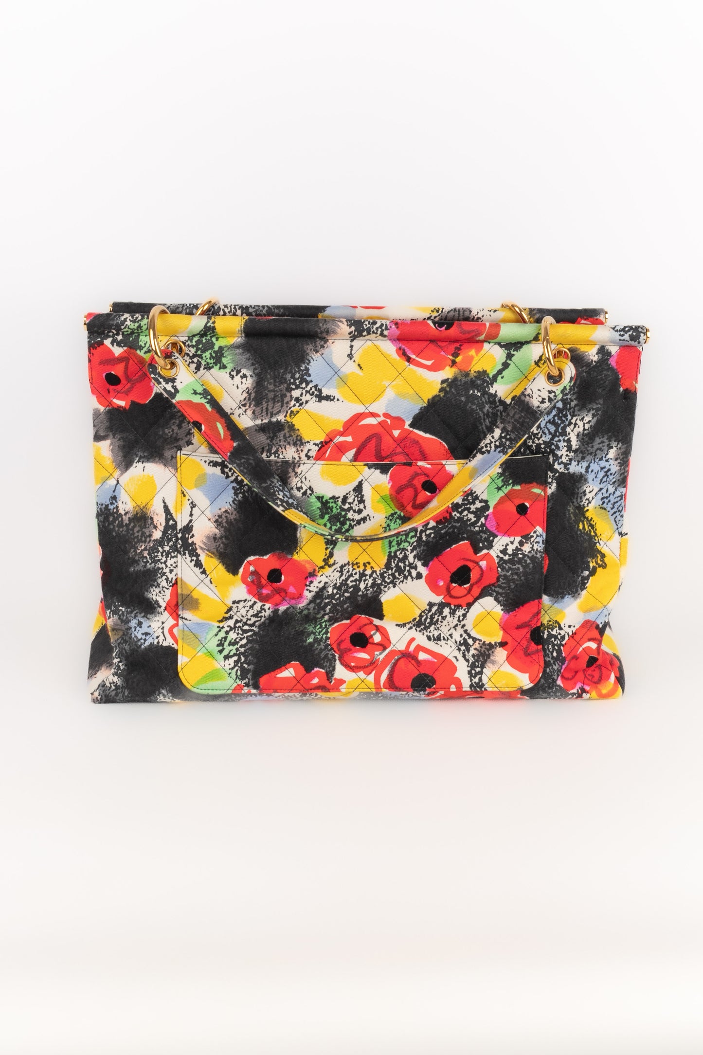 CHANEL - (Made in France) Sac « Shopping » en toile matelassée imprimée d’un motif floral multicolore stylisé. Collection Printemps-Eté 1997 sous la direction artistique de Karl Lagerfeld.