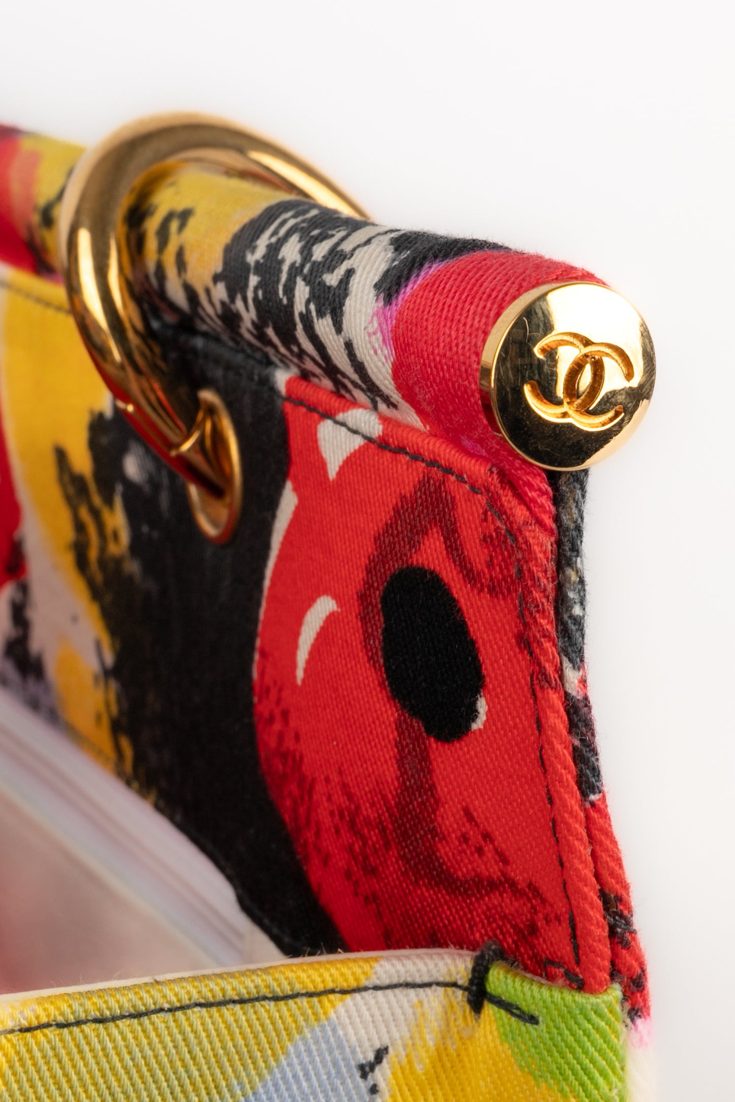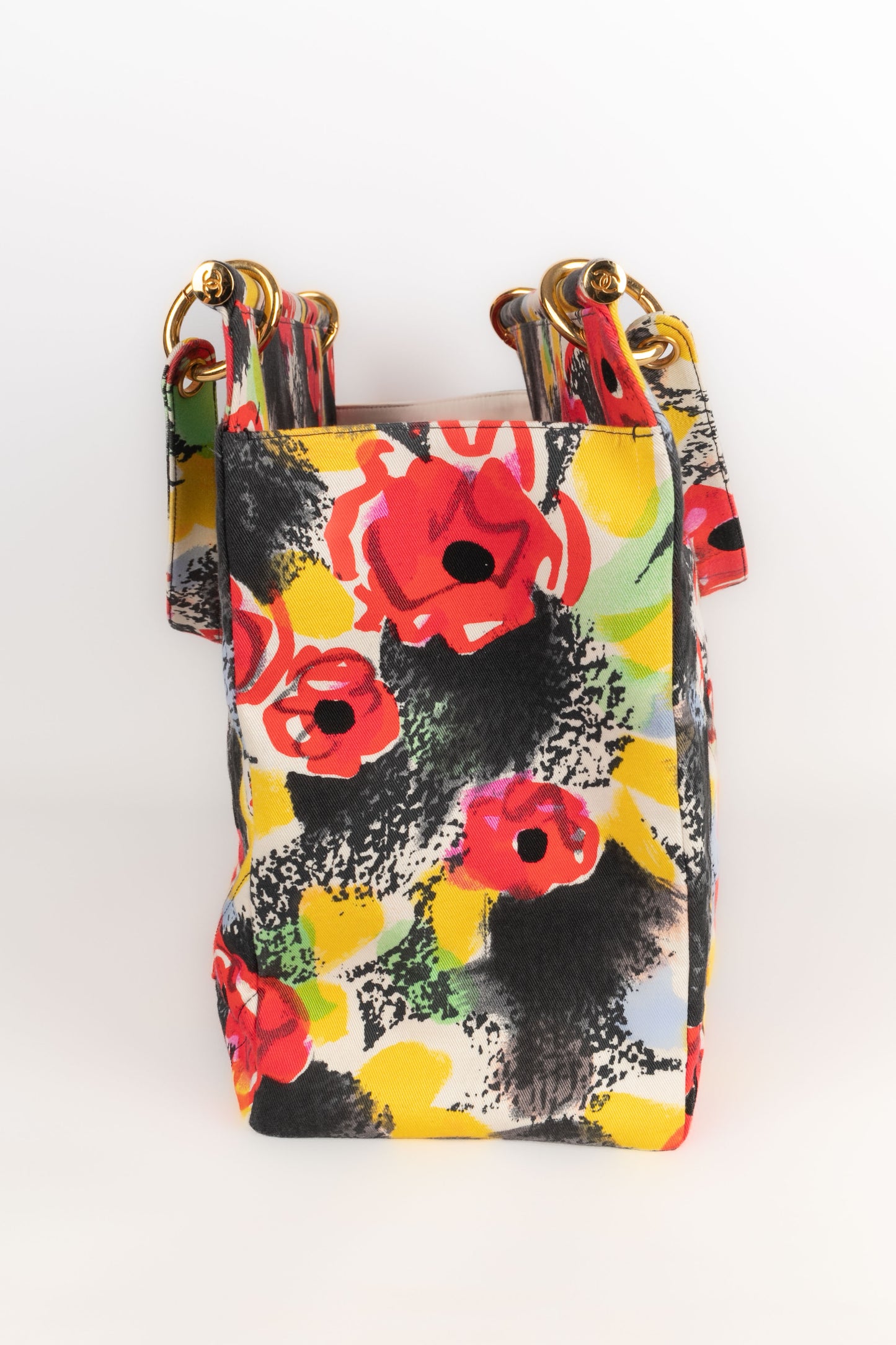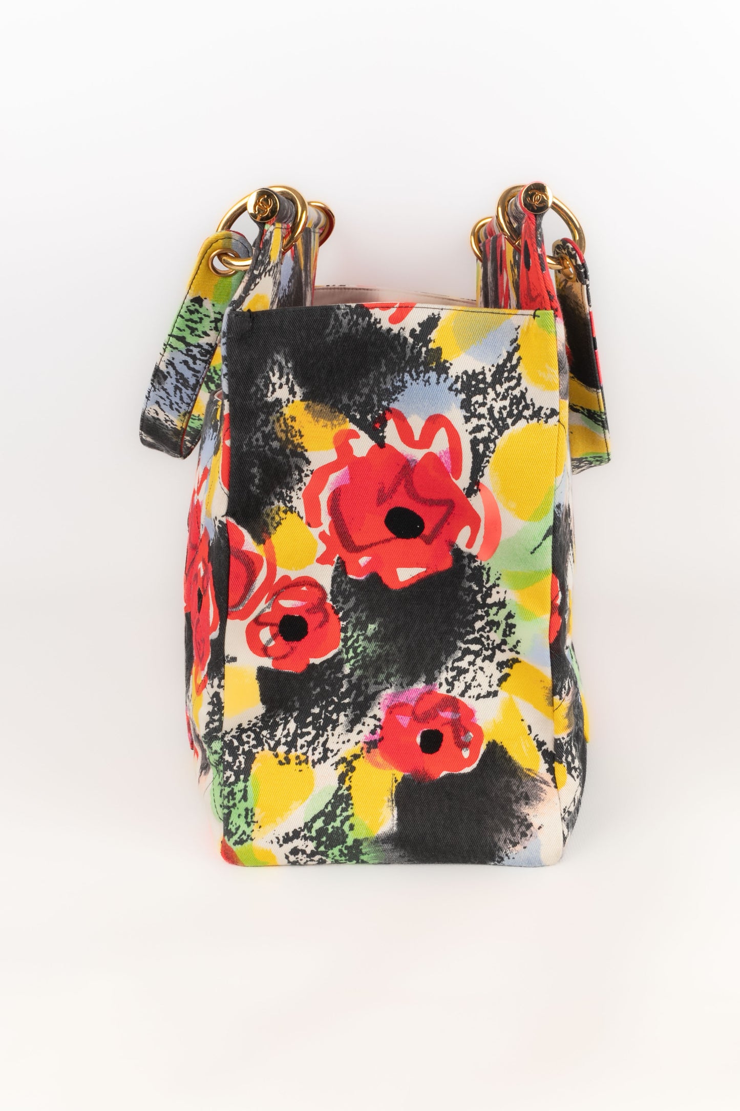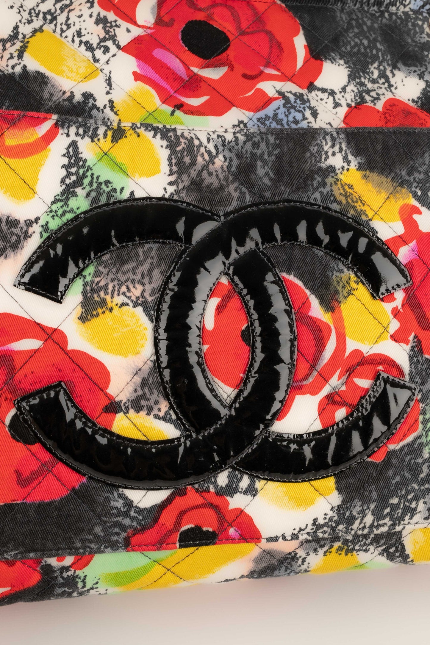 CHANEL - (Made in France) Sac « Shopping » en toile matelassée imprimée d’un motif floral multicolore stylisé. Collection Printemps-Eté 1997 sous la direction artistique de Karl Lagerfeld.