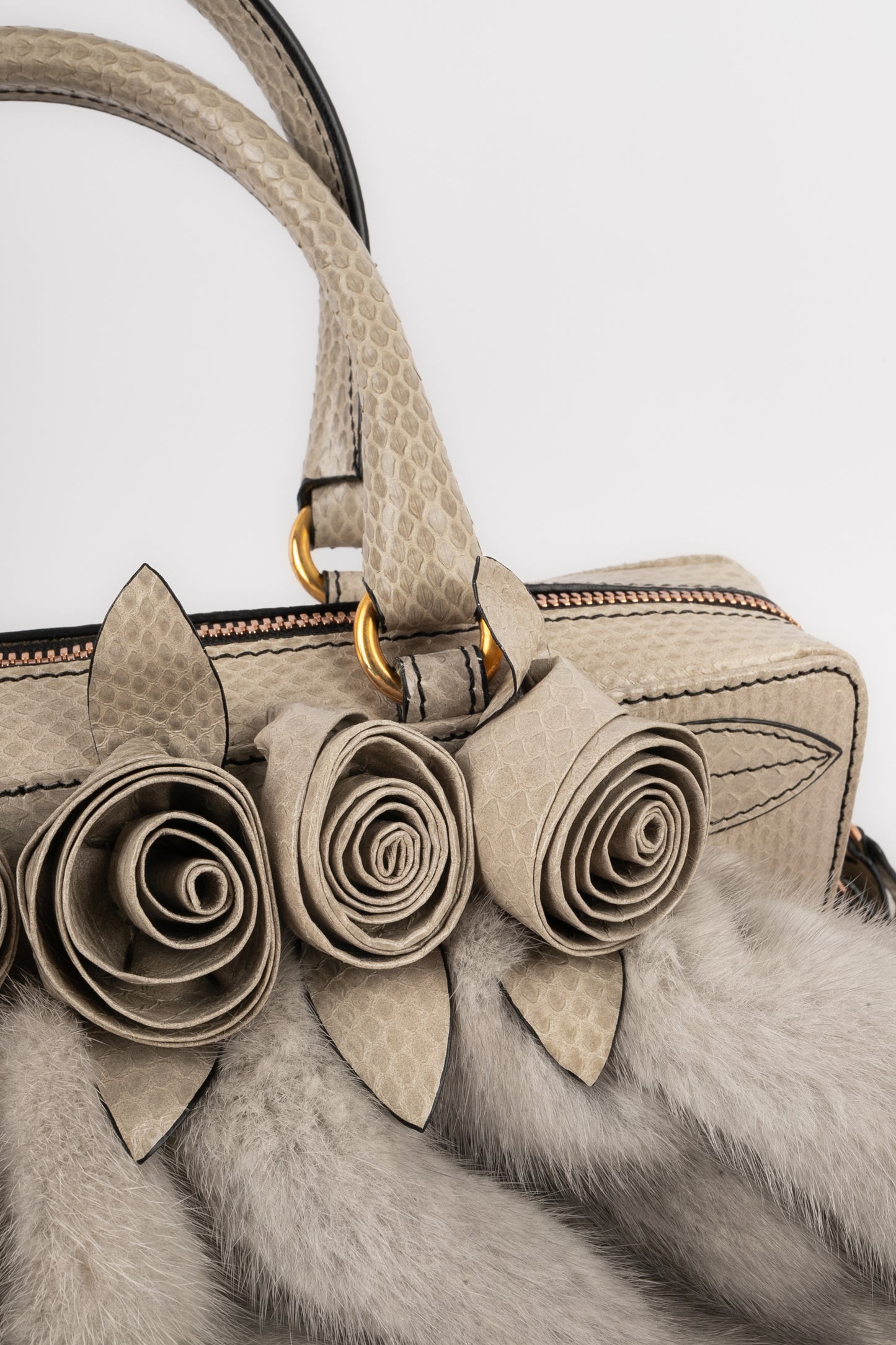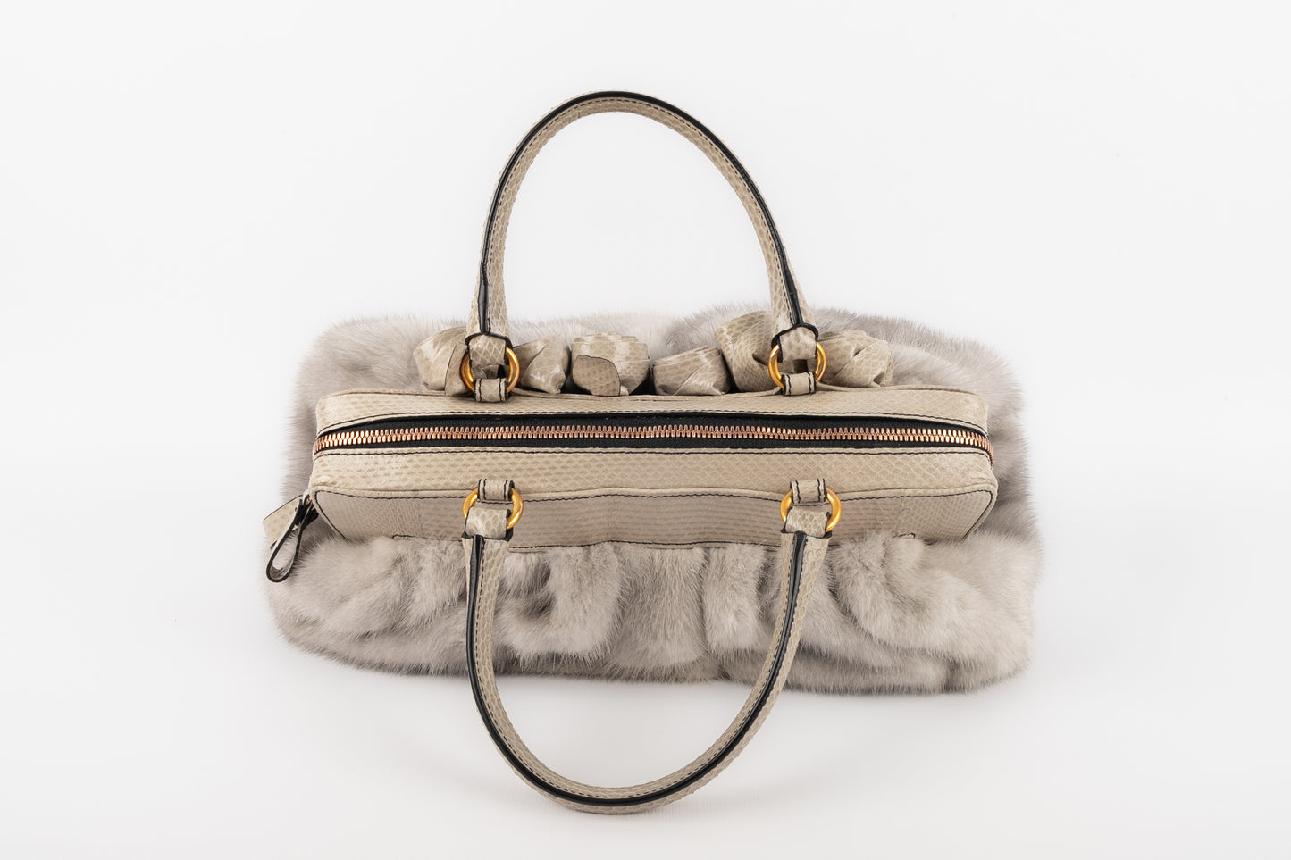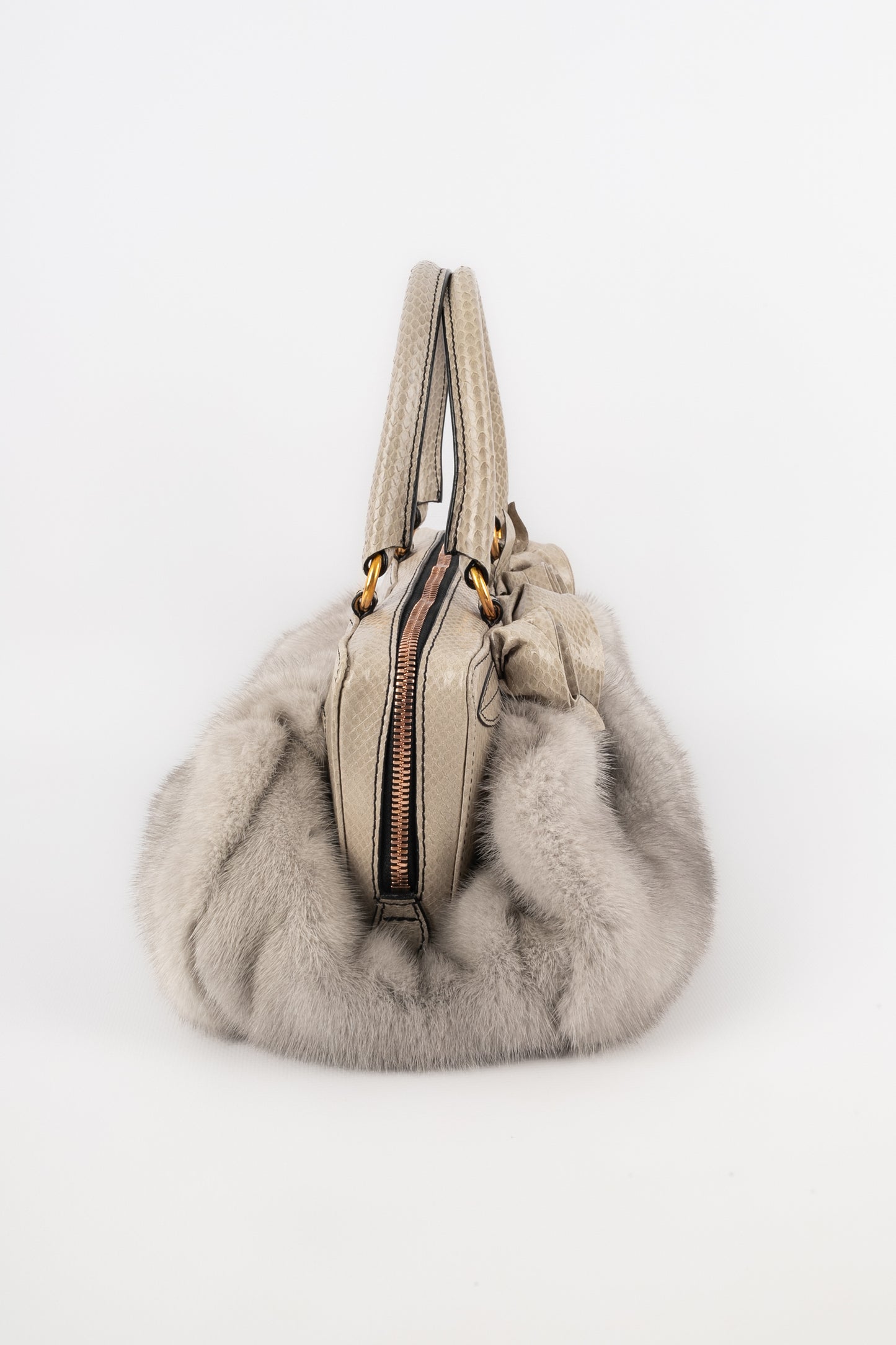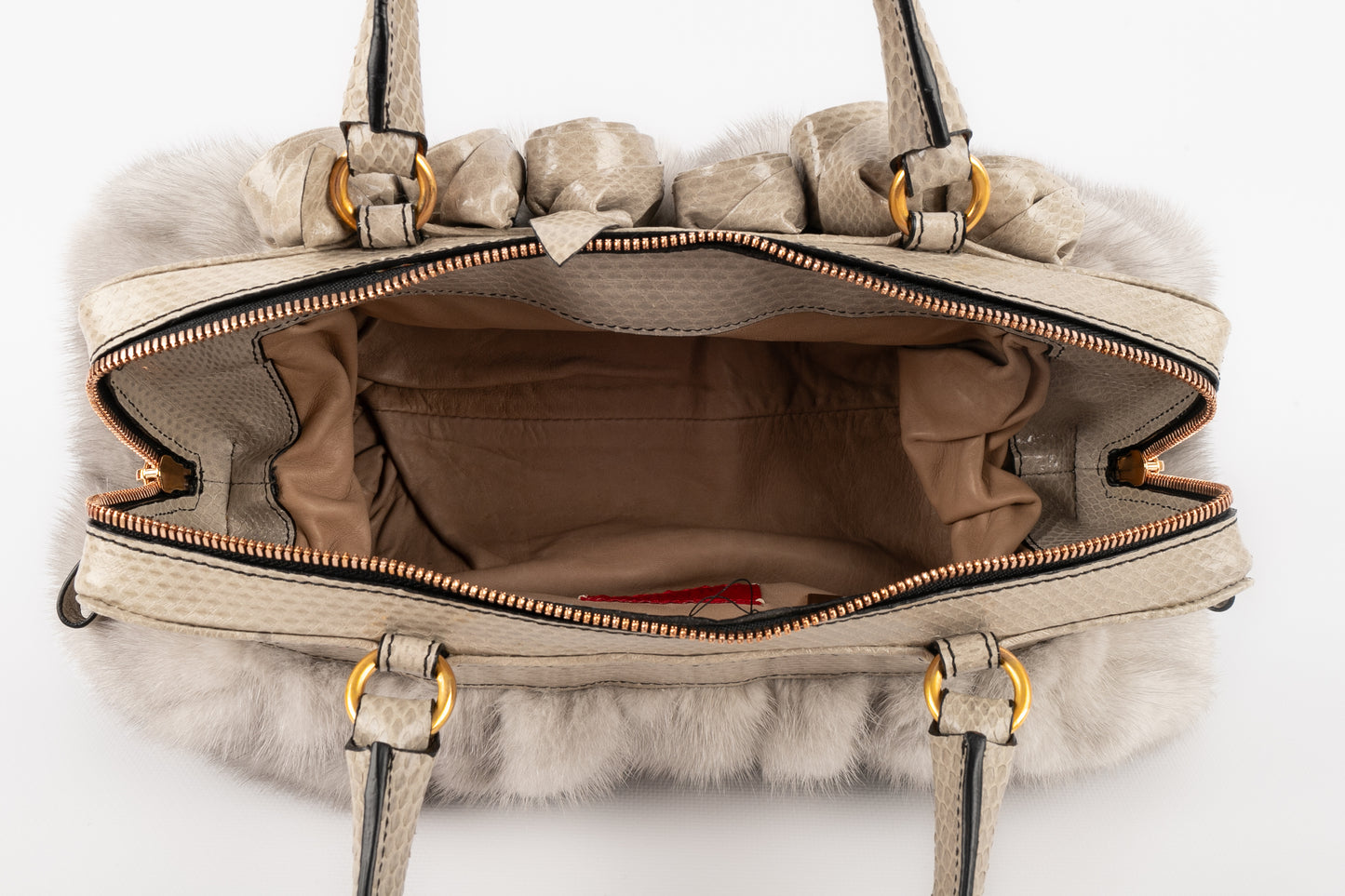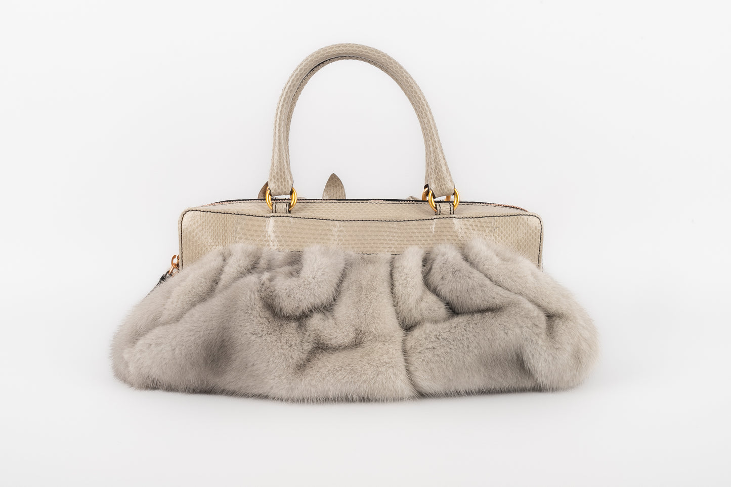 VALENTINO -(Made in Italy) Sac en vison et python, attributs en métal doré.