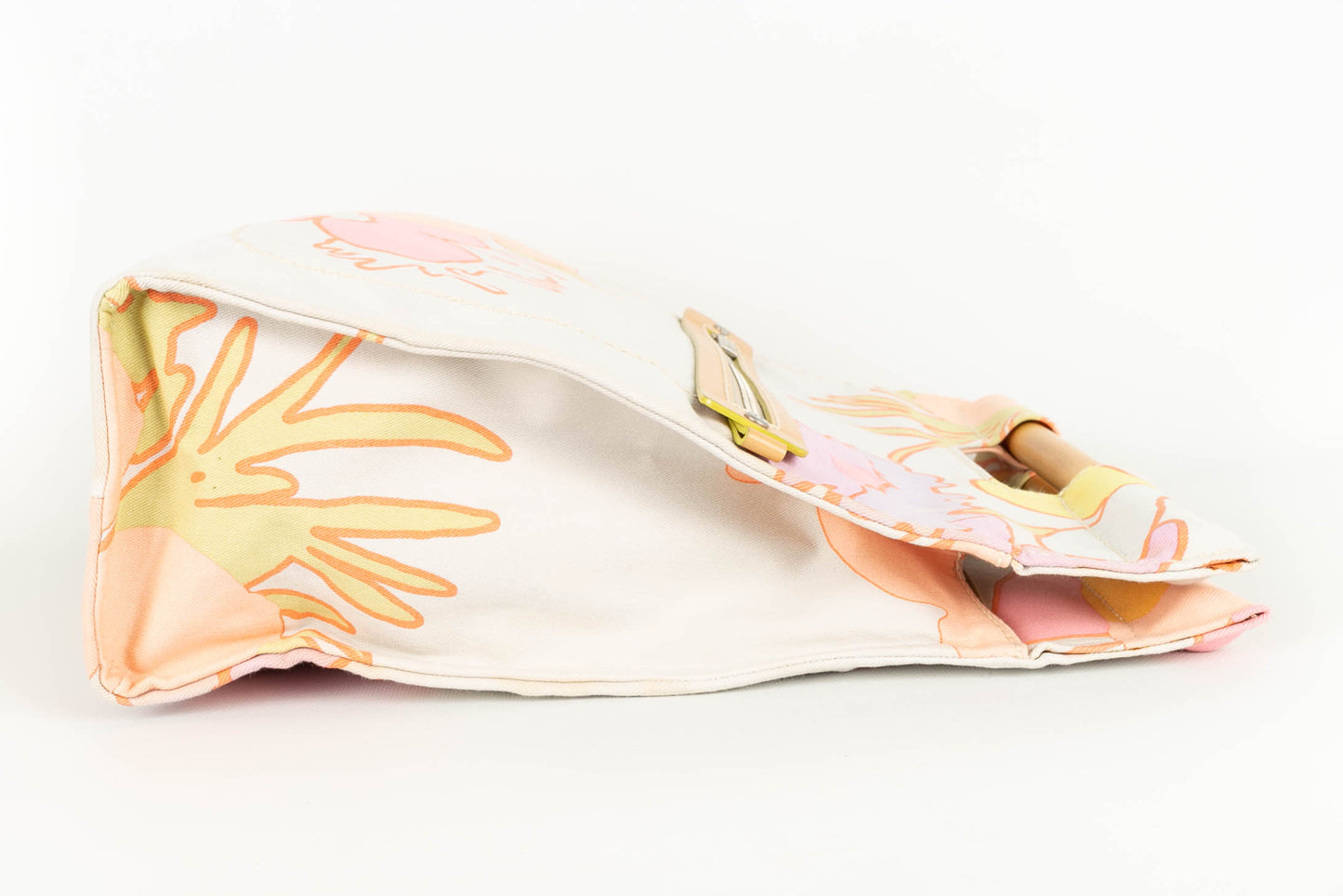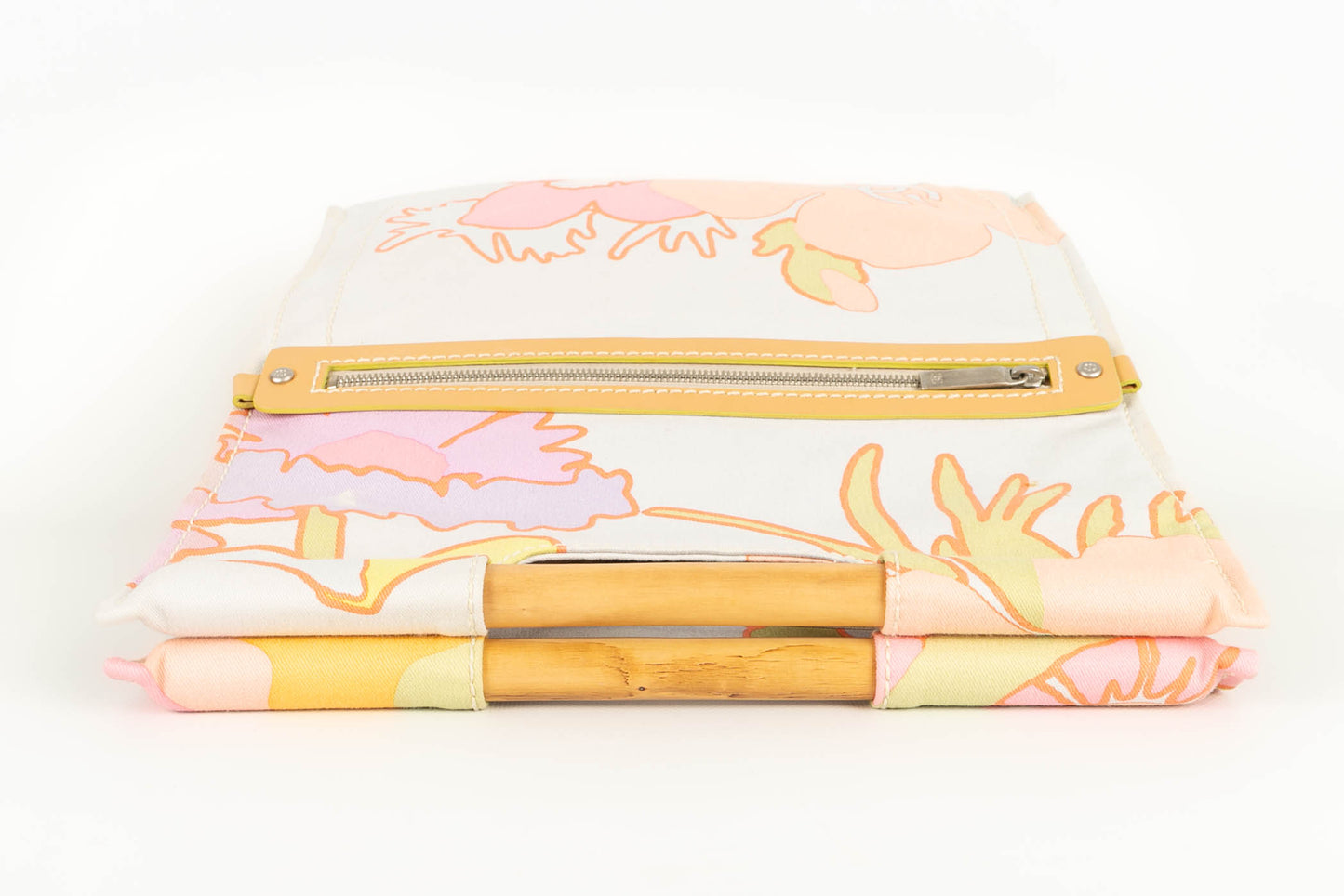 CHANEL -(Made in Italy) Sac en toile multicolore, cuir et anses en bois. Il est accompagné d'un foulard en étamine de coton multicolore. Numéro de série et carte d'authenticité présents. Collection 2003/2004.