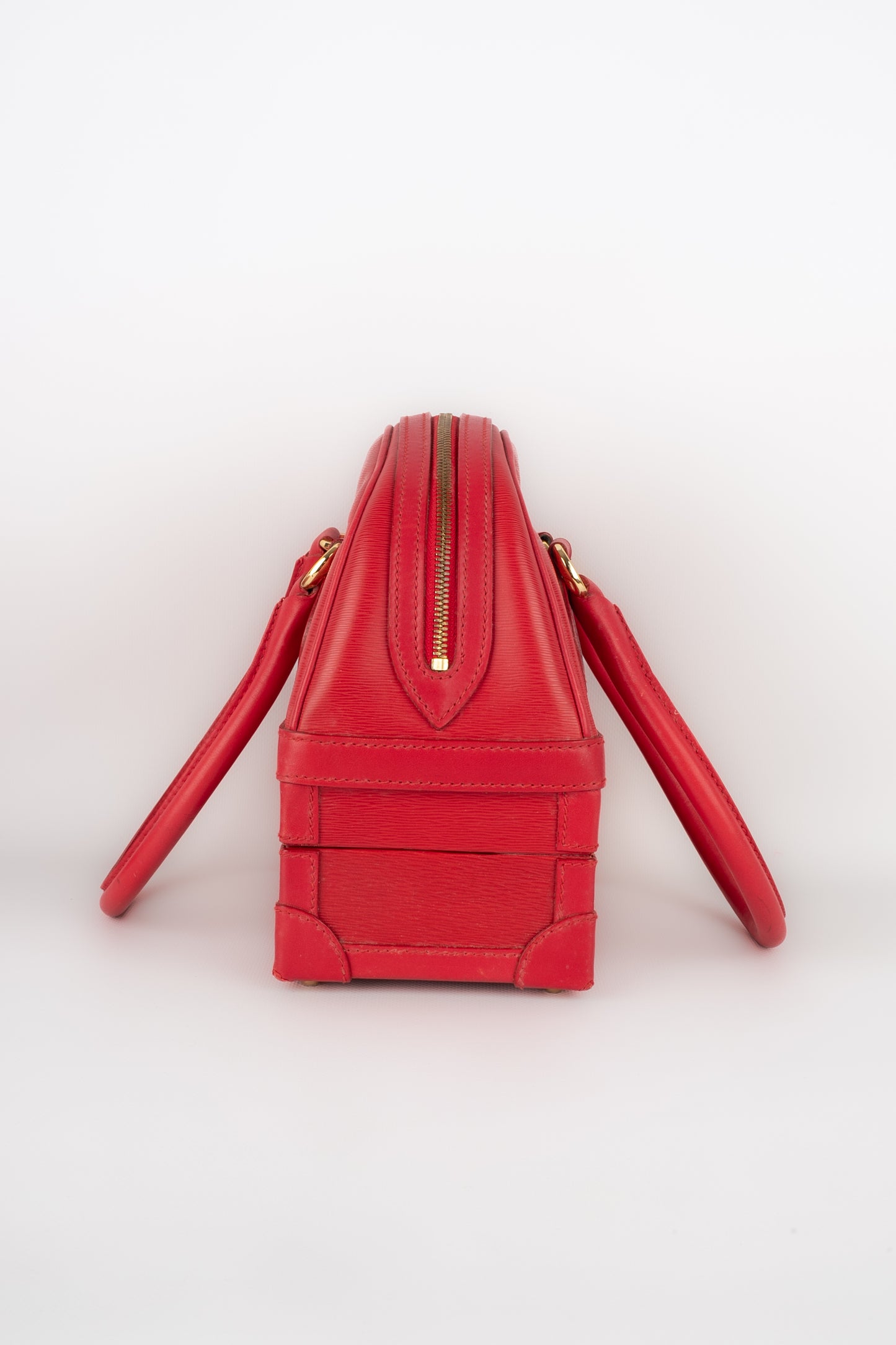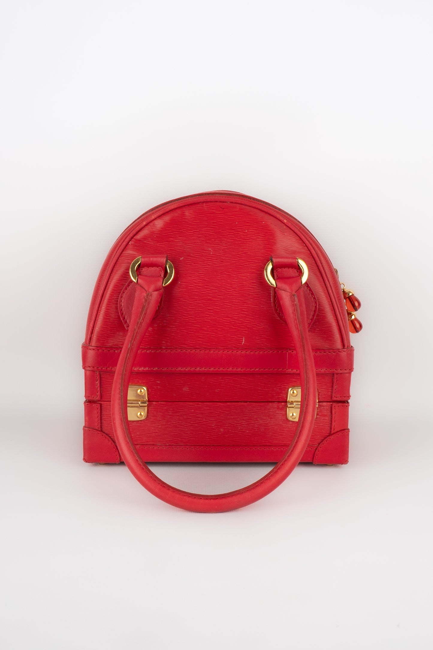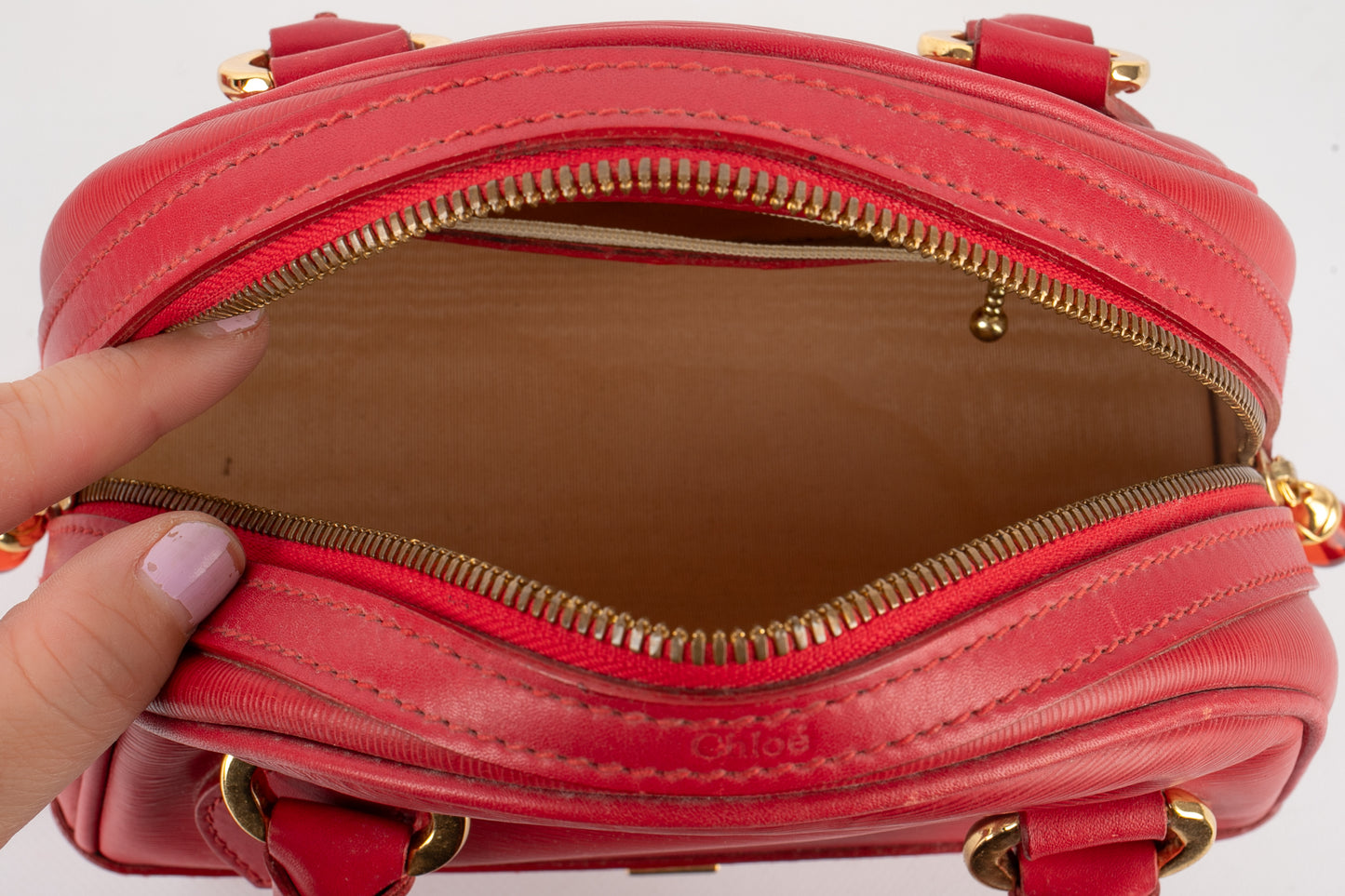 CHLOÉ -Sac mallette en veau pressé rouge, double poignée, fermeture éclair, curseur à gouttes en pâte de verre ambrée, bas du sac à caisson.