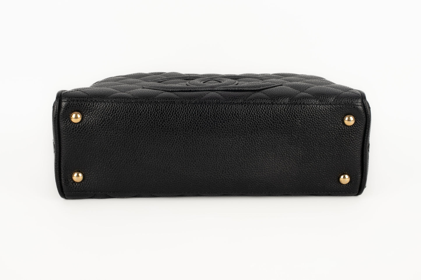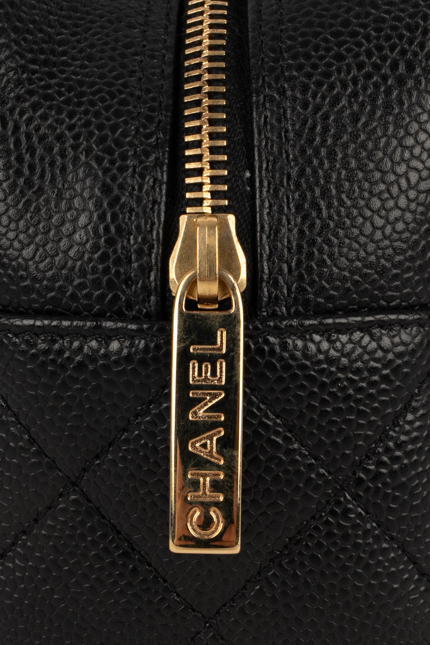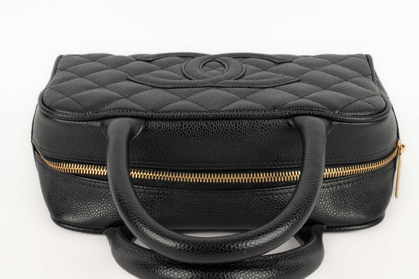 CHANEL -(Made in France) Sac bowling en veau caviar matelassé noir. Attributs en métal doré. Collection 2005/2006.