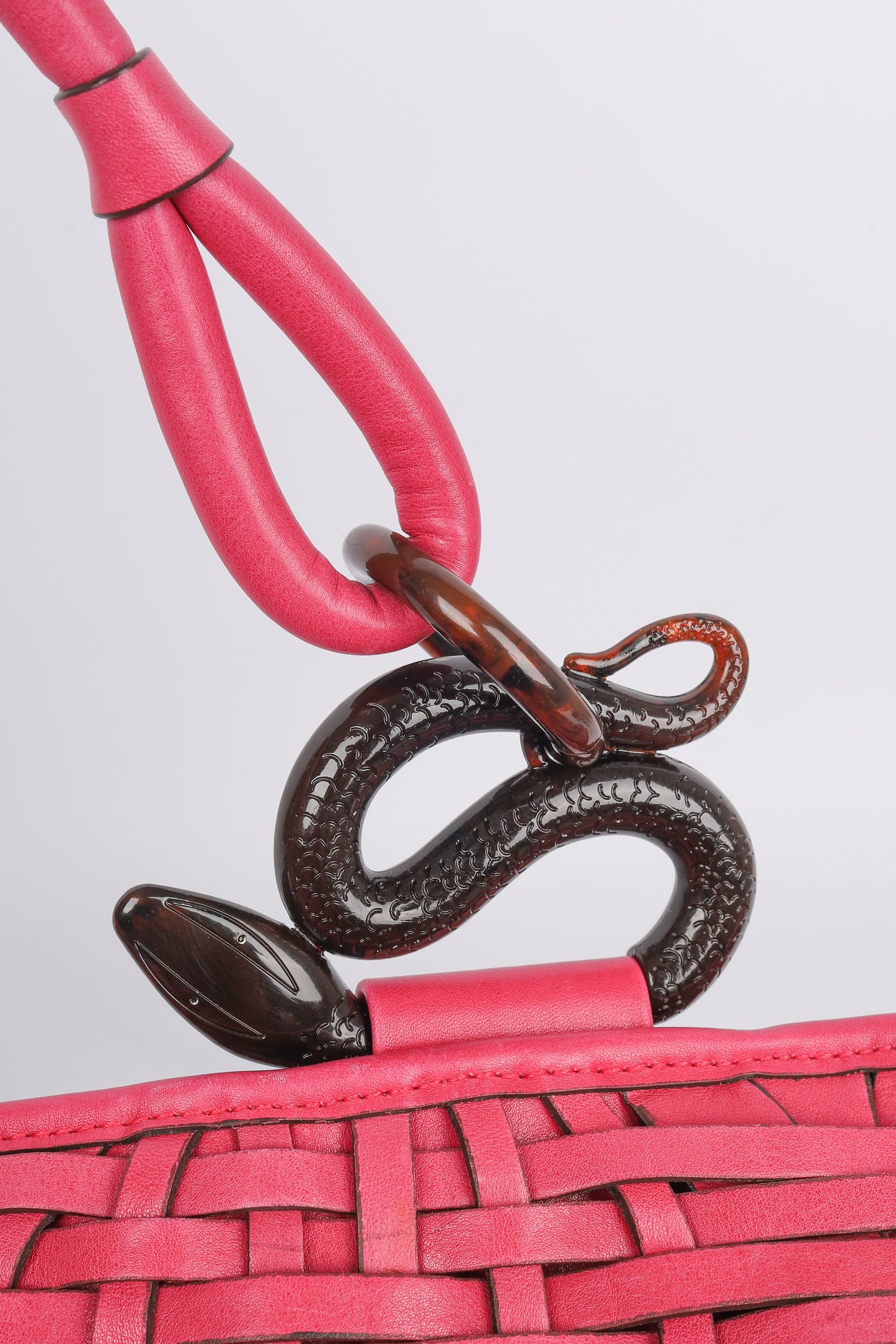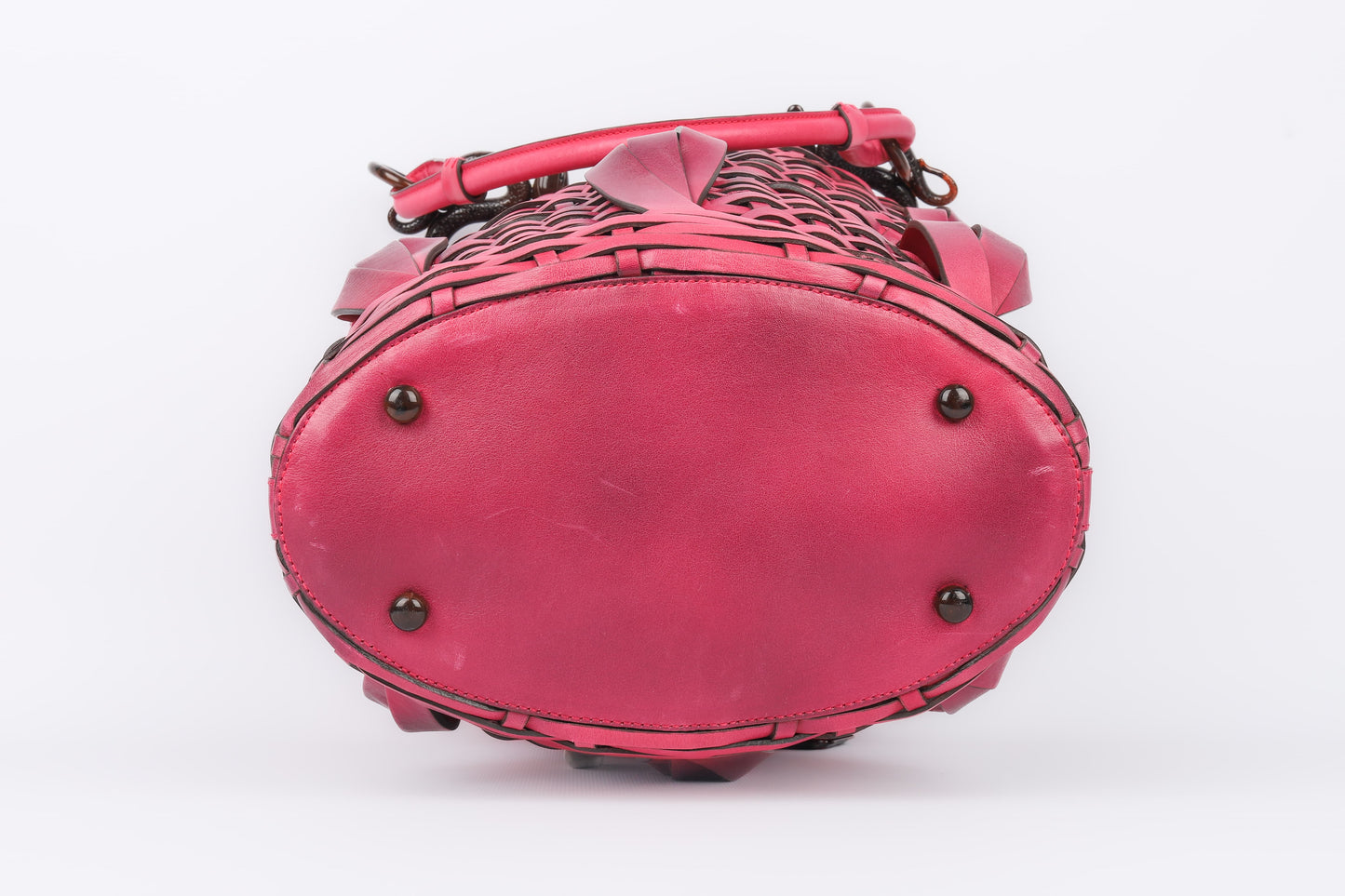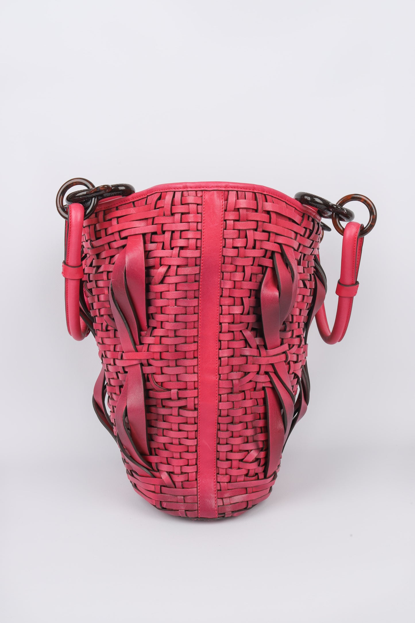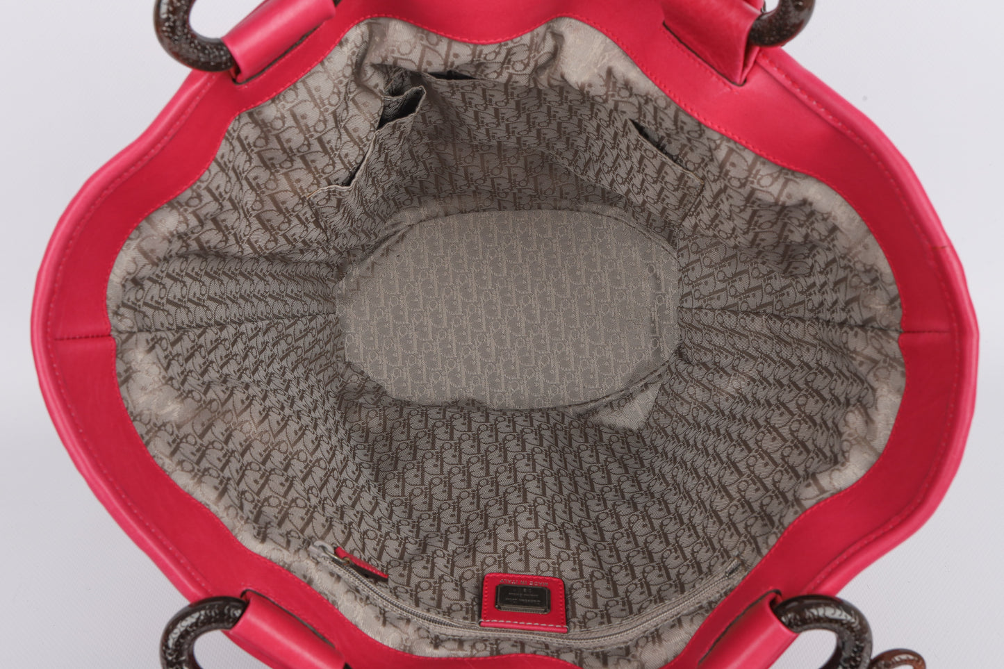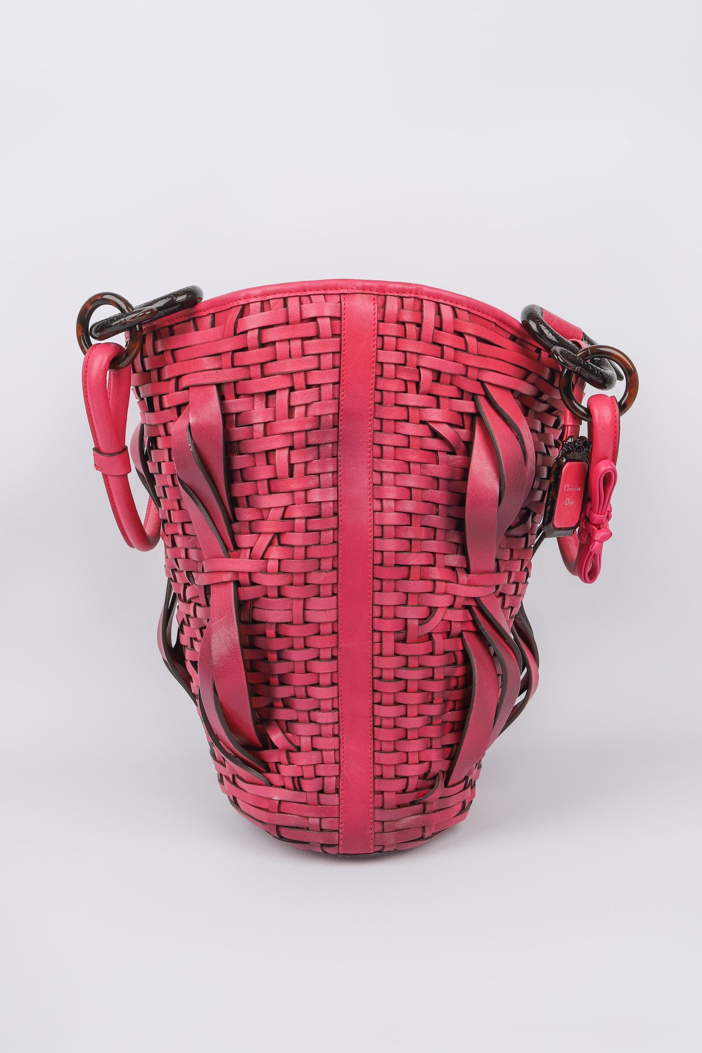 DIOR -(Made in Italy) Sac seau en cuir rose et bakélite. Numéro de série présent. Collection Automne-Hiver 2007.