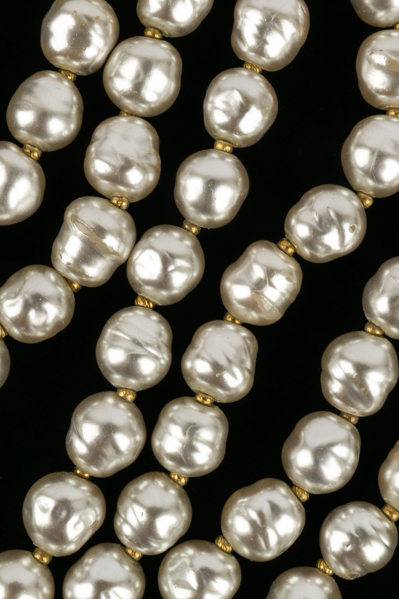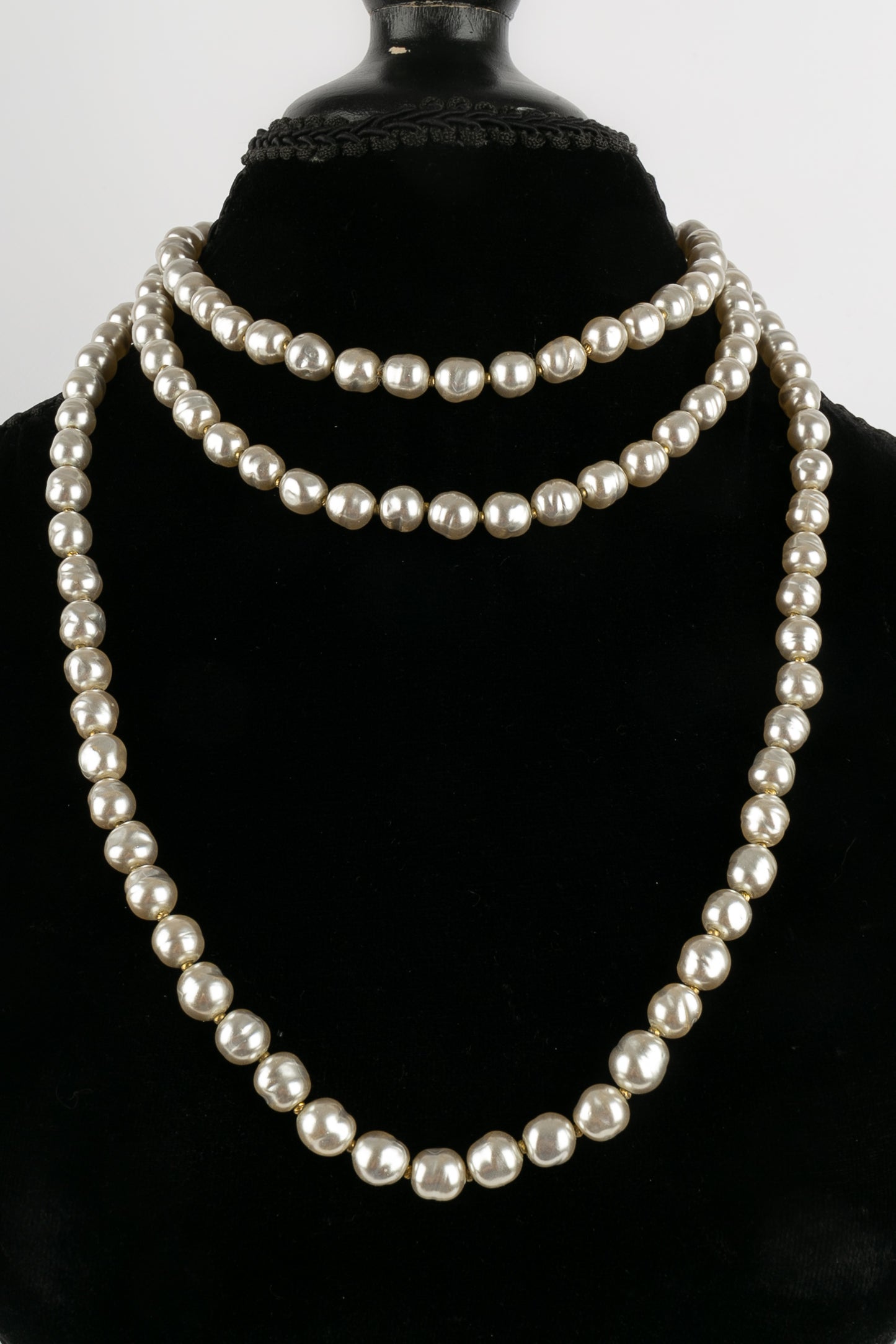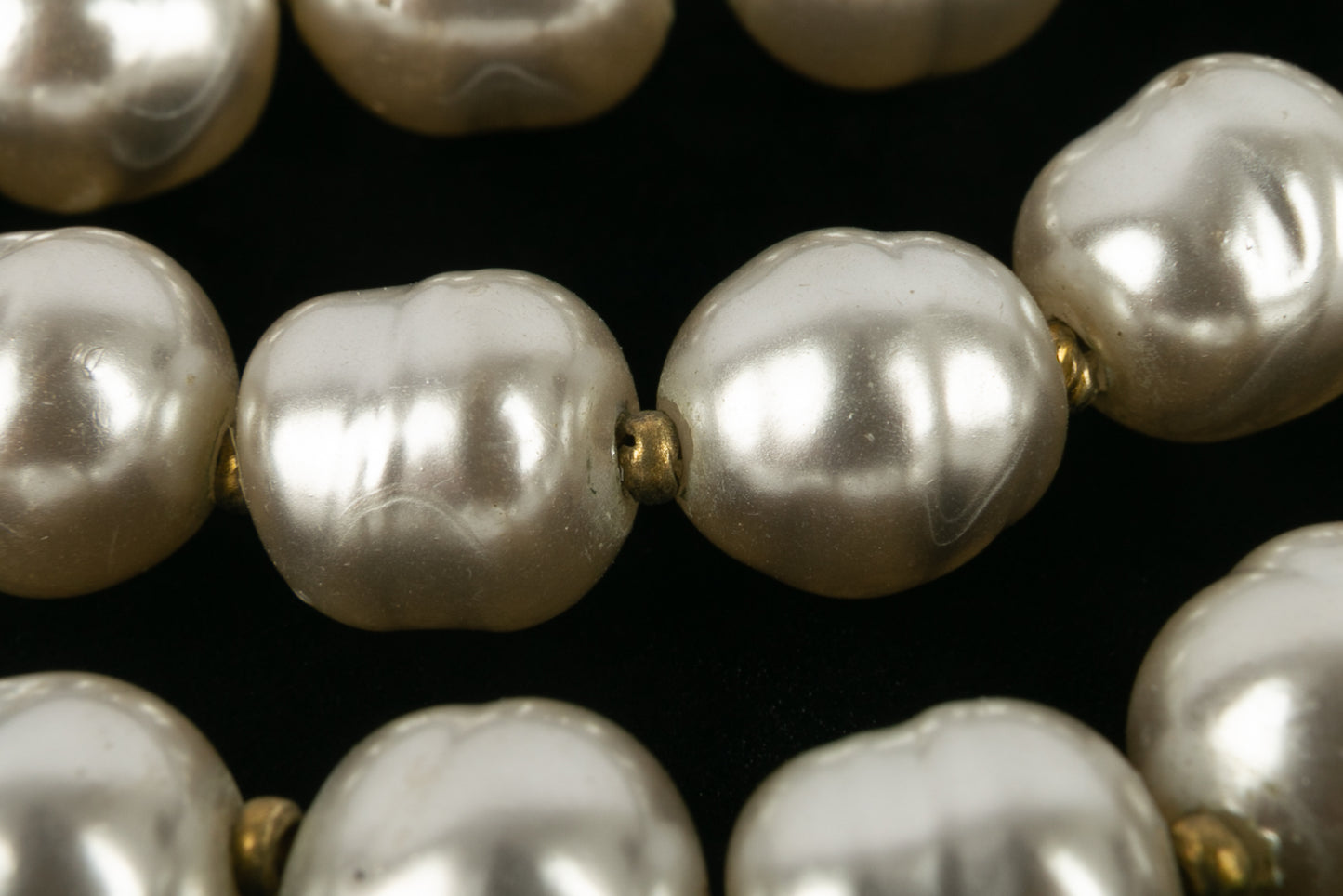 CHANEL -(Made in France) Collier de perles nacrées dans les tons de gris clair. Collection 1981.