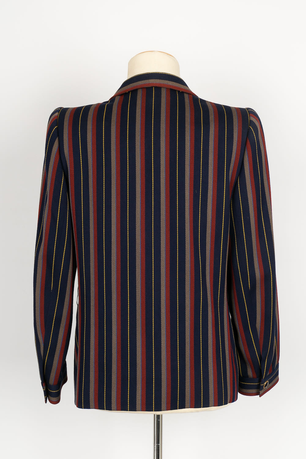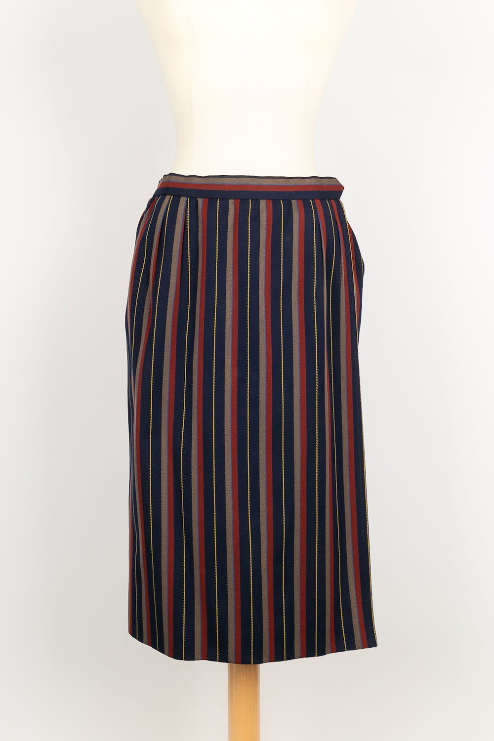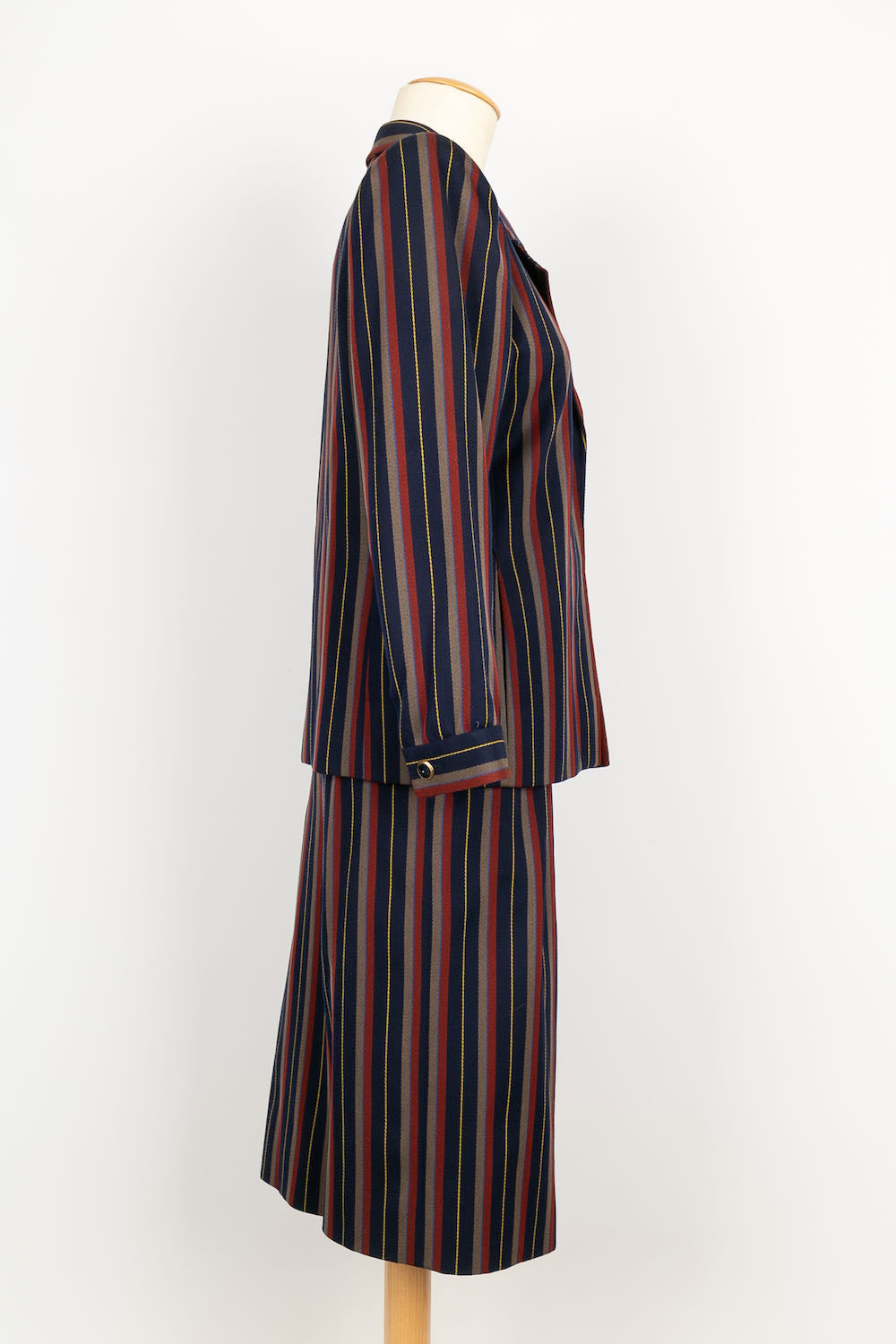 YVES SAINT LAURENT -(Made in France) Tailleur Haute Couture composé d'une jupe et d'une veste en laine à rayures. Pas de taille indiquée, il correspond à un 36FR.