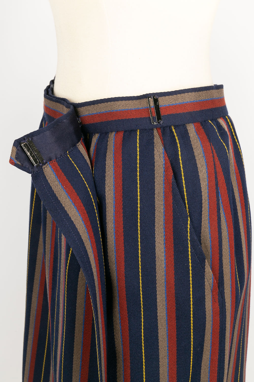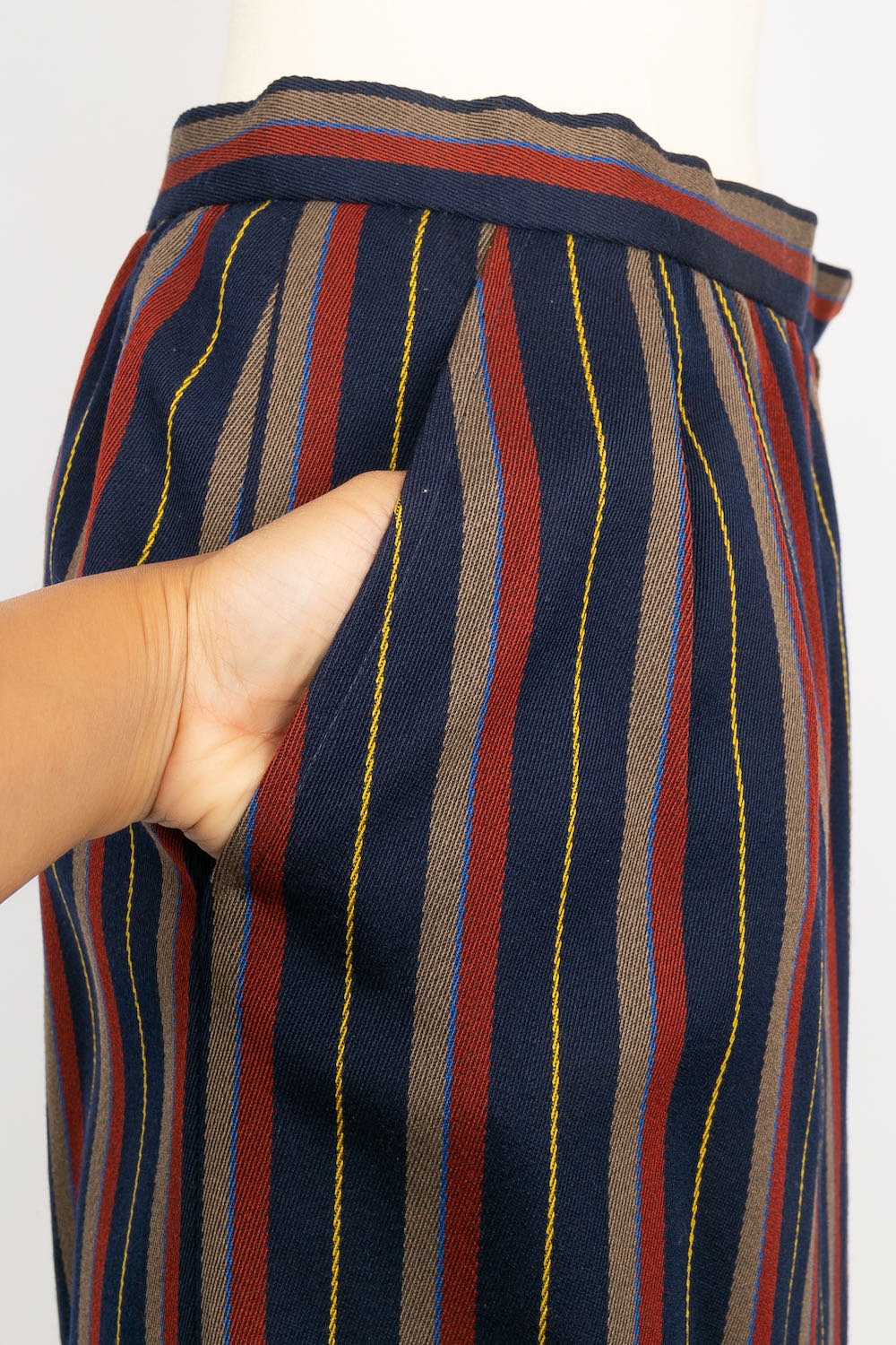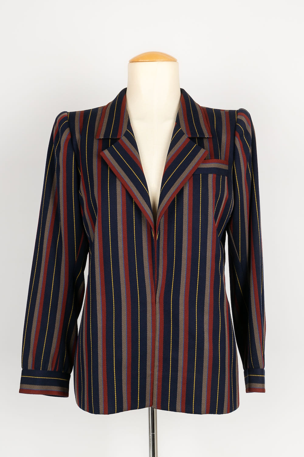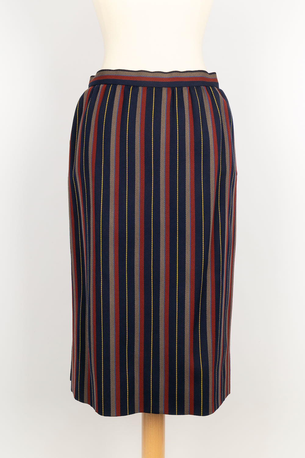 YVES SAINT LAURENT -(Made in France) Tailleur Haute Couture composé d'une jupe et d'une veste en laine à rayures. Pas de taille indiquée, il correspond à un 36FR.
