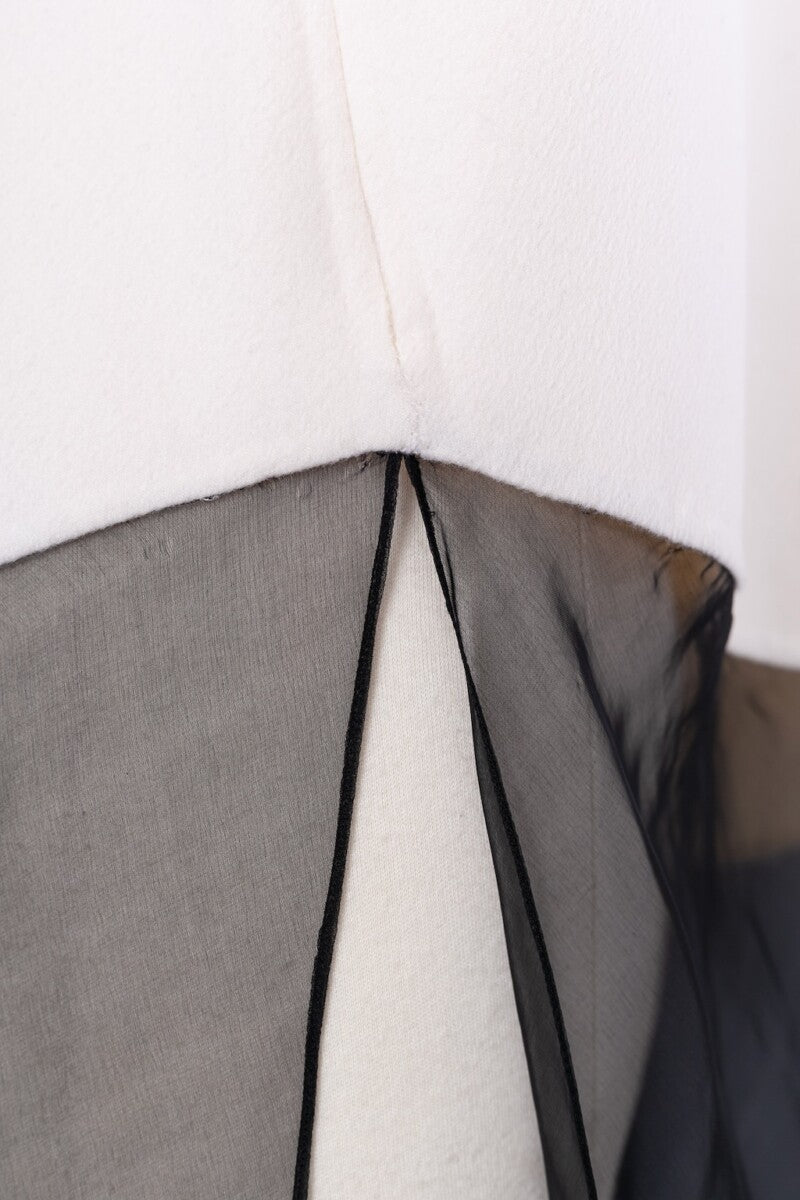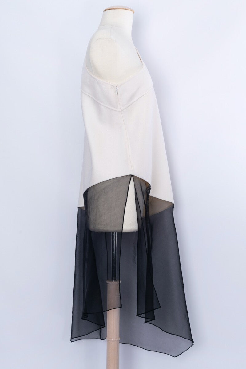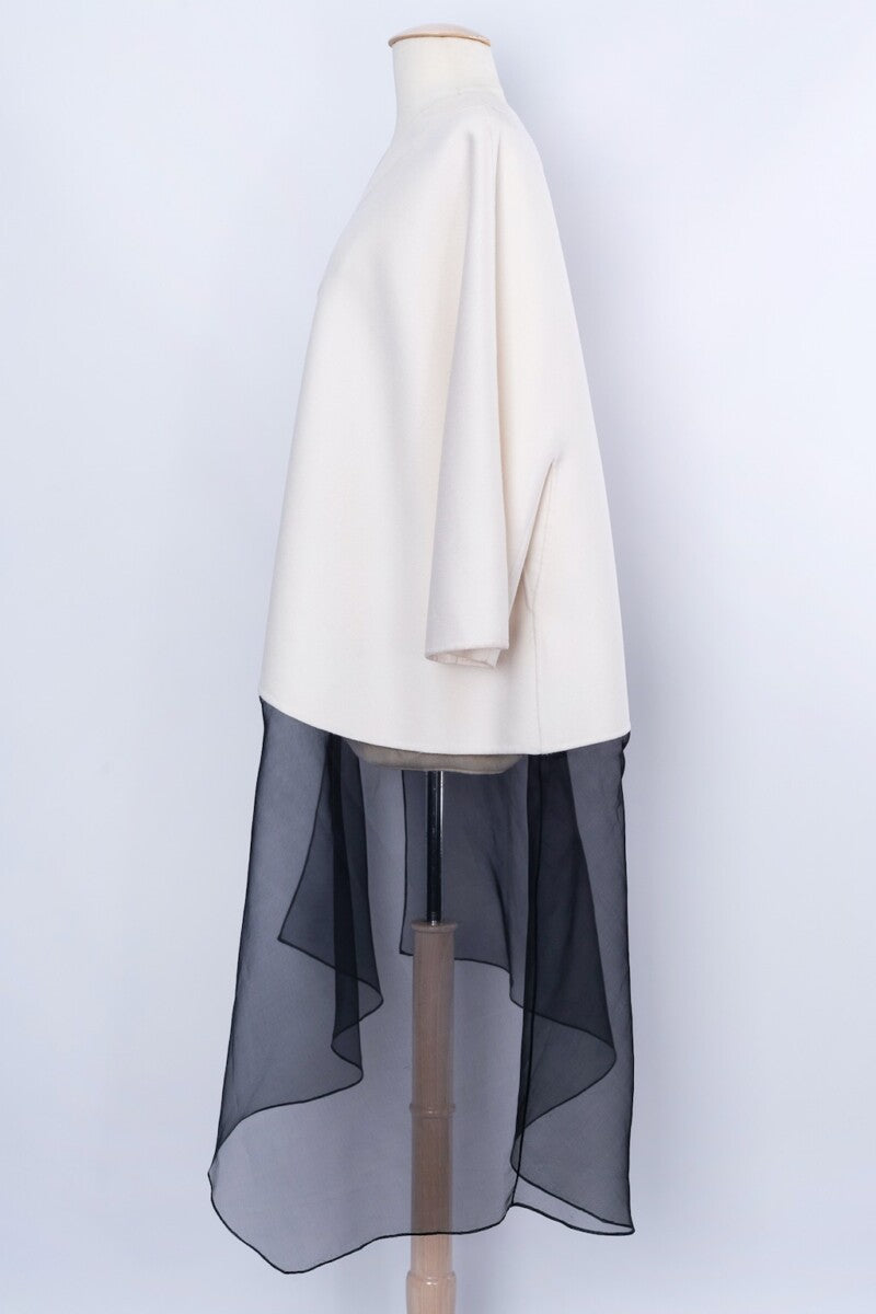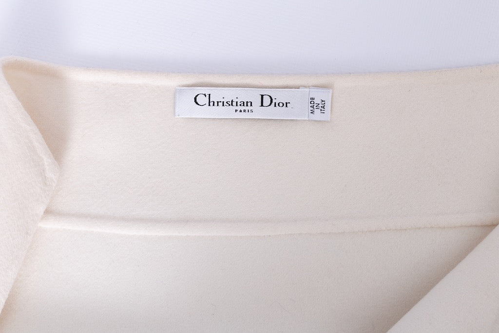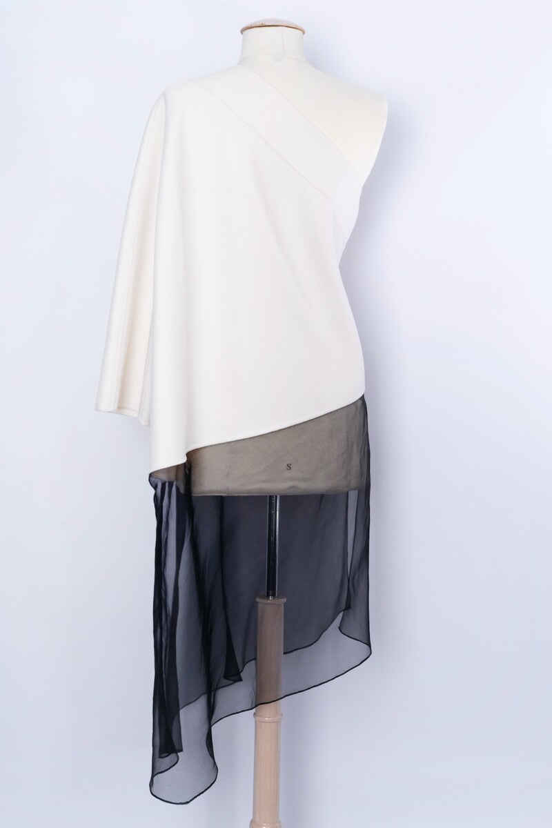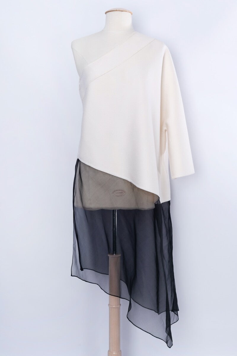 DIOR -(Made in Italy) Haut asymétrique en cachemire et organza. Pas d’étiquette de composition ni de taille indiquée, il convient à une taille 36FR/38FR. Pièce réalisée sous la direction artistique de John Galliano.