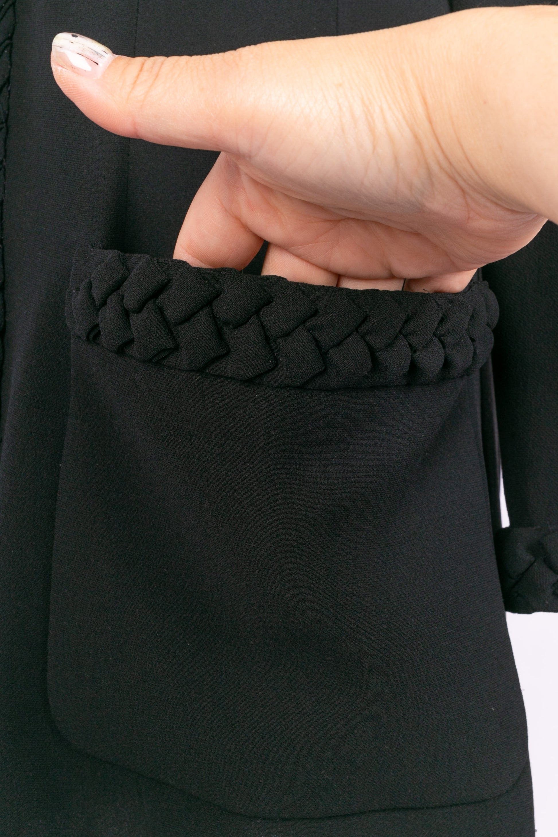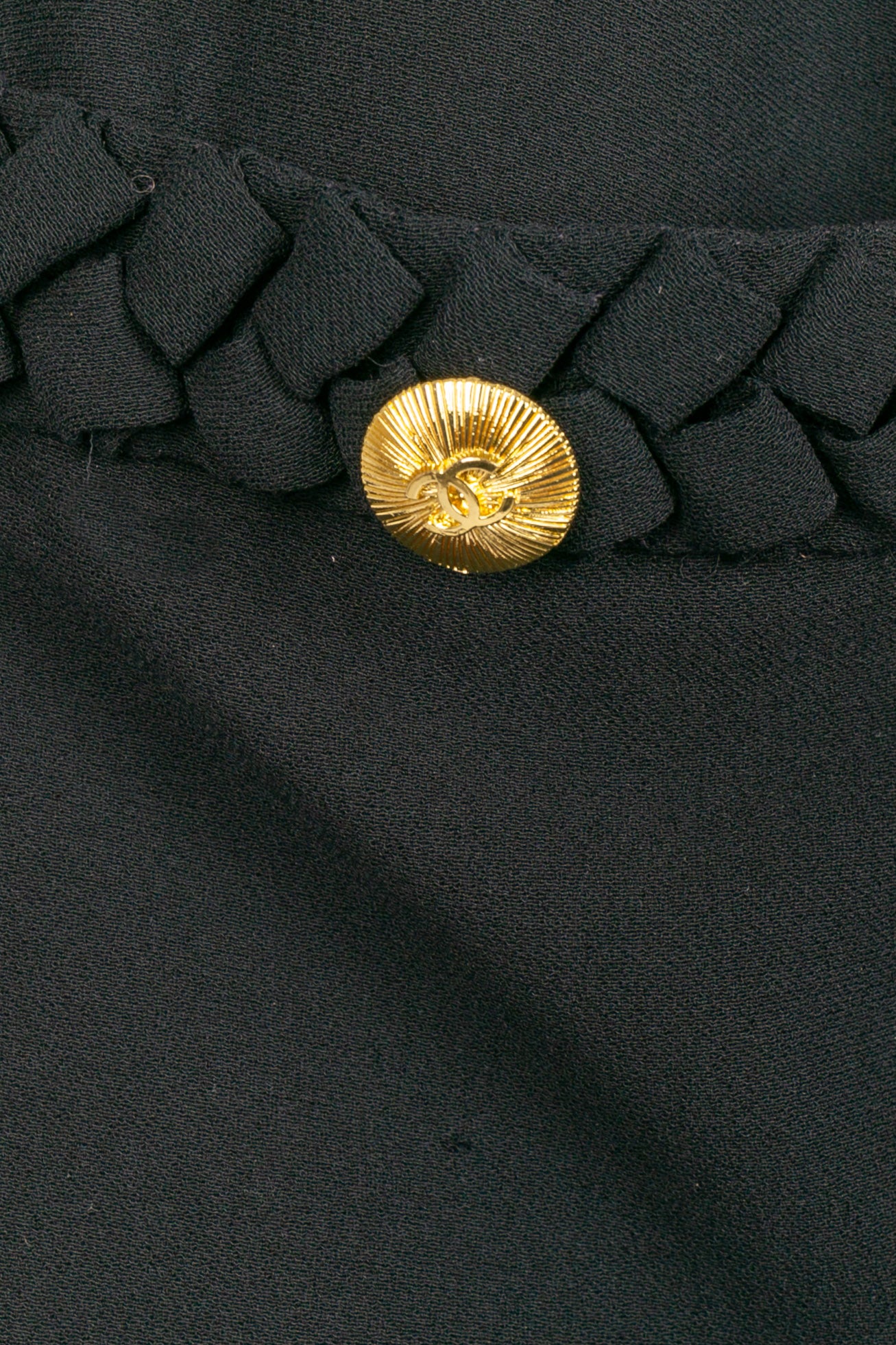 CHANEL - (Made in France) Veste mi-longue noire et boutons dorés. Pas de taille indiquée, elle convient à un 36FR.